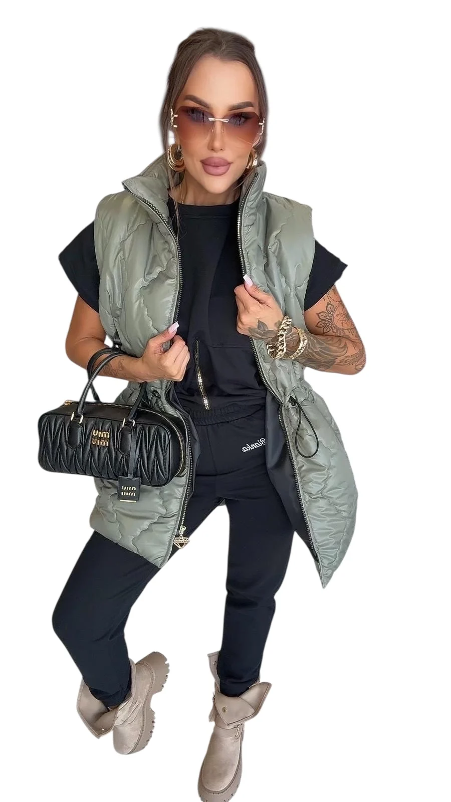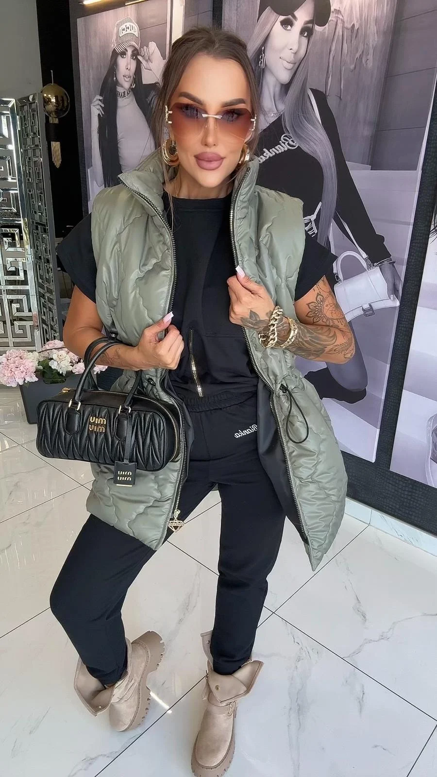 Rozmiar uniwersalny najlepiej pasuje na S, M, L, dzięki czemu komplet dopasowuje się do sylwetki, nie krępując ruchów. Klasyczny czarny kolor dodaje stylizacji świeżości i sprawia, że dres można łatwo łączyć z innymi elementami garderoby. Bezrękawnik który możesz dokupić osobno będzie fantastycznym dopełnieniem jesienno wiosennej stylizacji na co dzień.