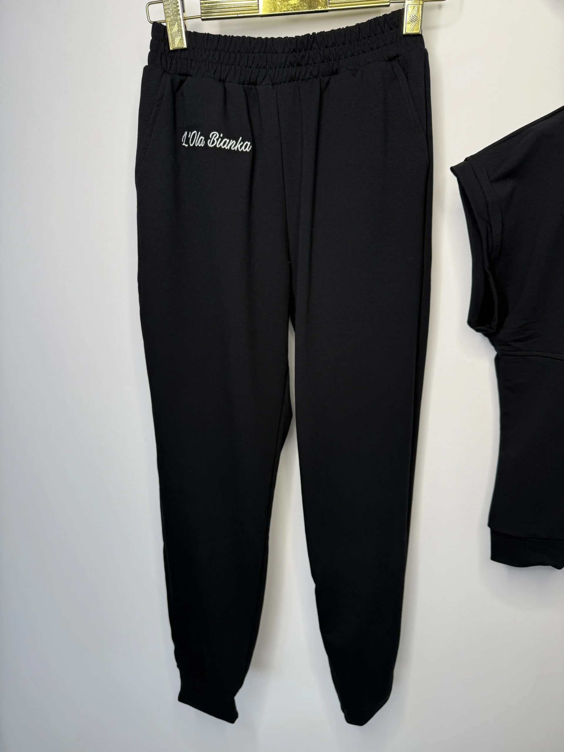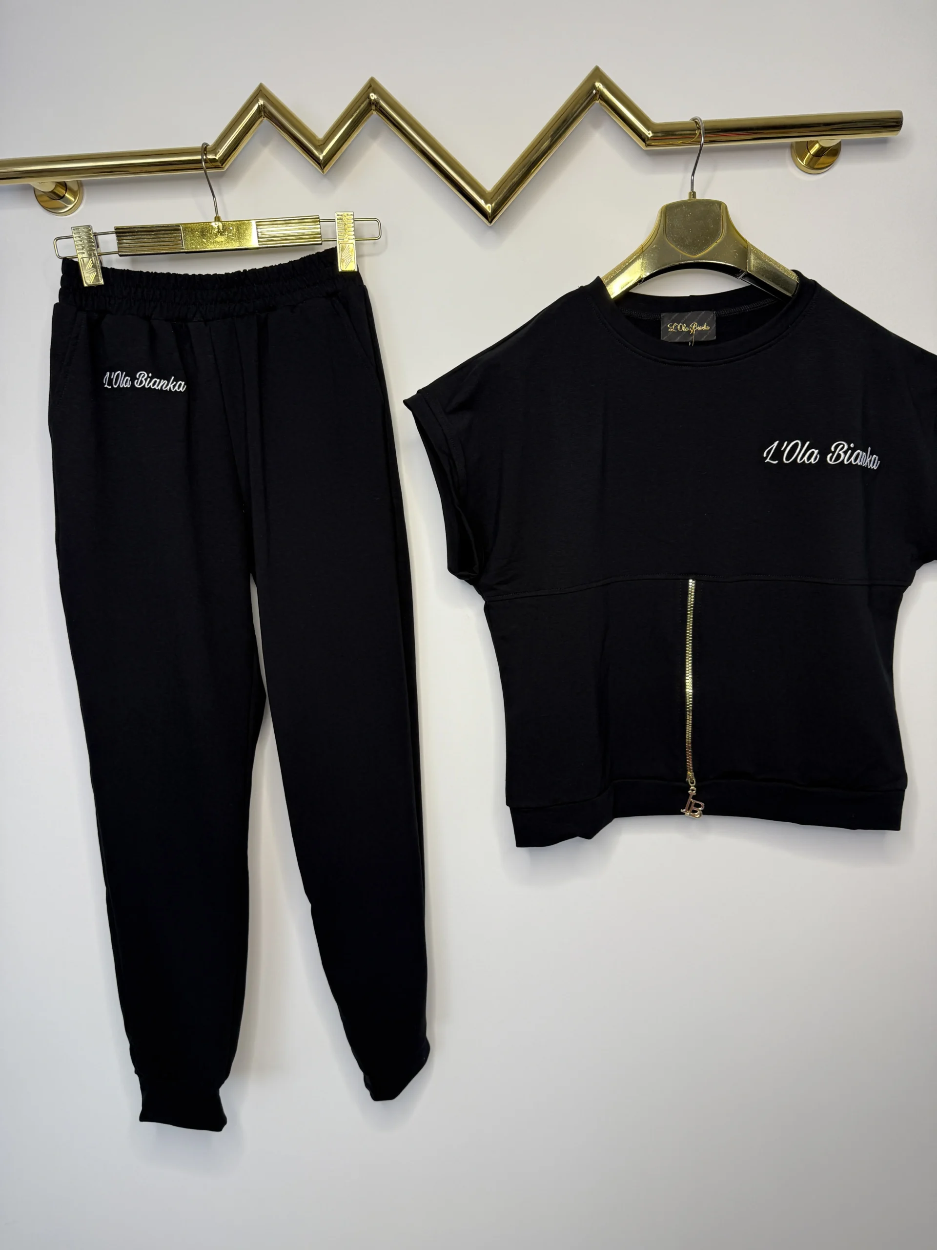 Dres damski LOLA BIANKA w kolorze czarnym to idealny wybór dla kobiet ceniących komfort i modny wygląd. Wykonany z lekkiej, przyjemnej w dotyku bawełny sprawdzi się o każdej porze roku. To komplet, który łączy sportowy charakter z subtelną elegancją.