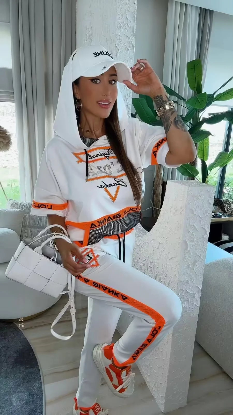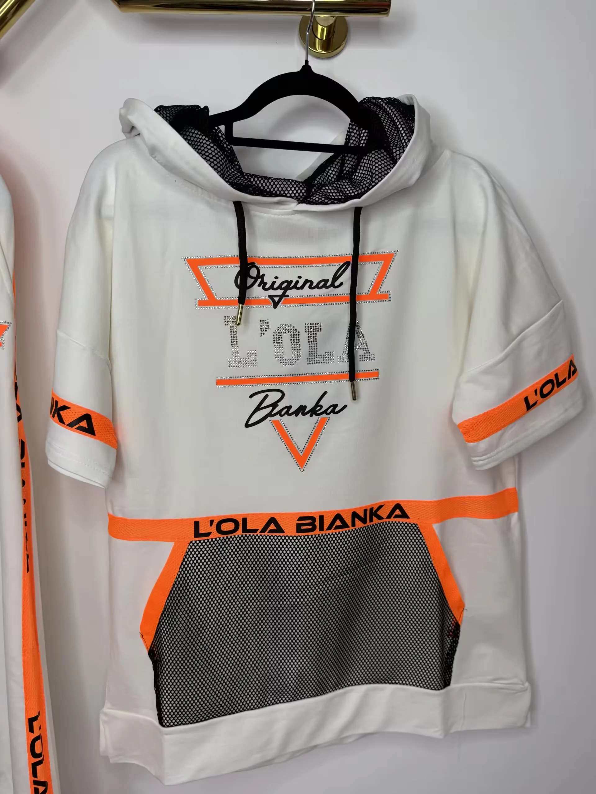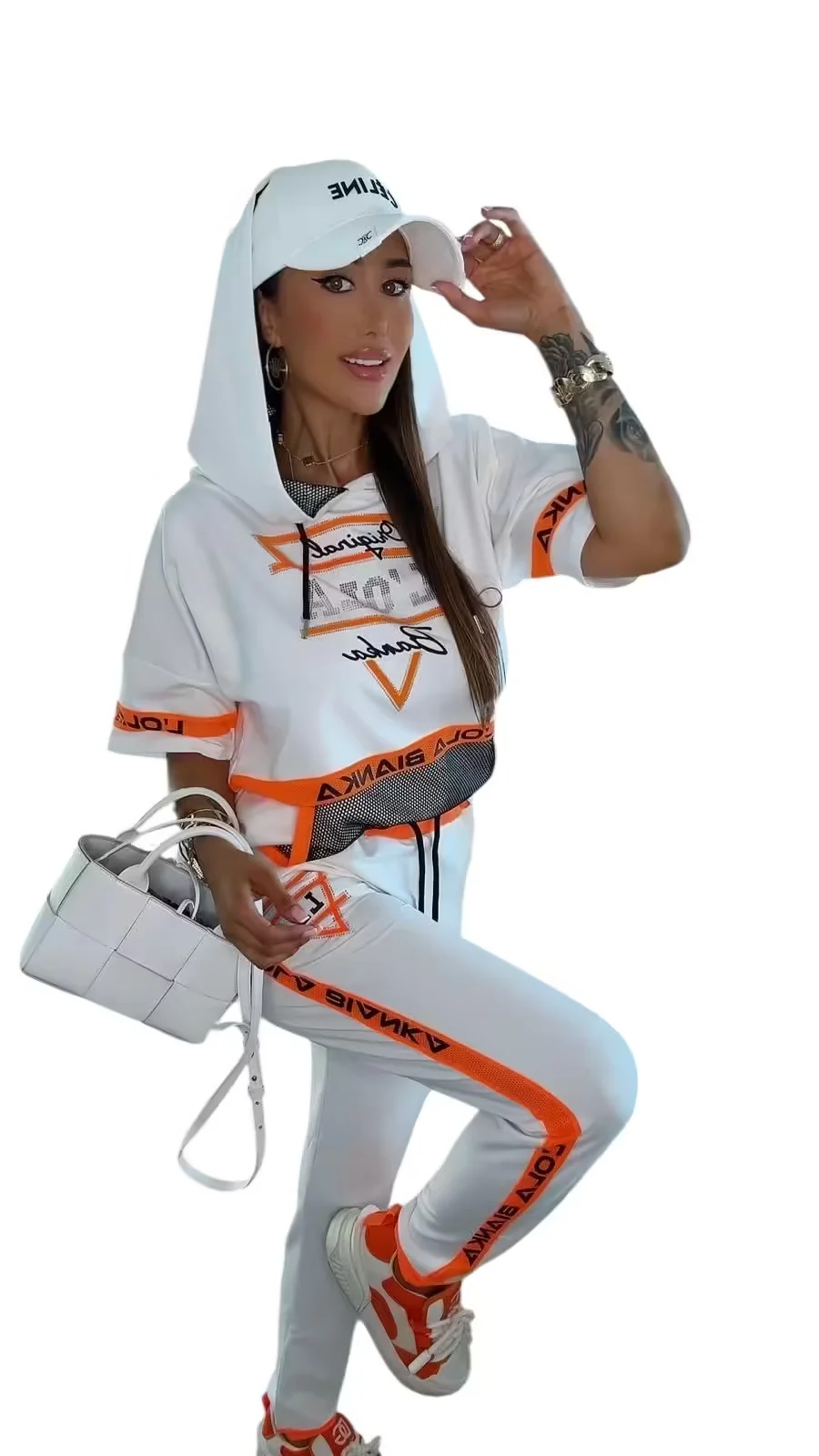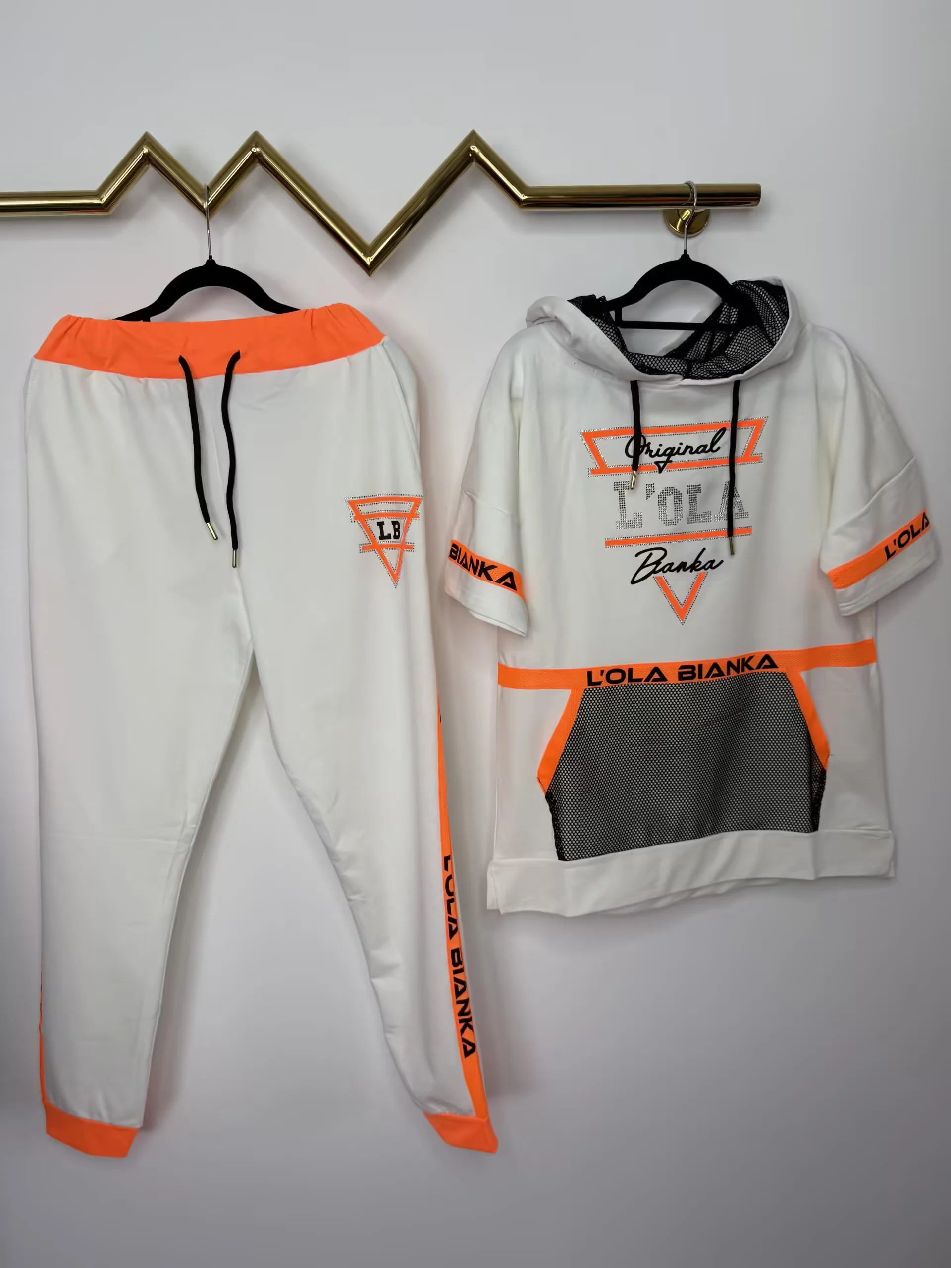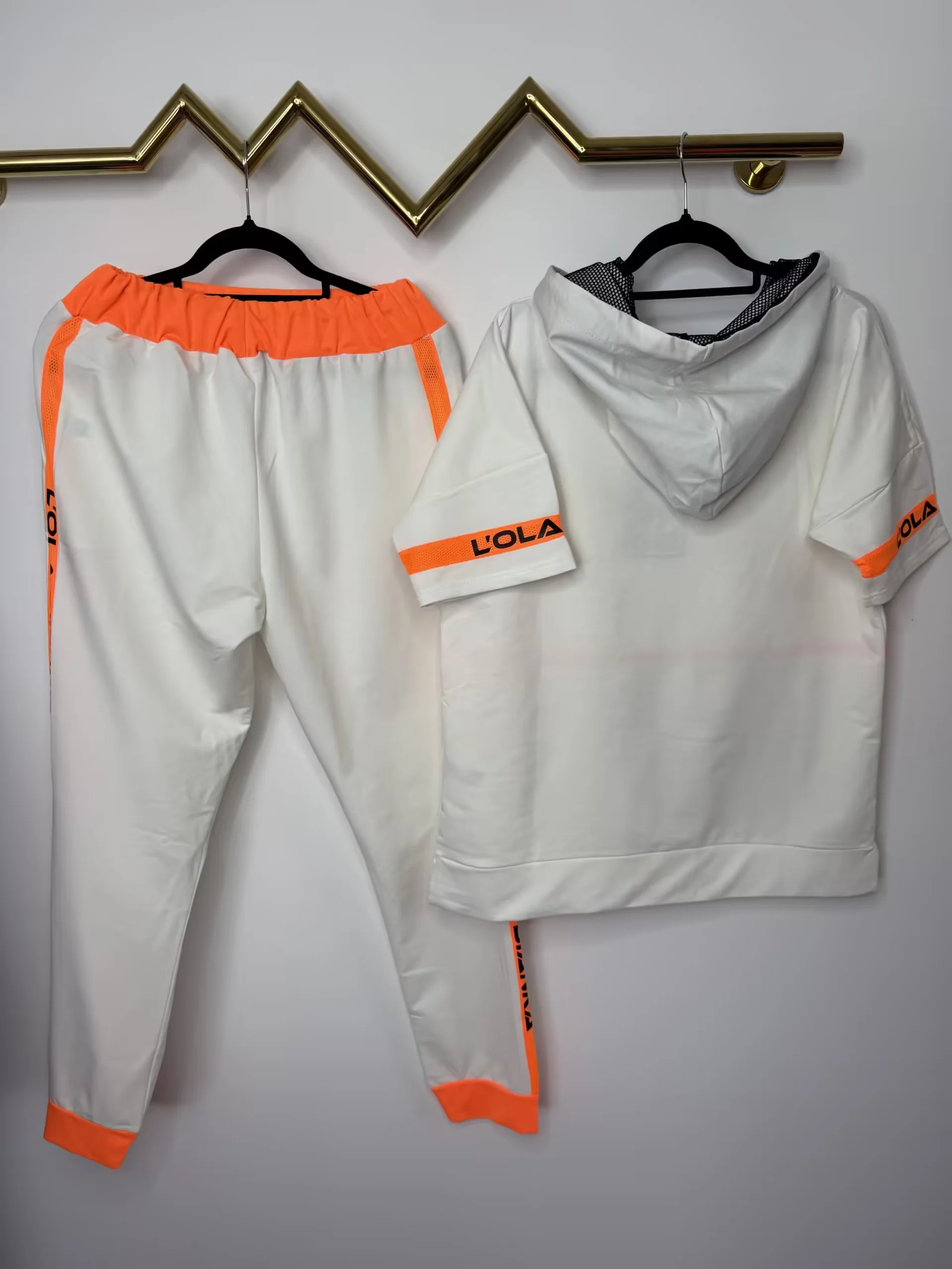 Dres Lola Bianka komplet biały bluza spodnie w rozmiarze uni pasuje na SML, przepiękne połączenie bieli z neonem, wygoda i jakość, produkt premium