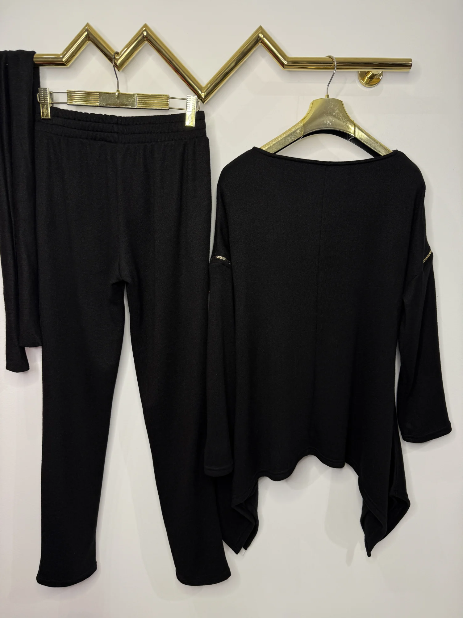 Komplet wykonany został z wysokogatunkowej dzianiny premium, która jest delikatna i pięknie układa się na sylwetce.
