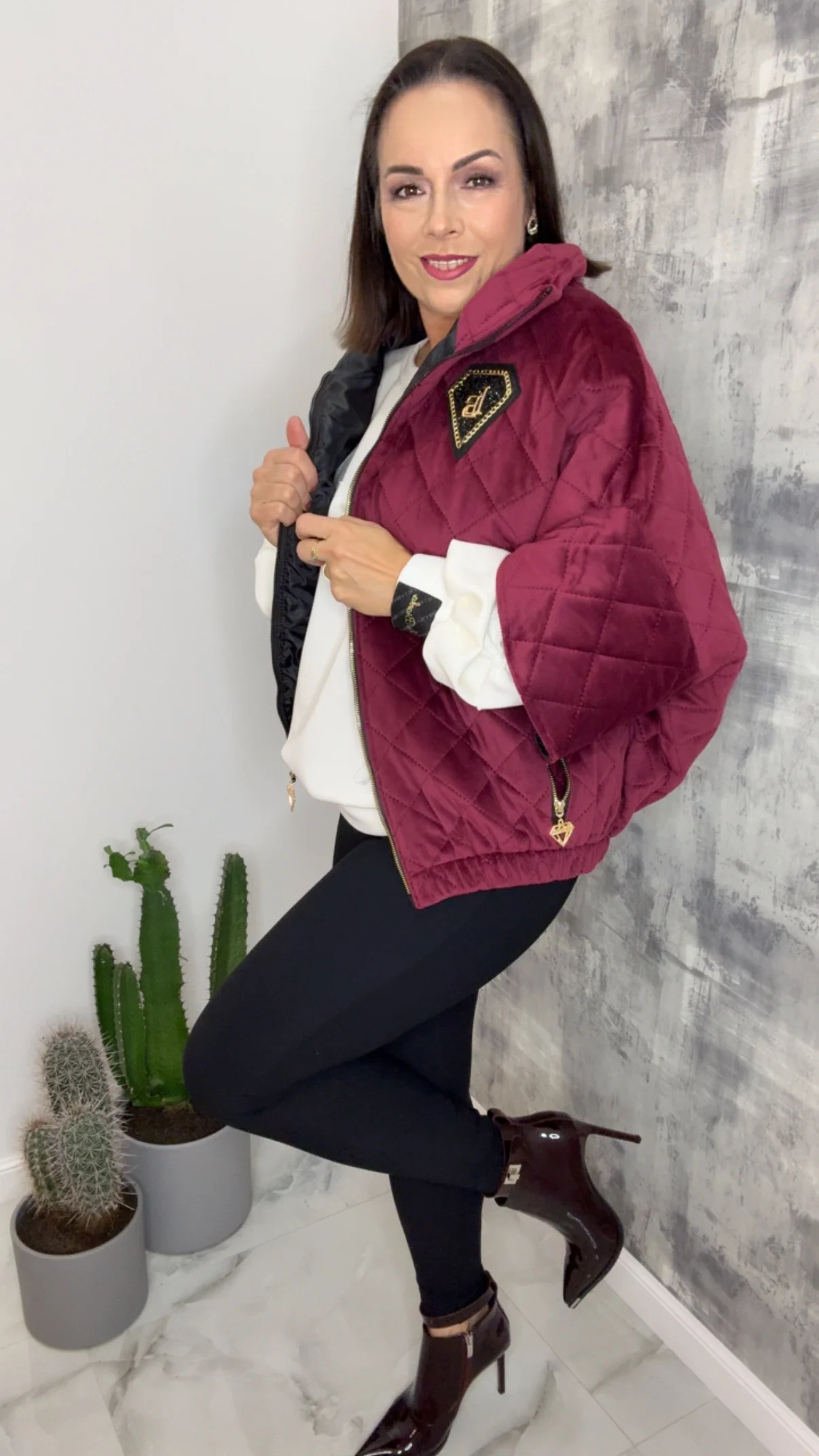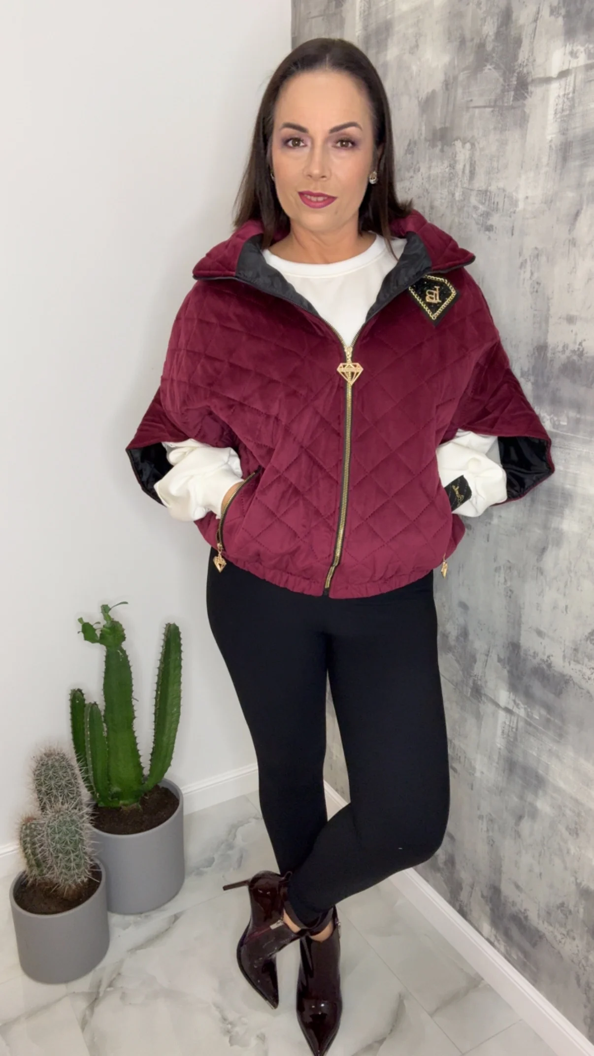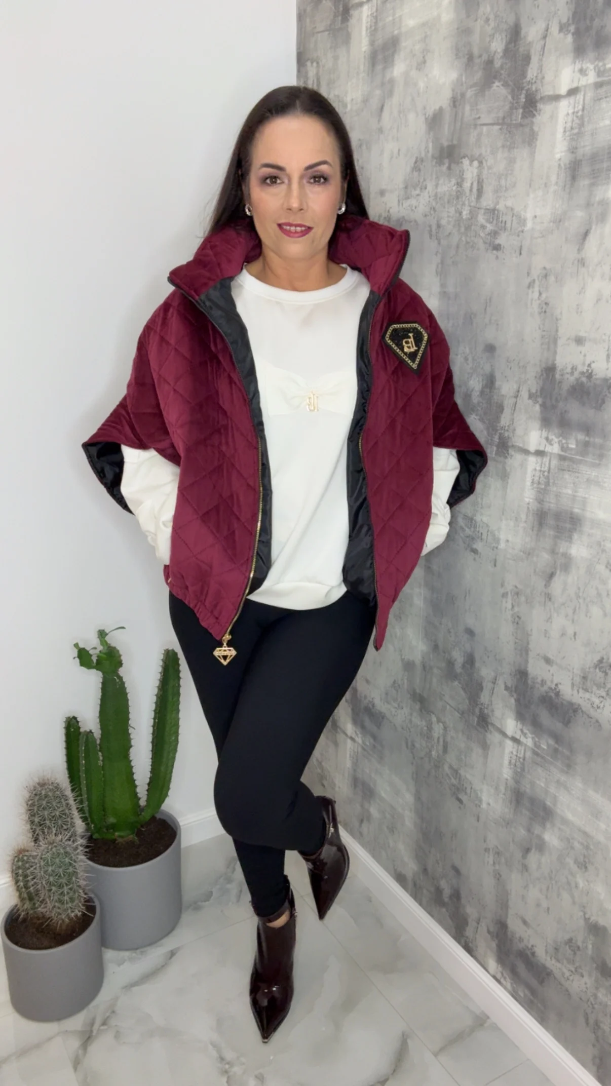 Bezrękawnik Lola Bianka bordowy to idealne połączenie welurowej elegancji i sportowego komfortu. Jedna kamizelka – wiele stylizacji!