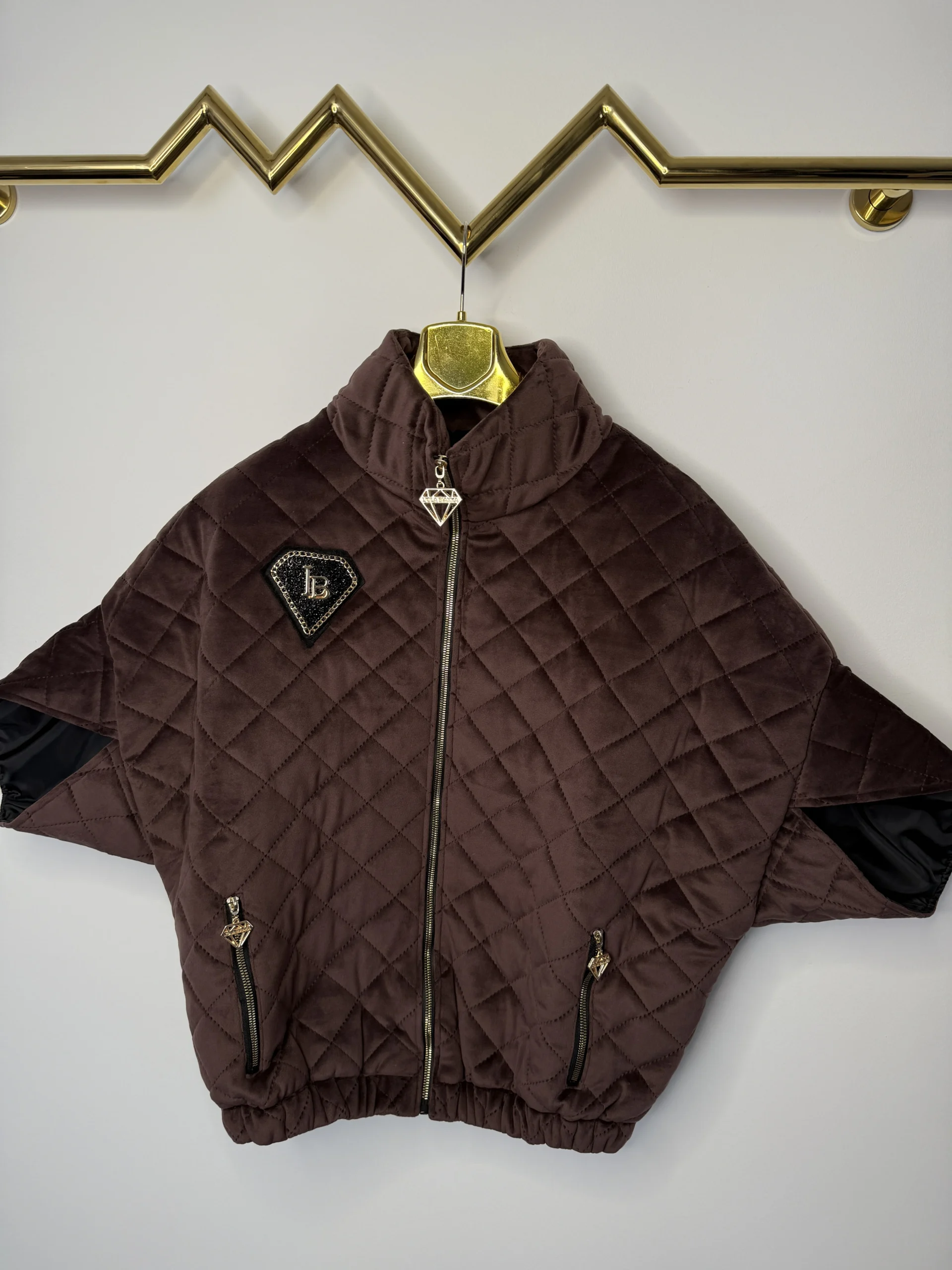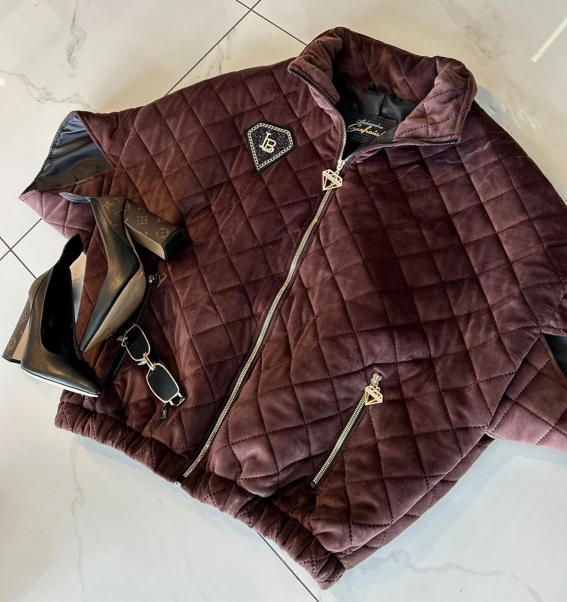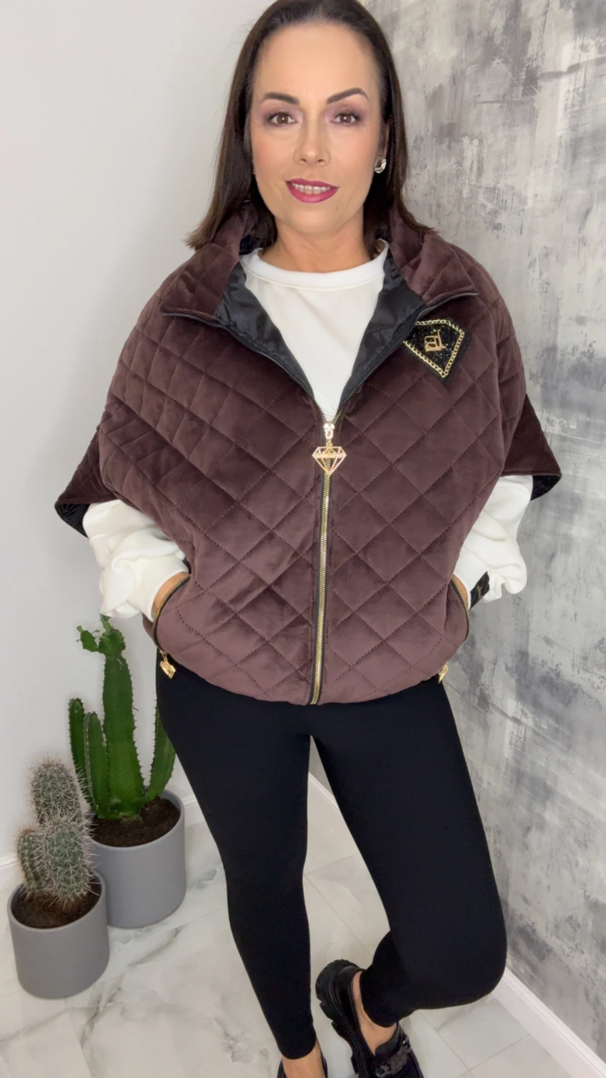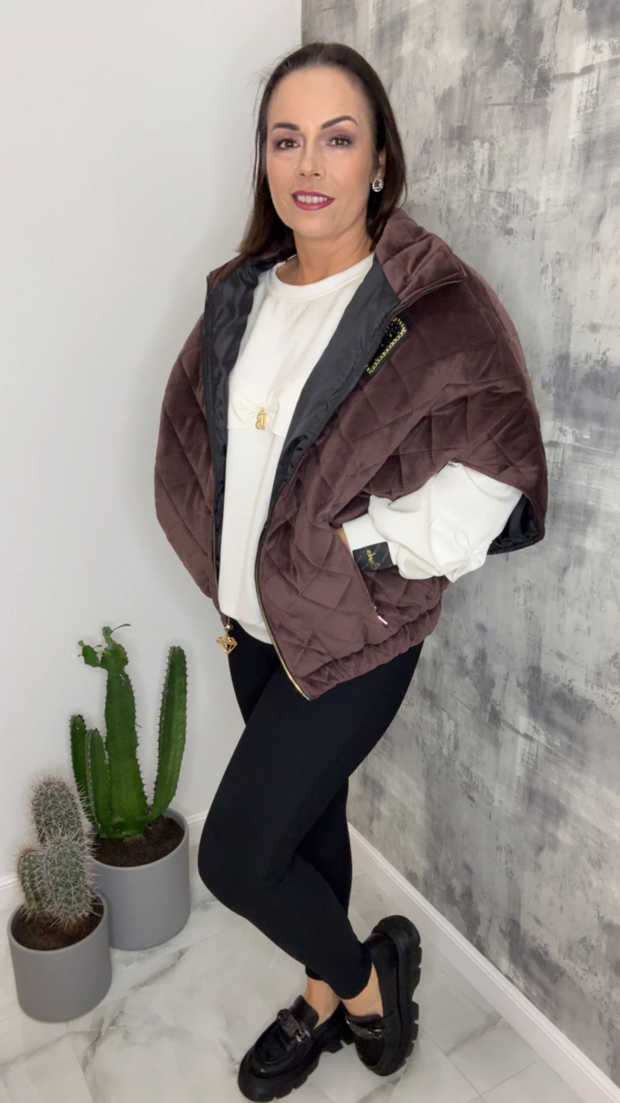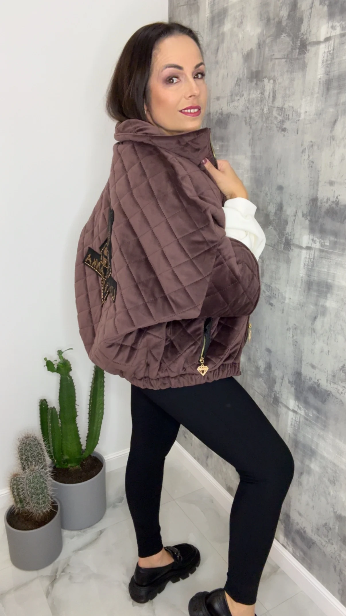 Kamizelka brązowa Lola Bianka bezrękawnik welurowy w rozmiarze uniwersalnym, mięciutki welurek, zapinany na zamek /SML/ kieszenie na przodzie również zapinane, na plecach naszywka