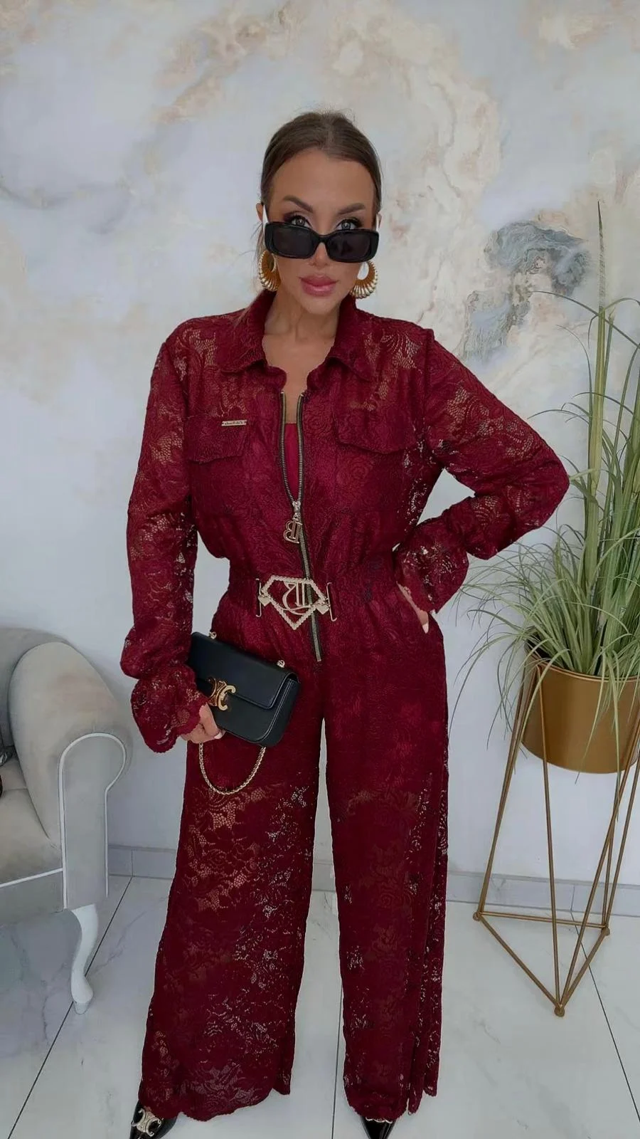 Kombinezon bordowy Lola Bianka koronkowy