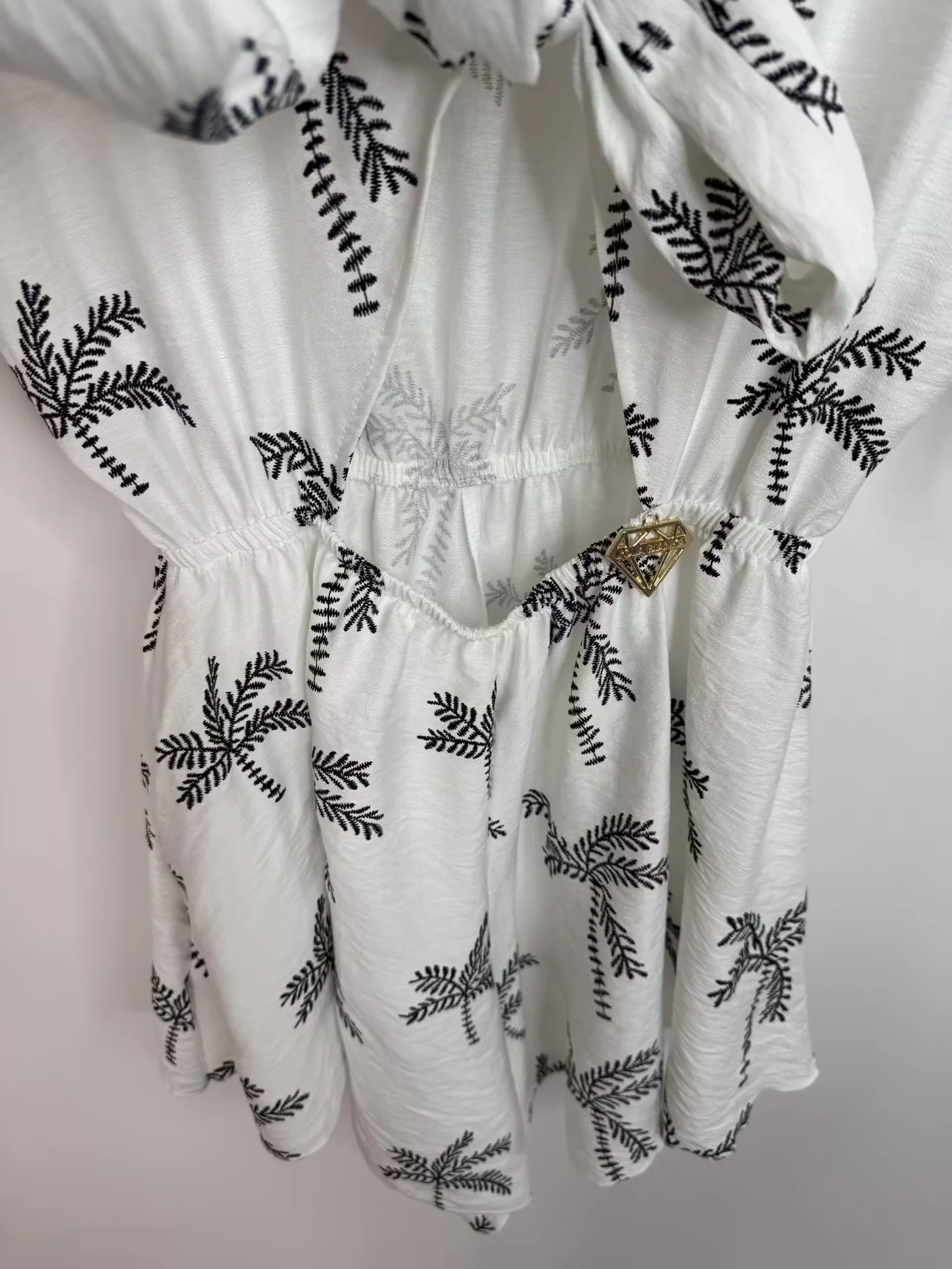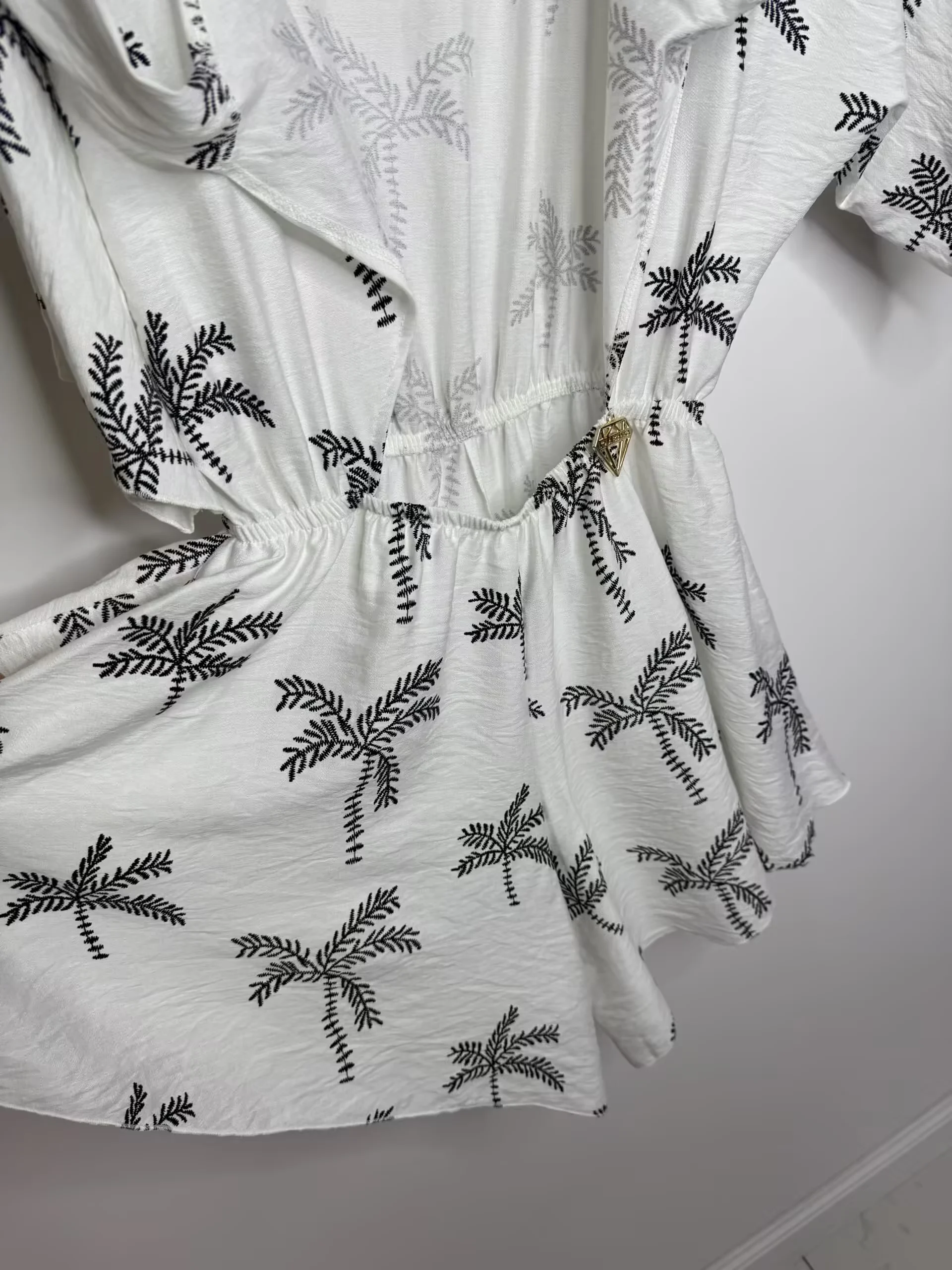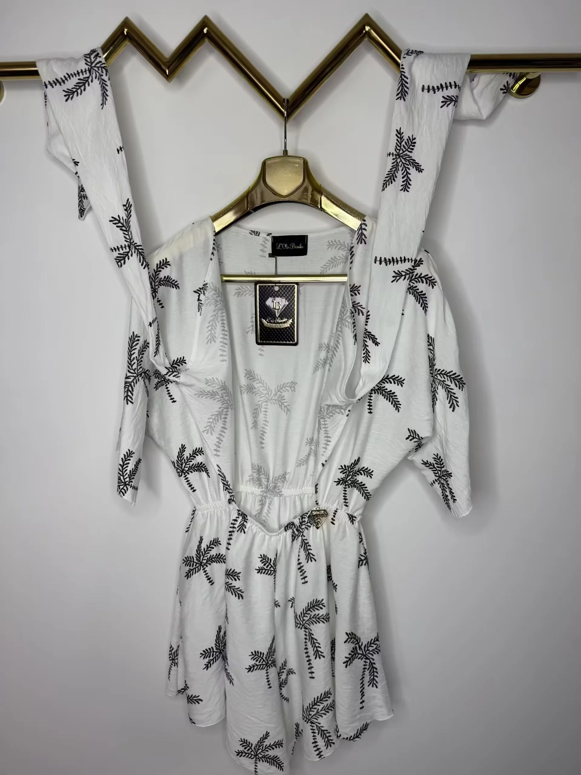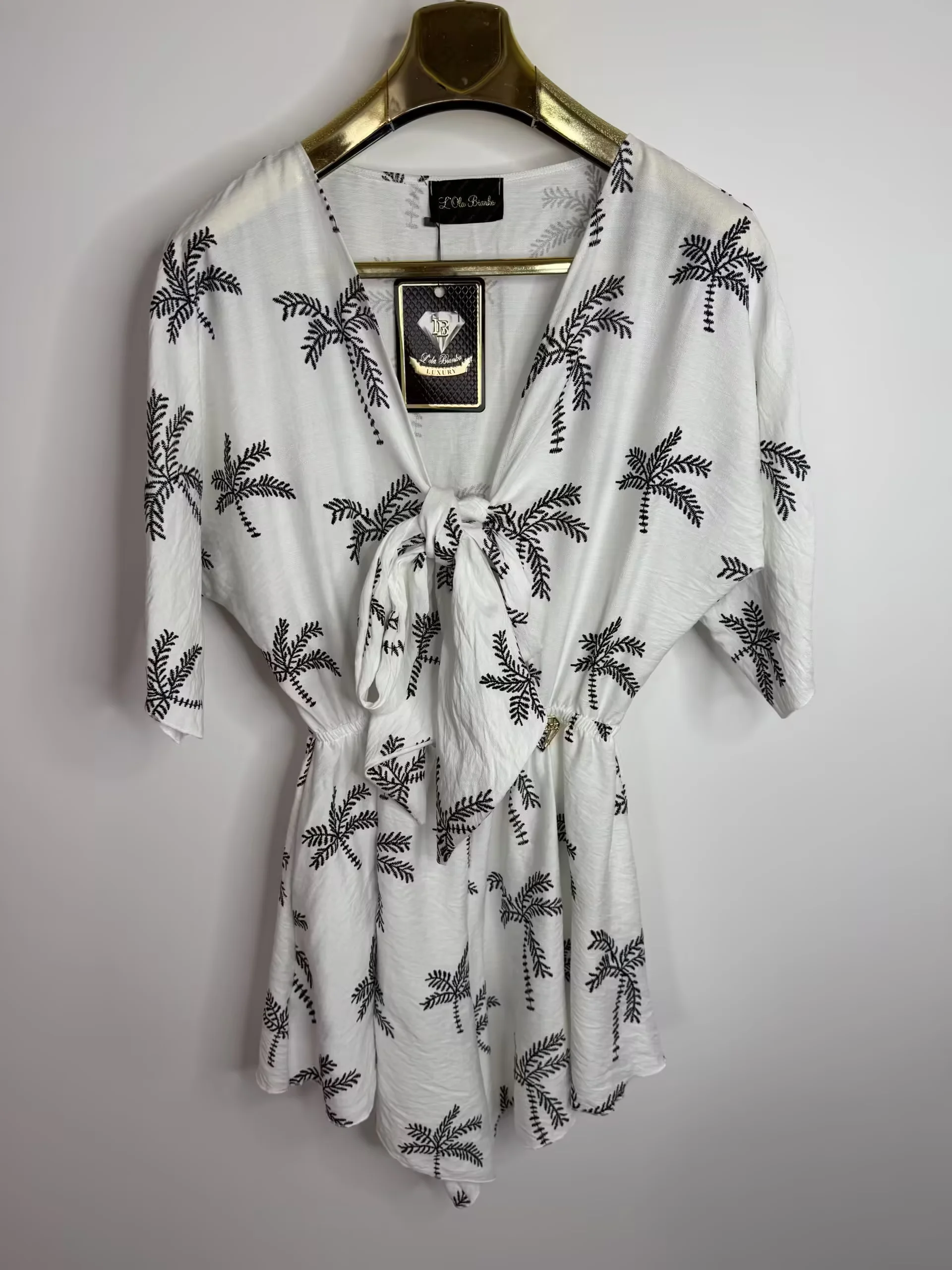 Kombinezon Lola Bianka letni biały, spodenki połączone z górą gumką, rękawek krótki, po bokach kieszenie, przód wiązany, rozmiar uni na metce pasuje na SML