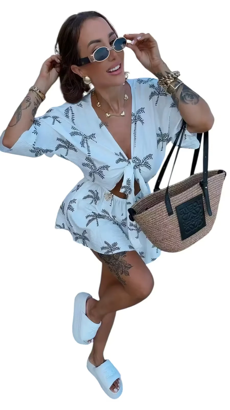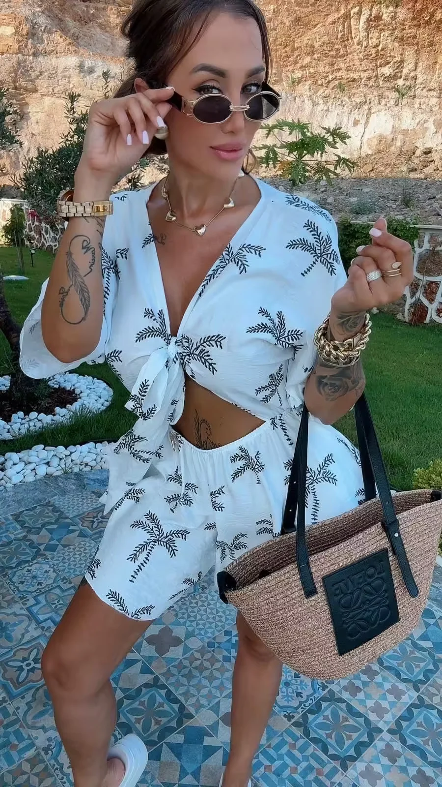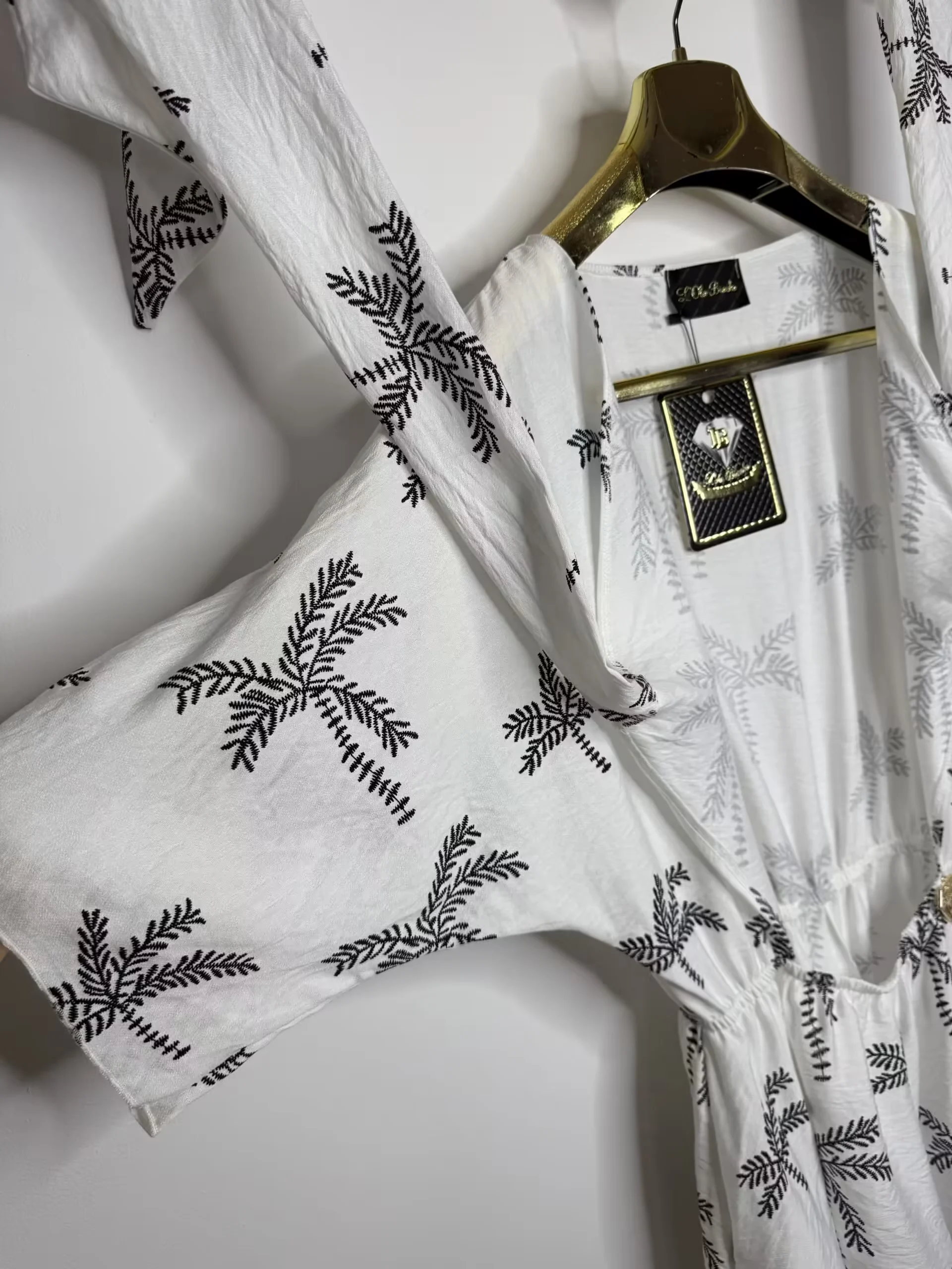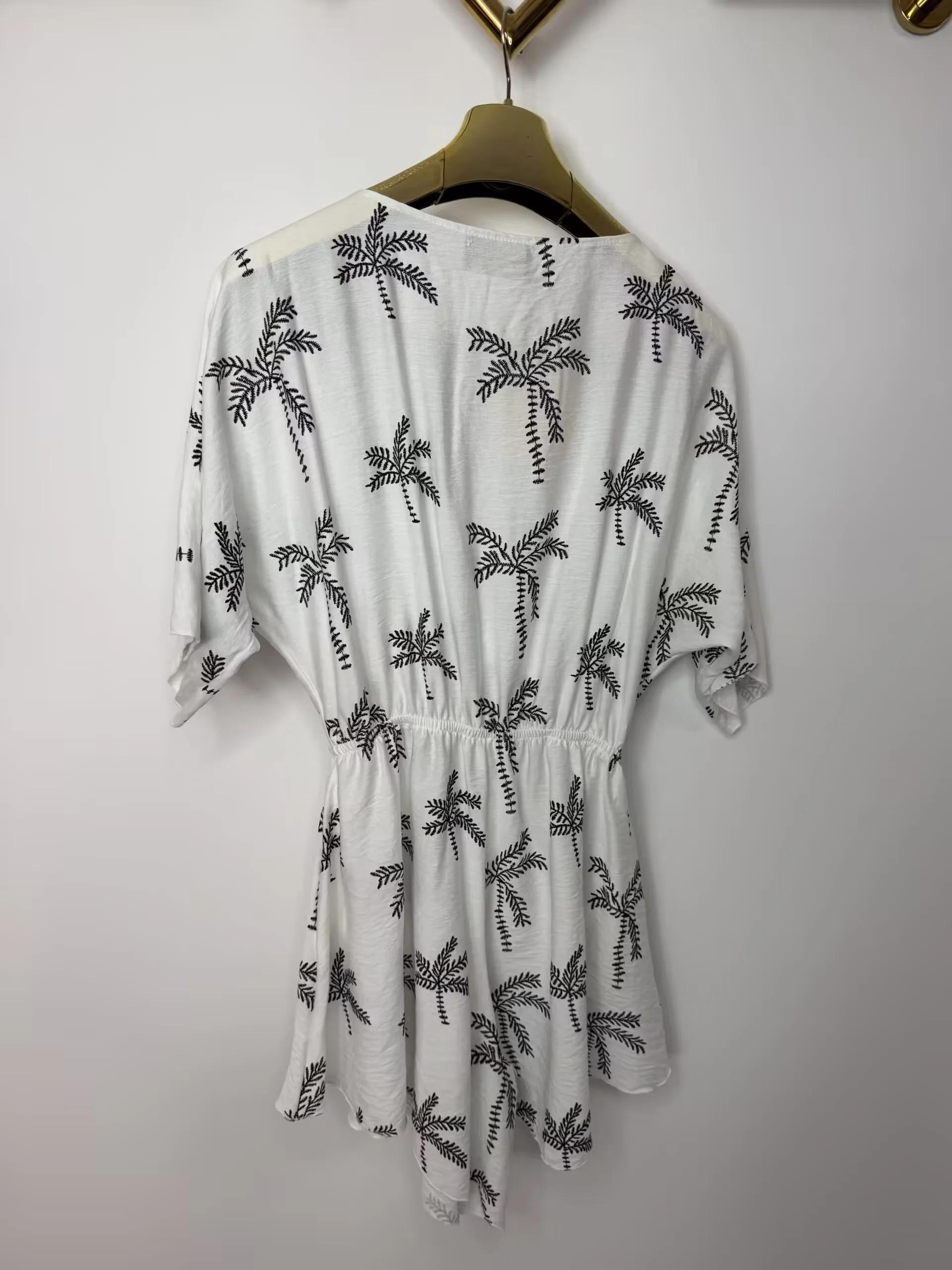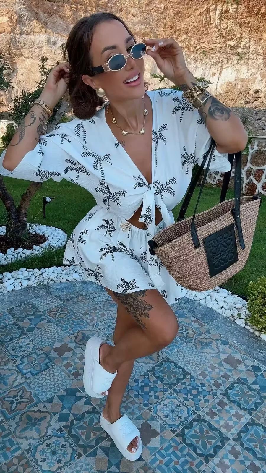 Kombinezon Lola Bianka letni biały, spodenki połączone z górą gumką, rękawek krótki, po bokach kieszenie, przód wiązany, rozmiar uni na metce pasuje na SML