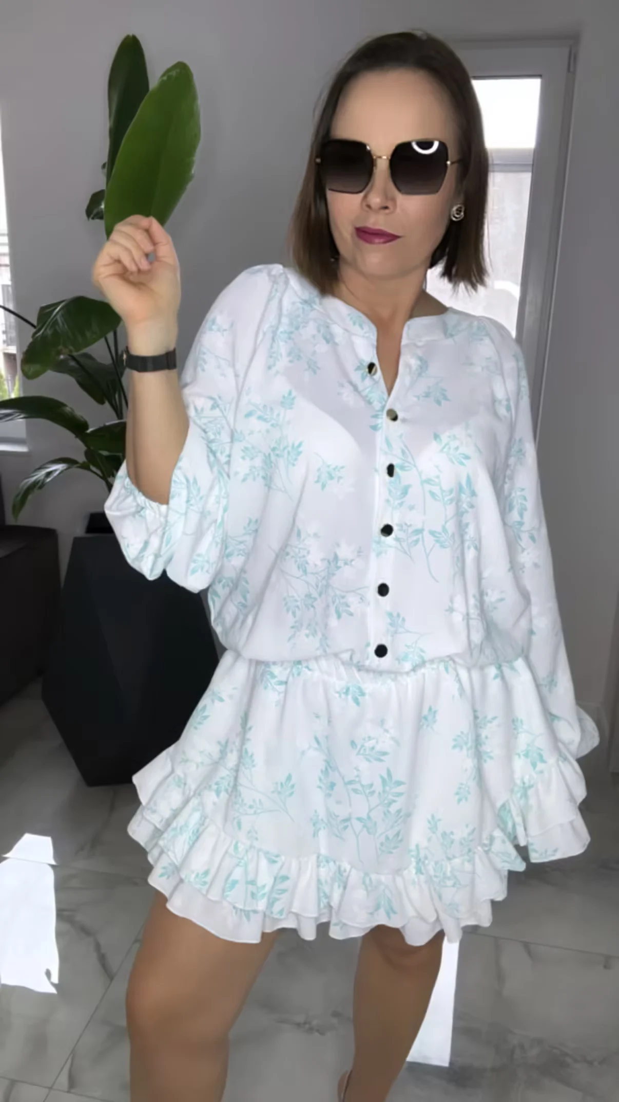 Kombinezon Lola Bianka letni krótki z długim rękawem, pod spodem szorty, doskonały do klapek, snekaerów a także szpilek