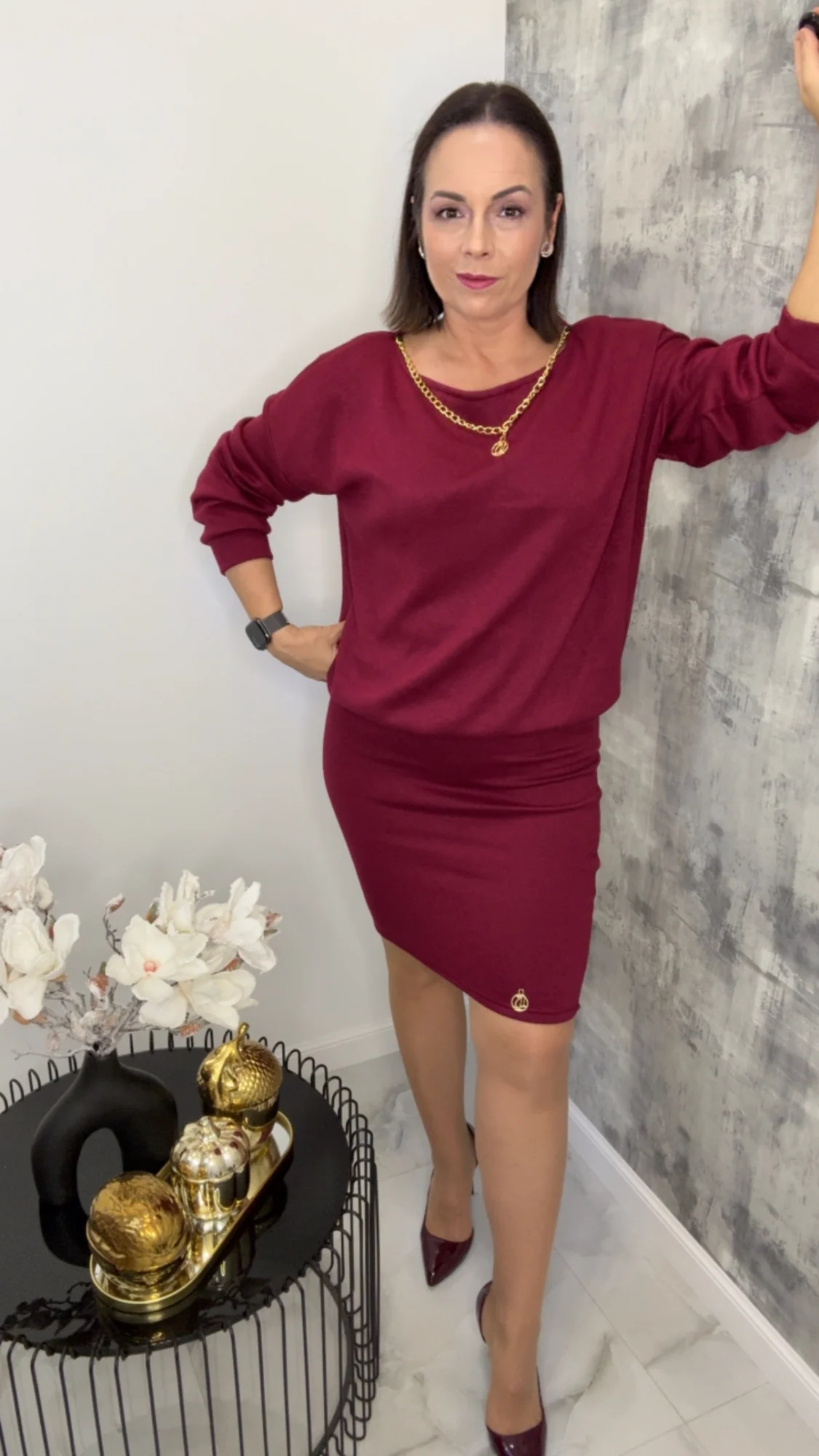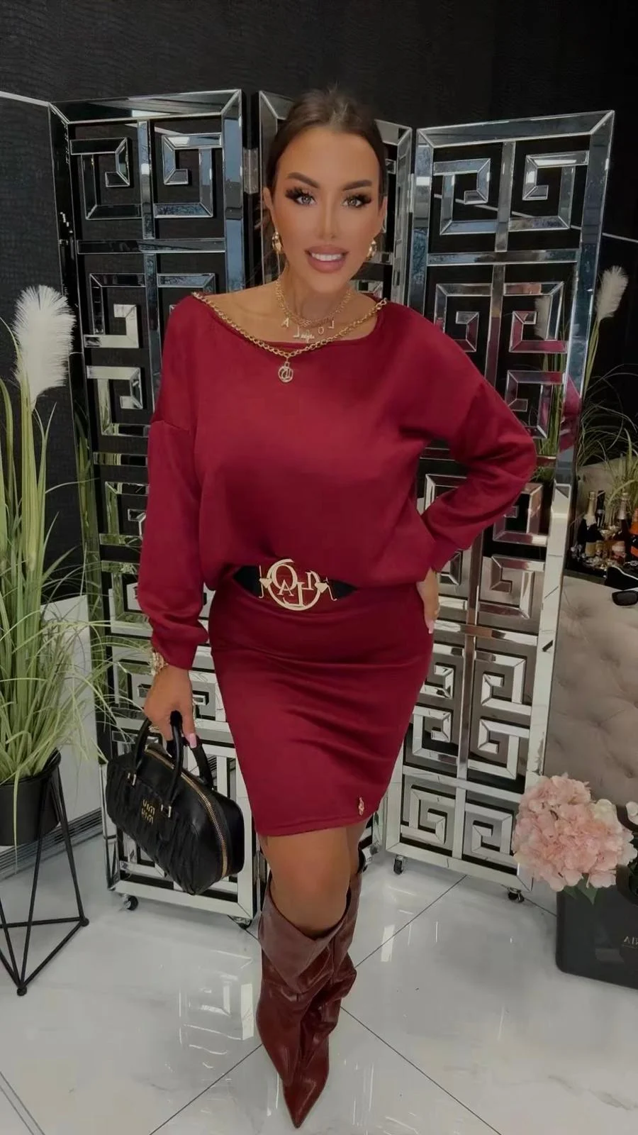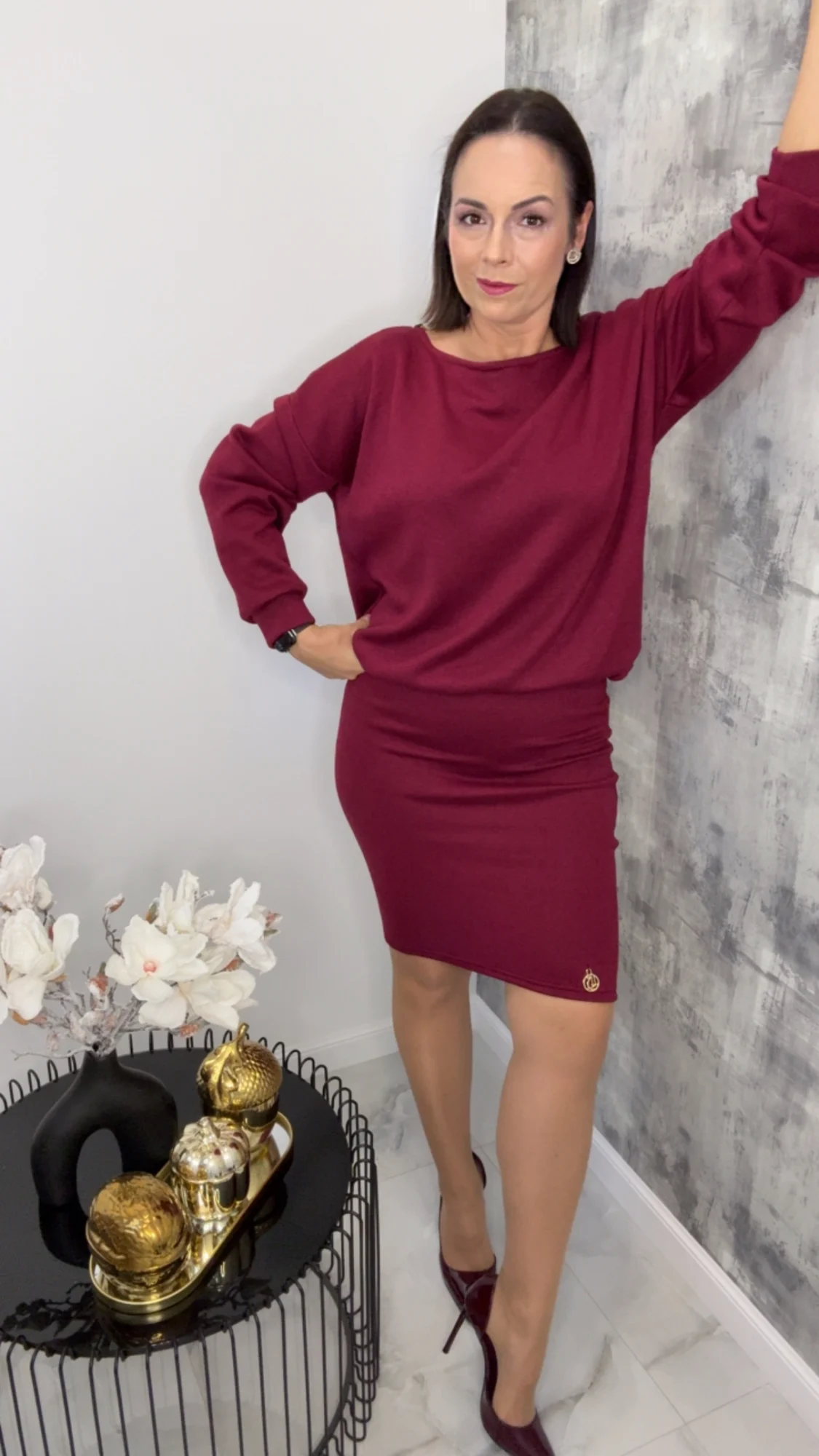 Komplet bordowy Lola Bianka dzianinowy, piękny elegancki i wygodny