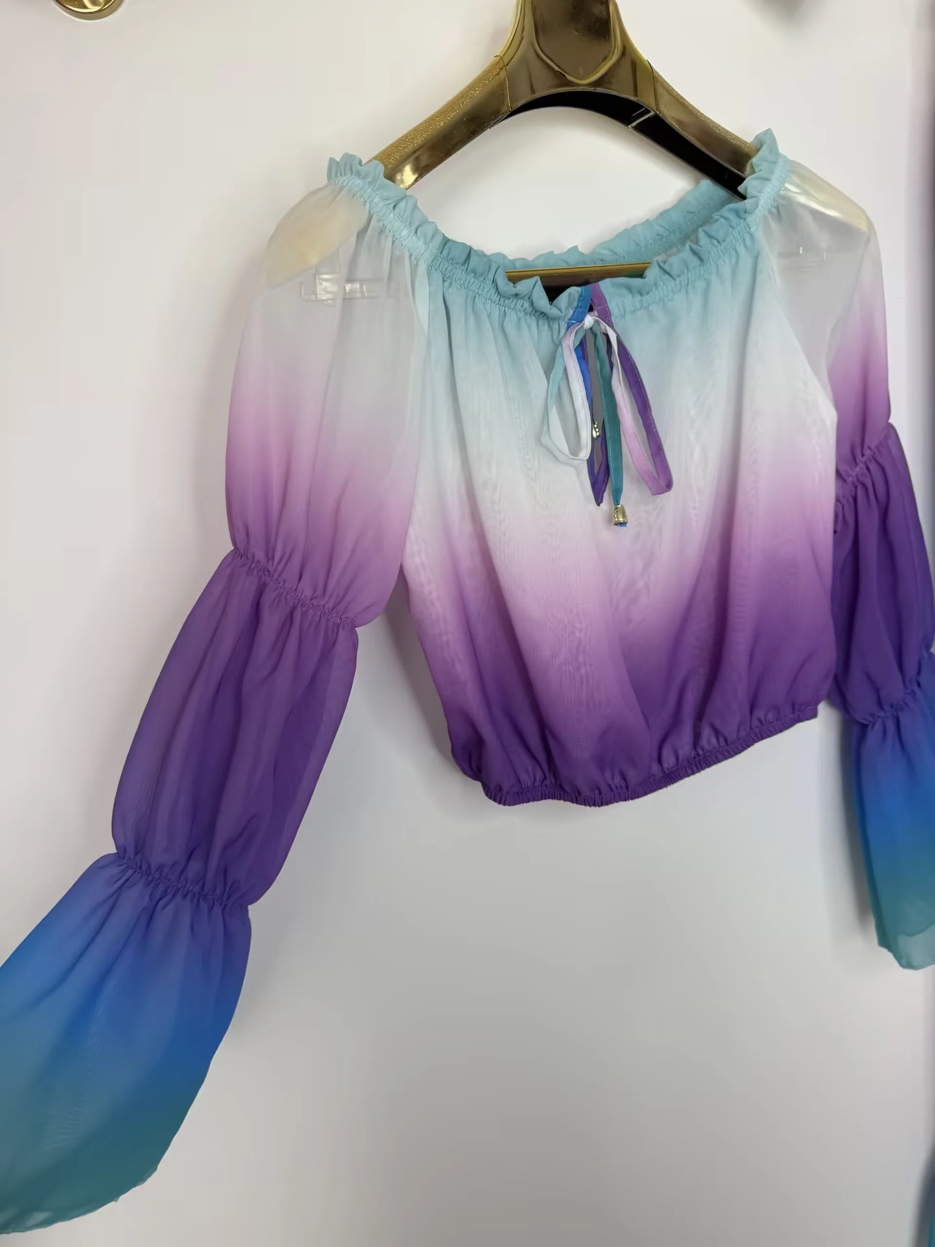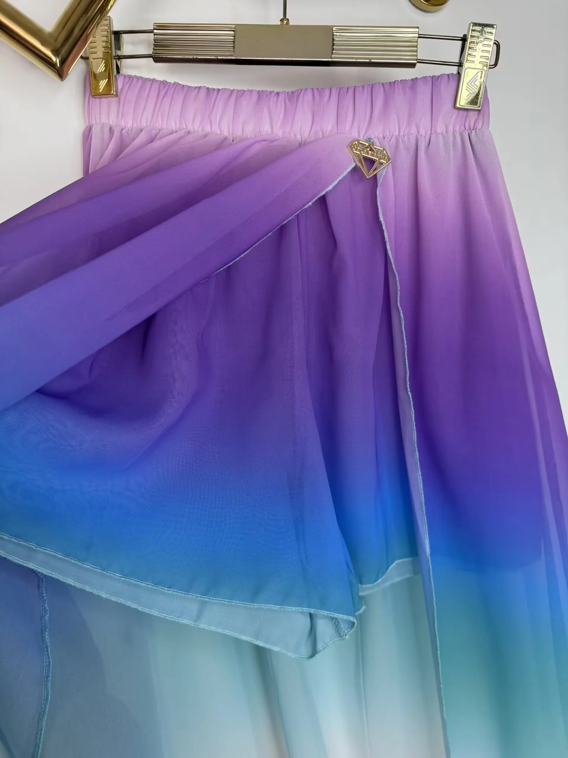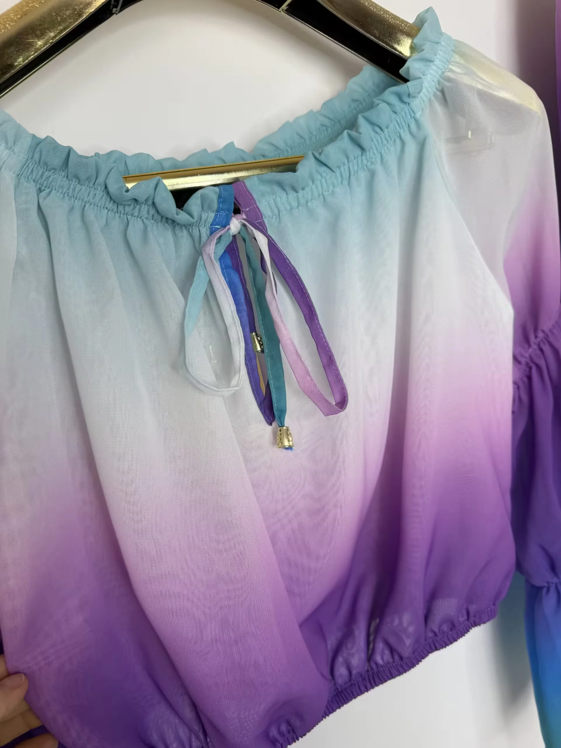Komplet letni Lola Bianka top spódnica w cudownym princie ombre, delikatny w dotyku szyfonowy materiał jakość na najwyższym poziomie