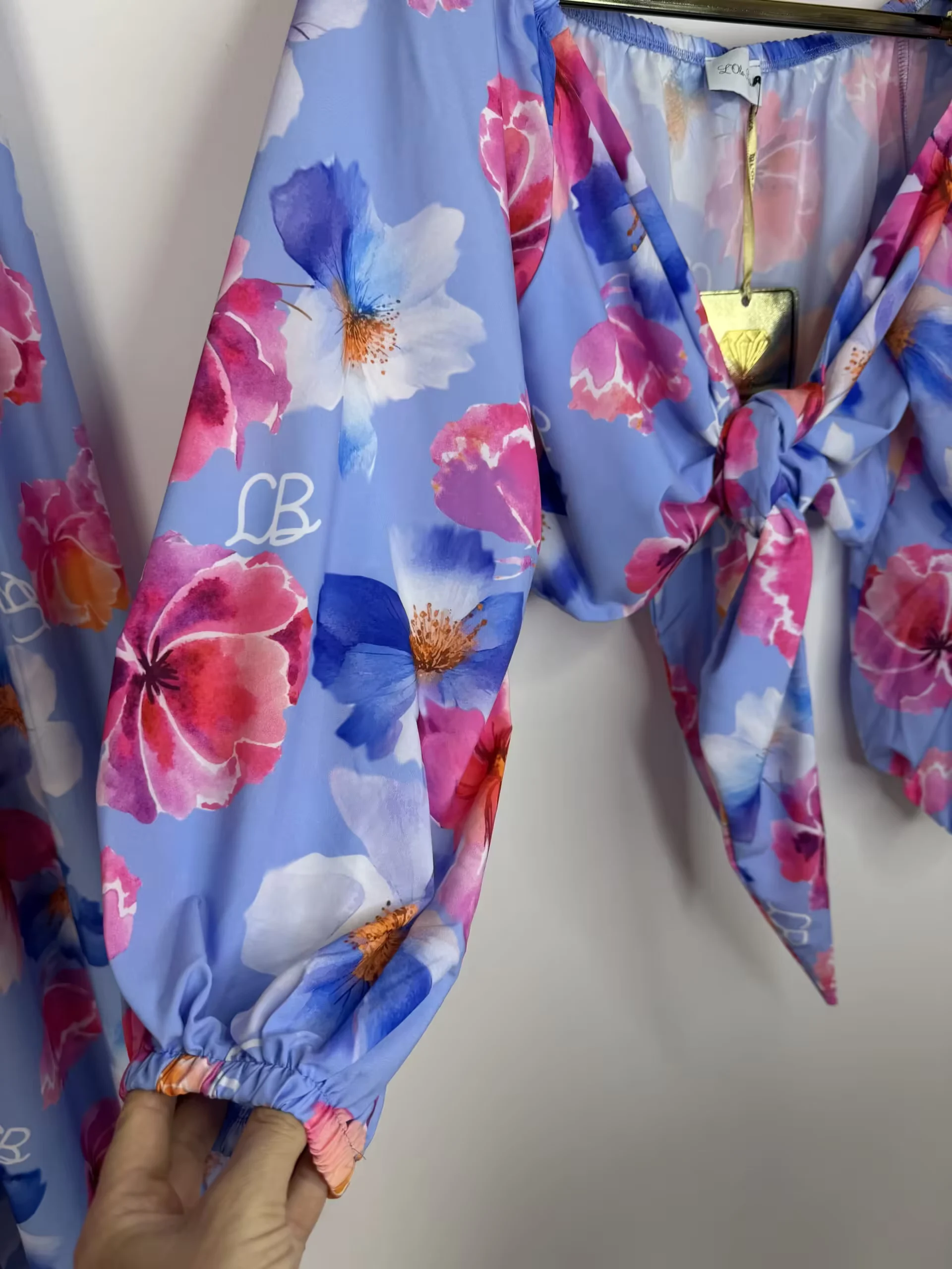 długi rękawek zakończony gumką, środek pięknie podkreślający biust, wiązany