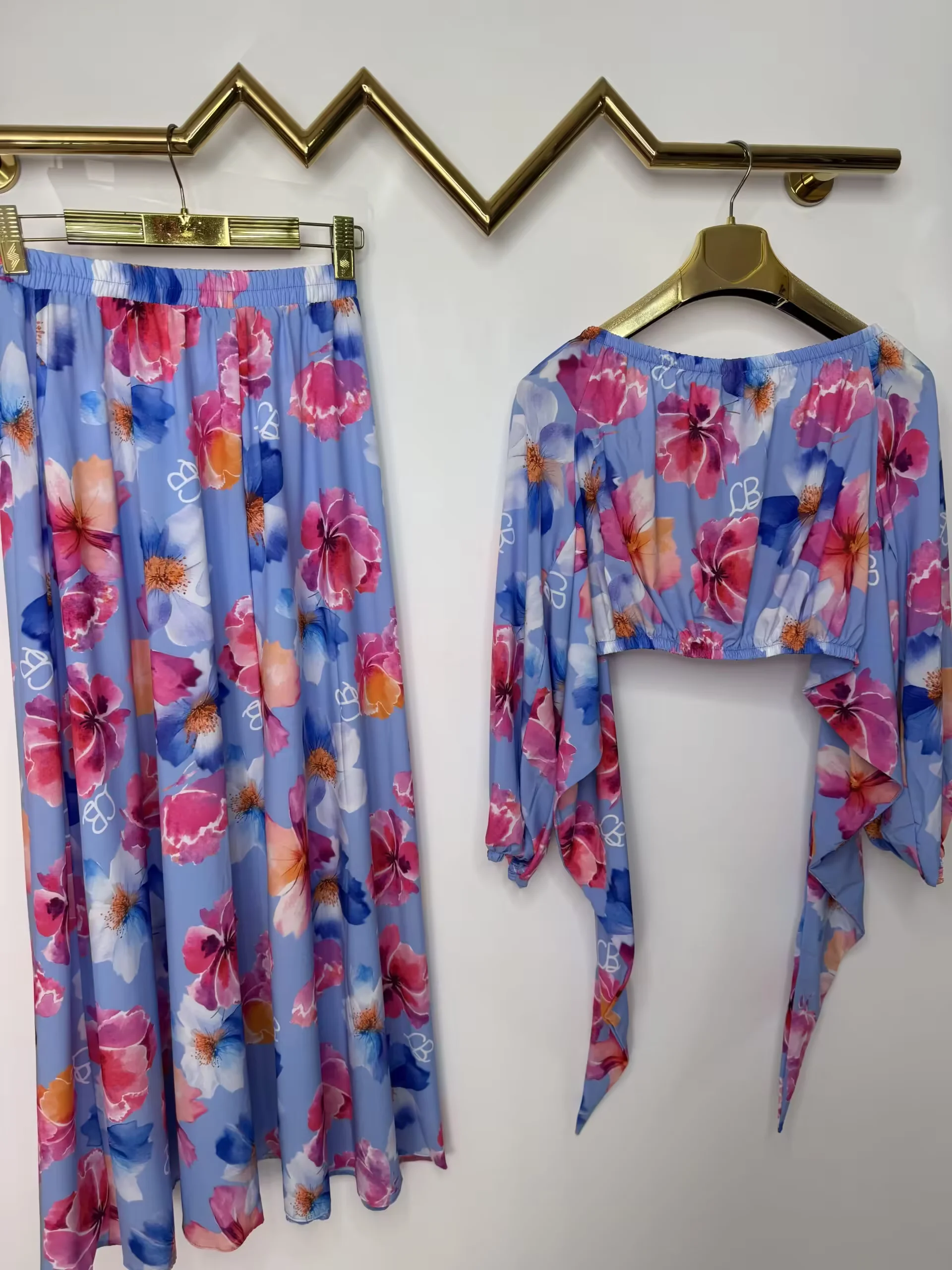 Komplet letni Lola Bianka top spódnica w cudownym princie, delikatny w dotyku materiał jakość na najwyższym poziomie