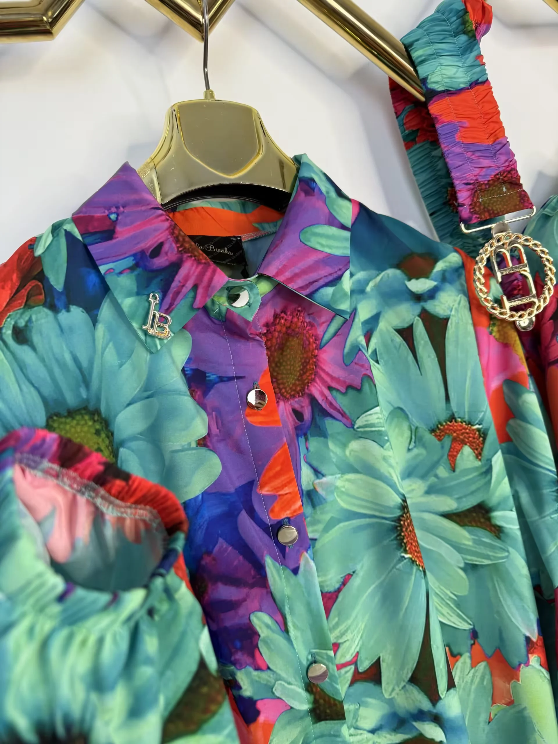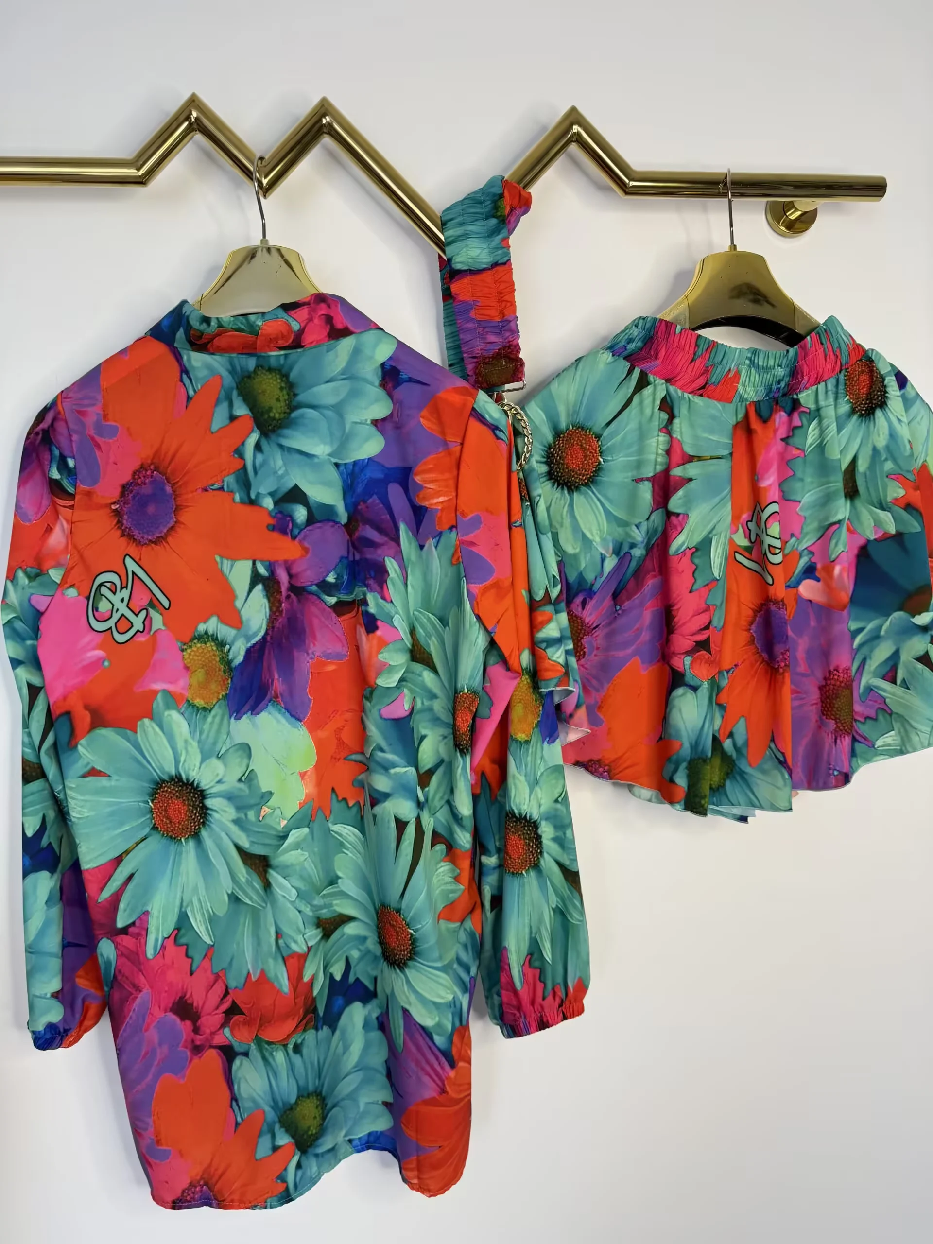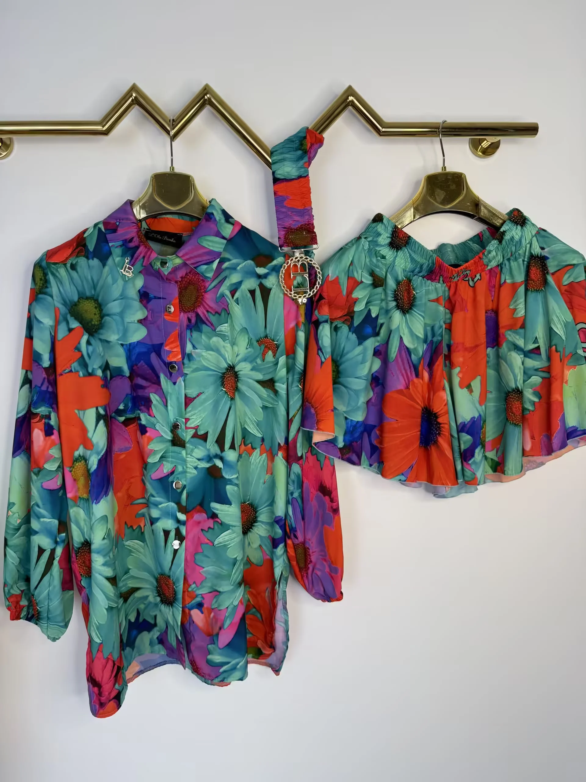 Przepiękny cieniutki zestaw 3 częściowy : koszula ,spodenki, pasek
