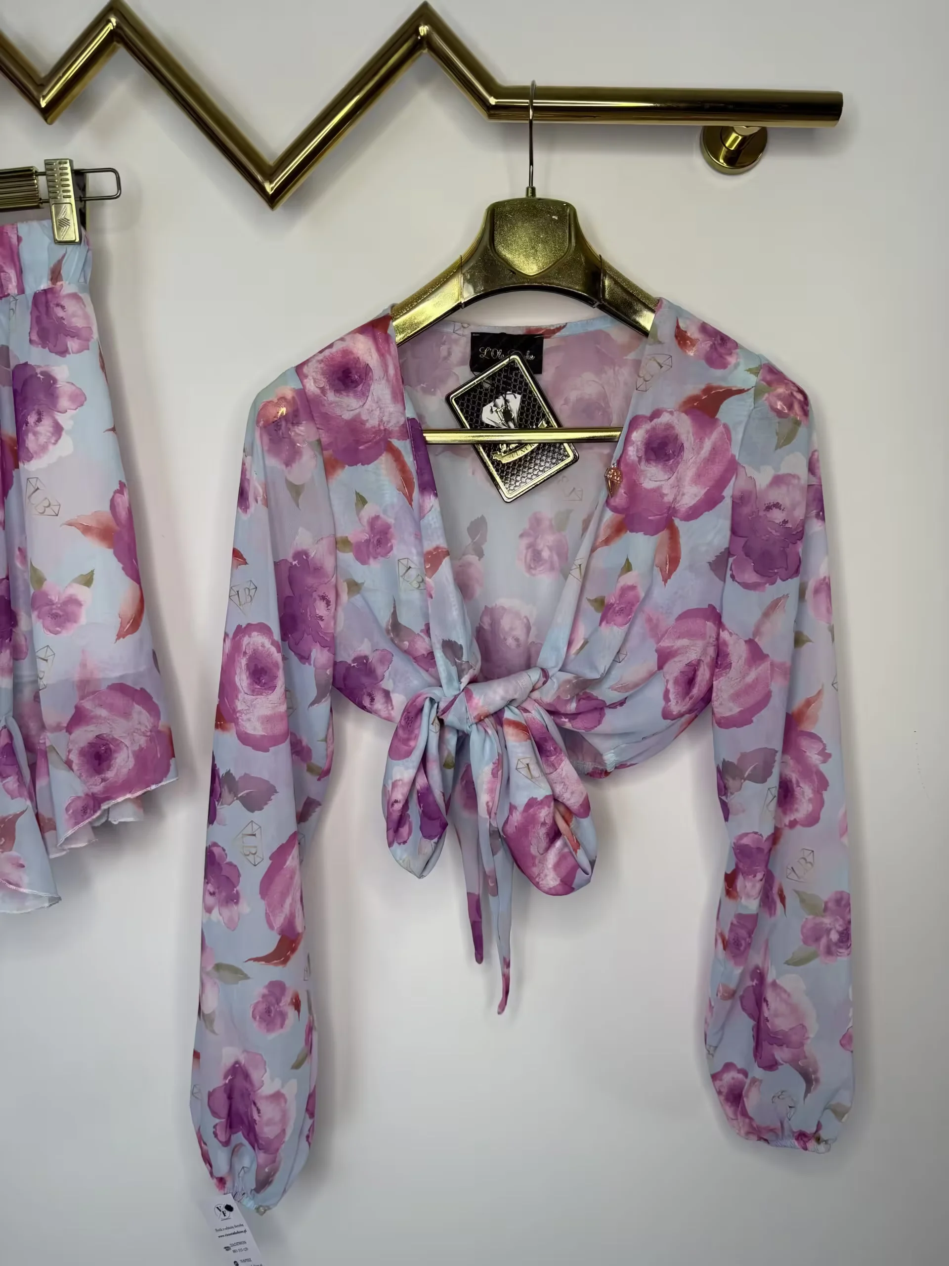 długi rękawek zakończony gumką, środek pięknie podkreślający biust po zawiązaniu