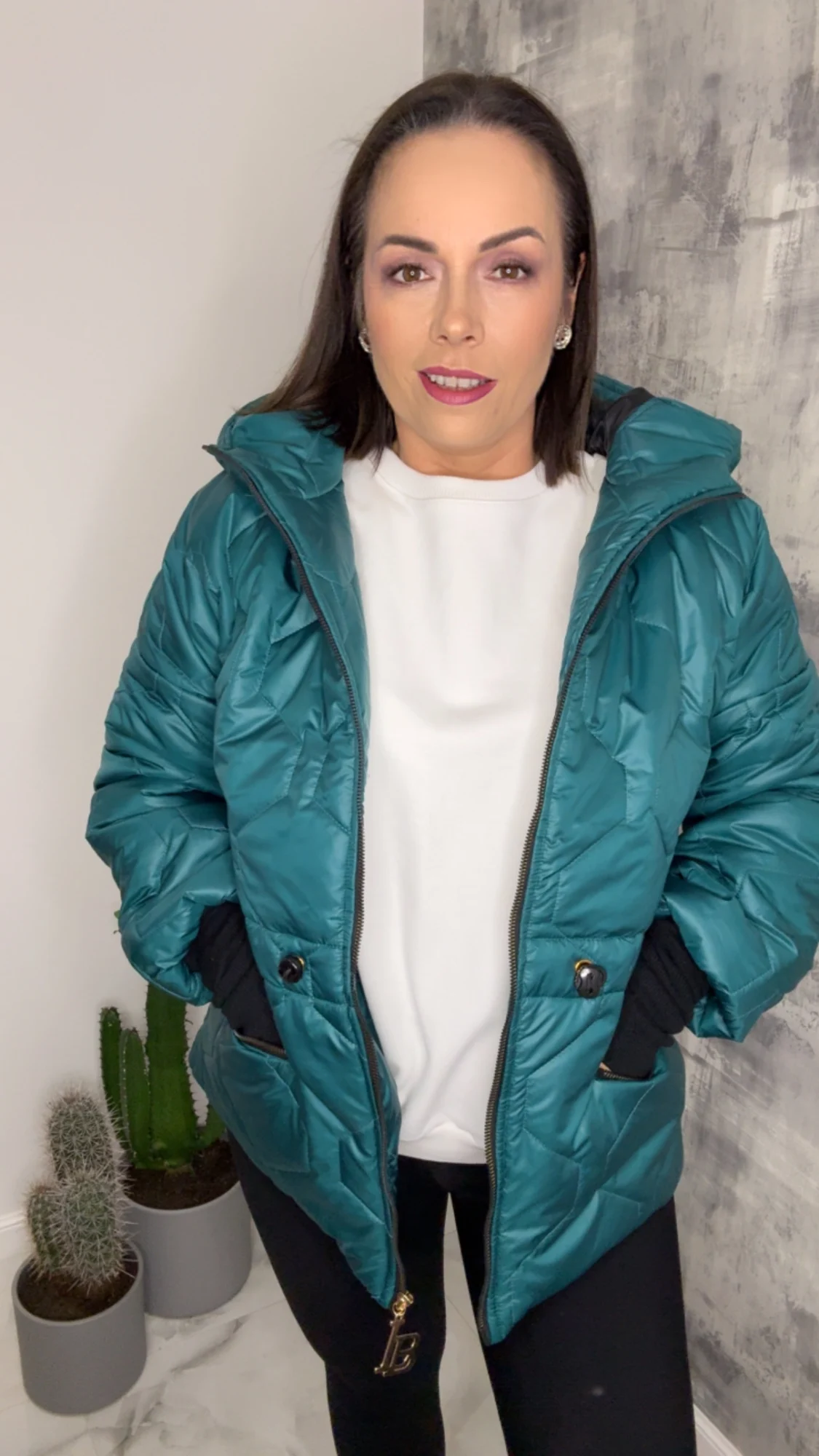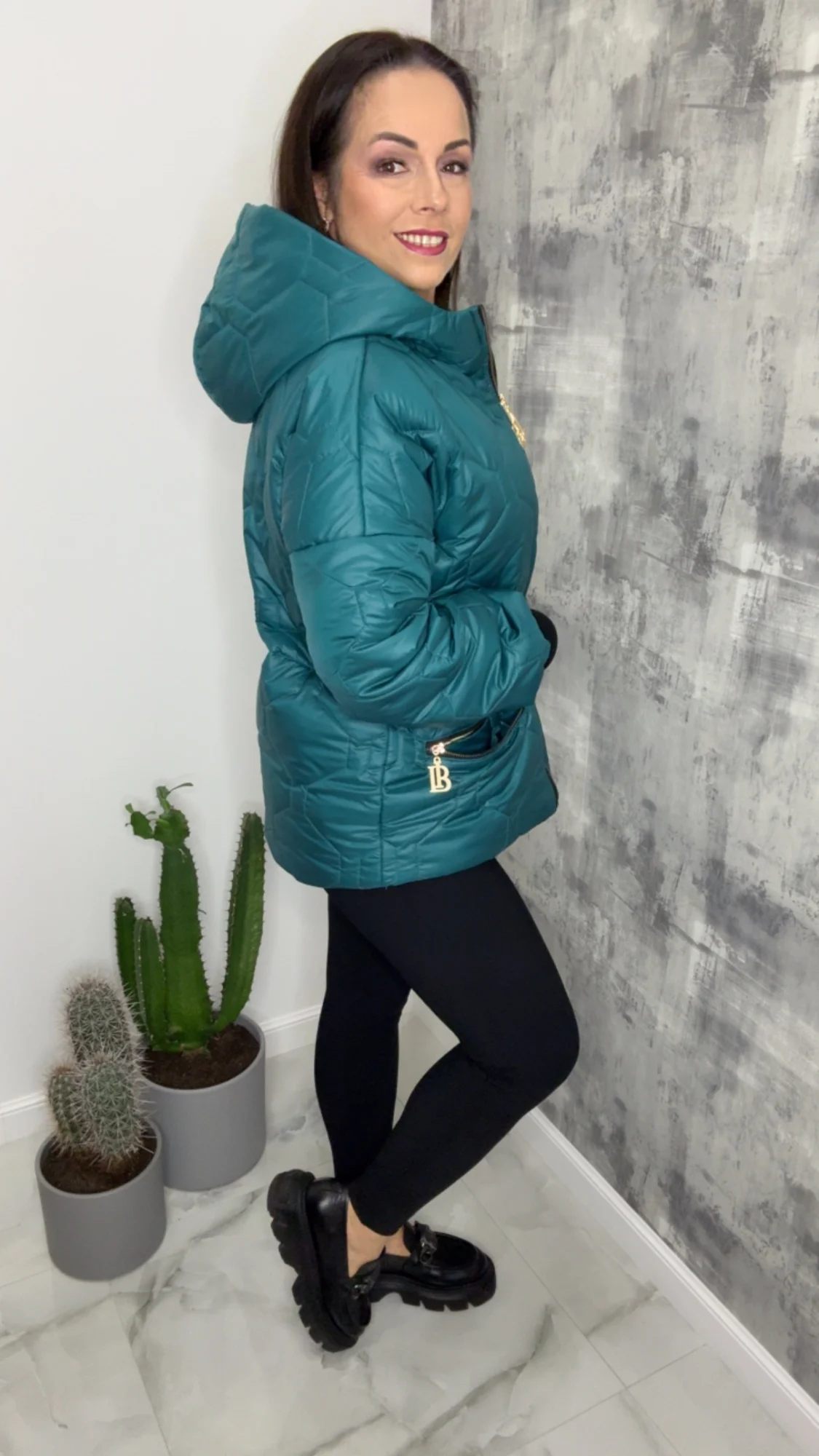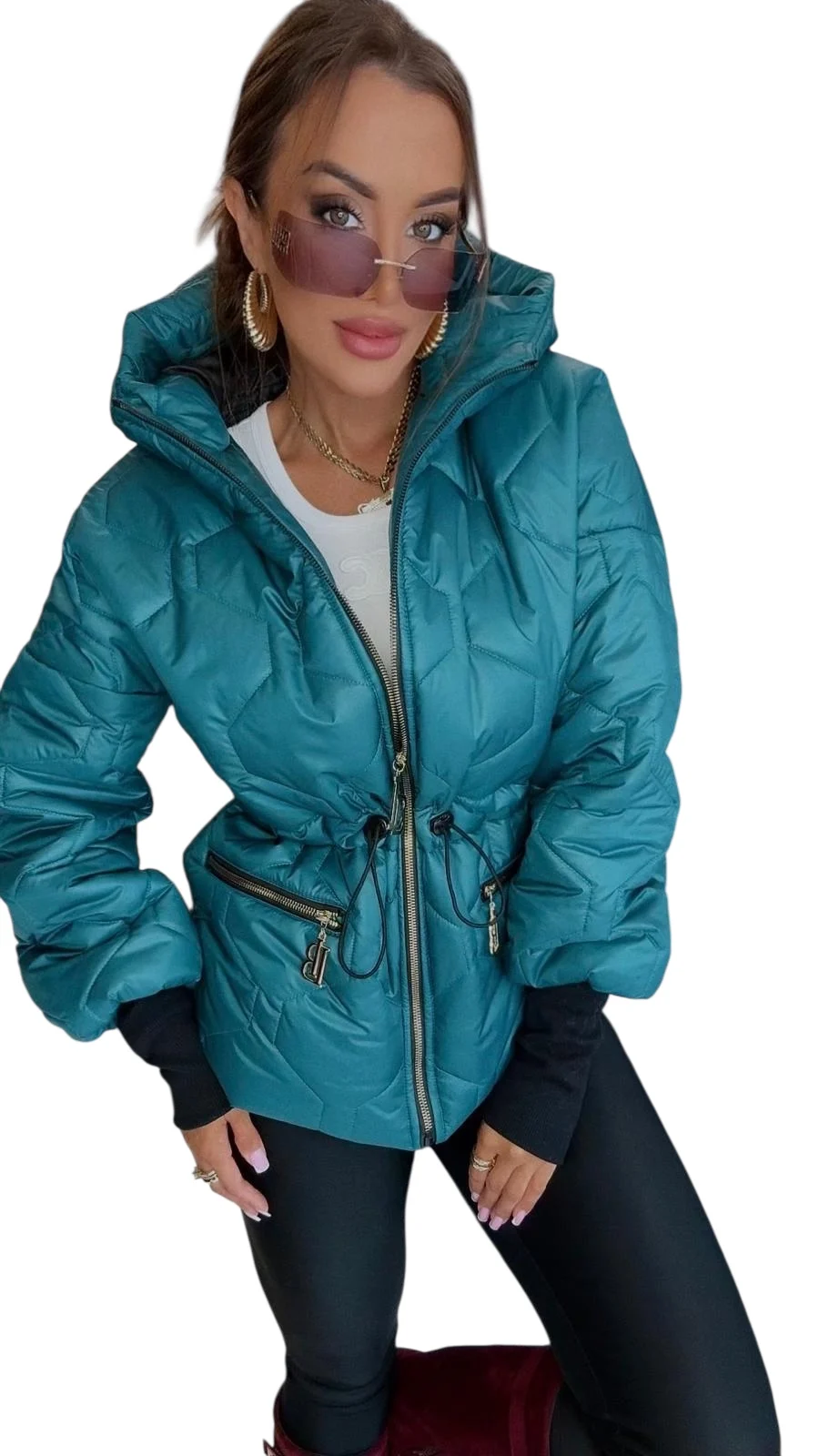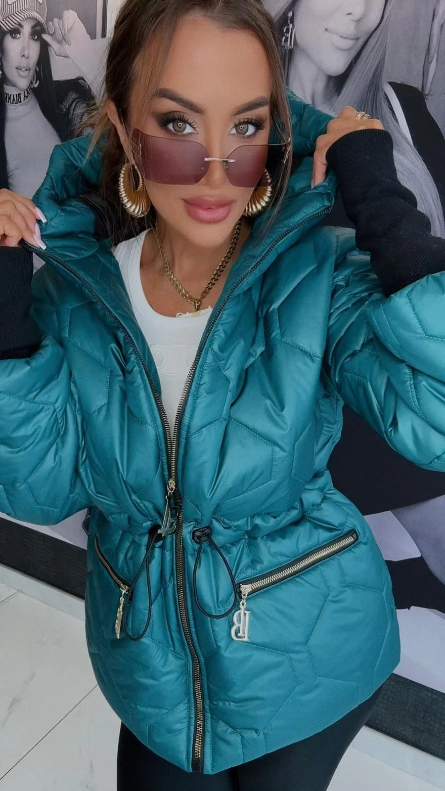 Kurtka została zaprojektowana z myślą o kobietach, które chcą wyglądać modnie nawet w chłodniejsze dni. Pikowana struktura nadaje jej wyjątkowego charakteru i sprawia, że model prezentuje się stylowo. Przepiękny morsko zielony kolor przyciąga uwagę i dodaje energii każdej stylizacji. To propozycja, która świetnie sprawdzi się zarówno na co dzień, jak i w bardziej eleganckich zestawach.
