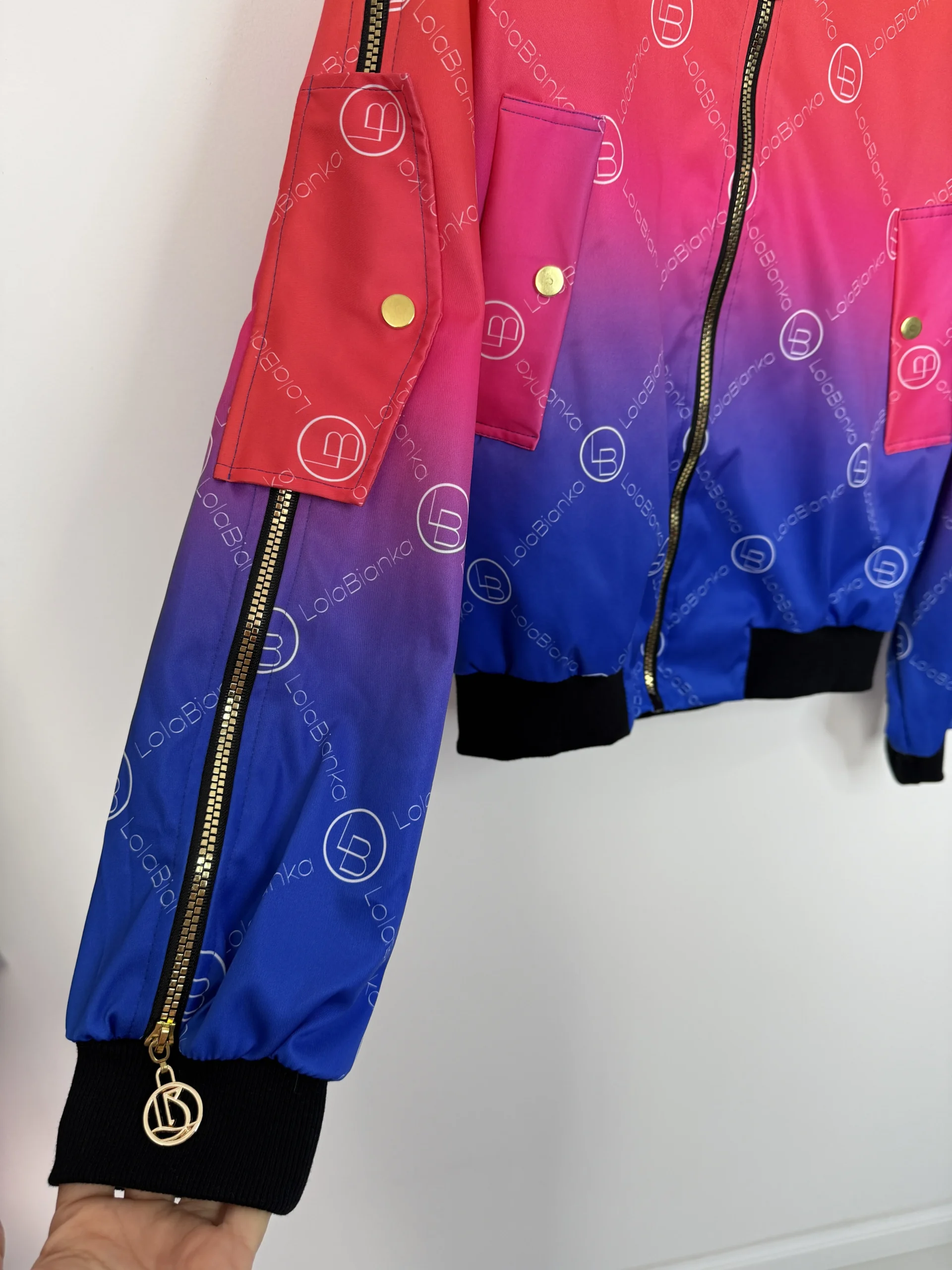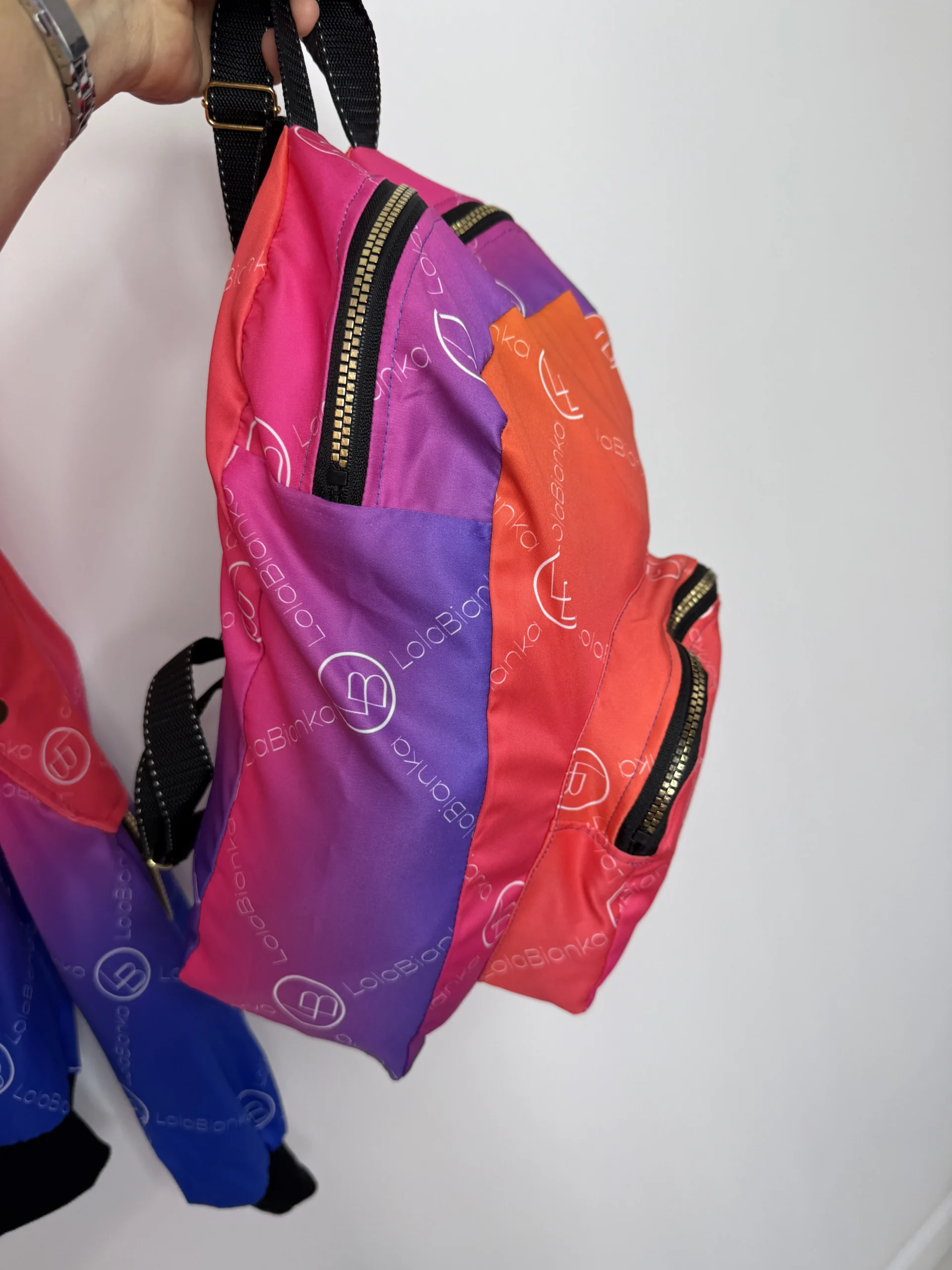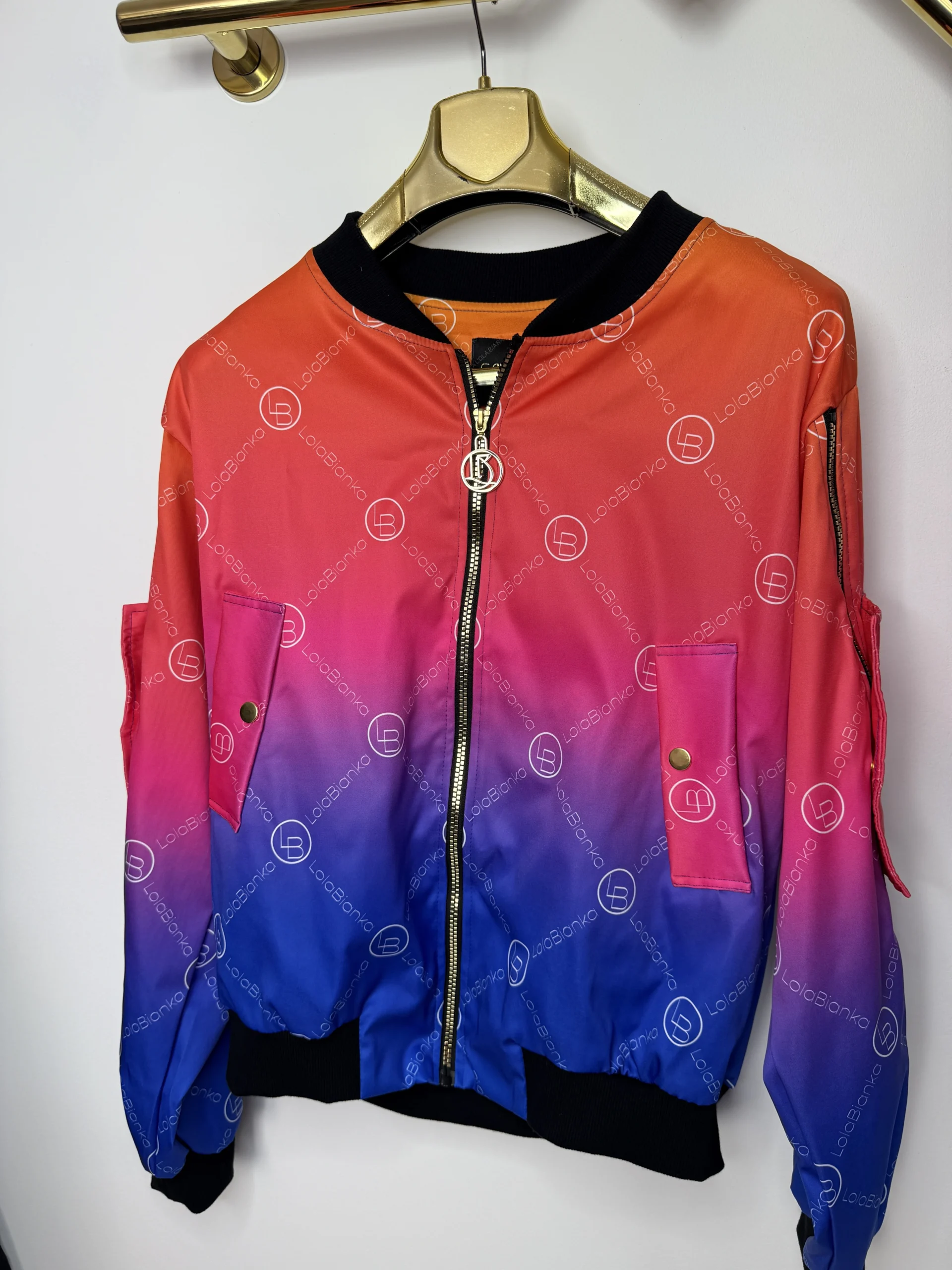 Kurtka Lola Bianka szwedka z plecakiem w kolorze pomarańczowo-różowo-niebieskim ombre – modny zestaw, który łączy wygodę, praktyczność i styl.Kurtka Lola Bianka szwedka + plecak w kolorze pomarańczowo-różowo-niebieskim ombre. Lekki zestaw na wiosnę i lato. Uniwersalny rozmiar S/M/L.