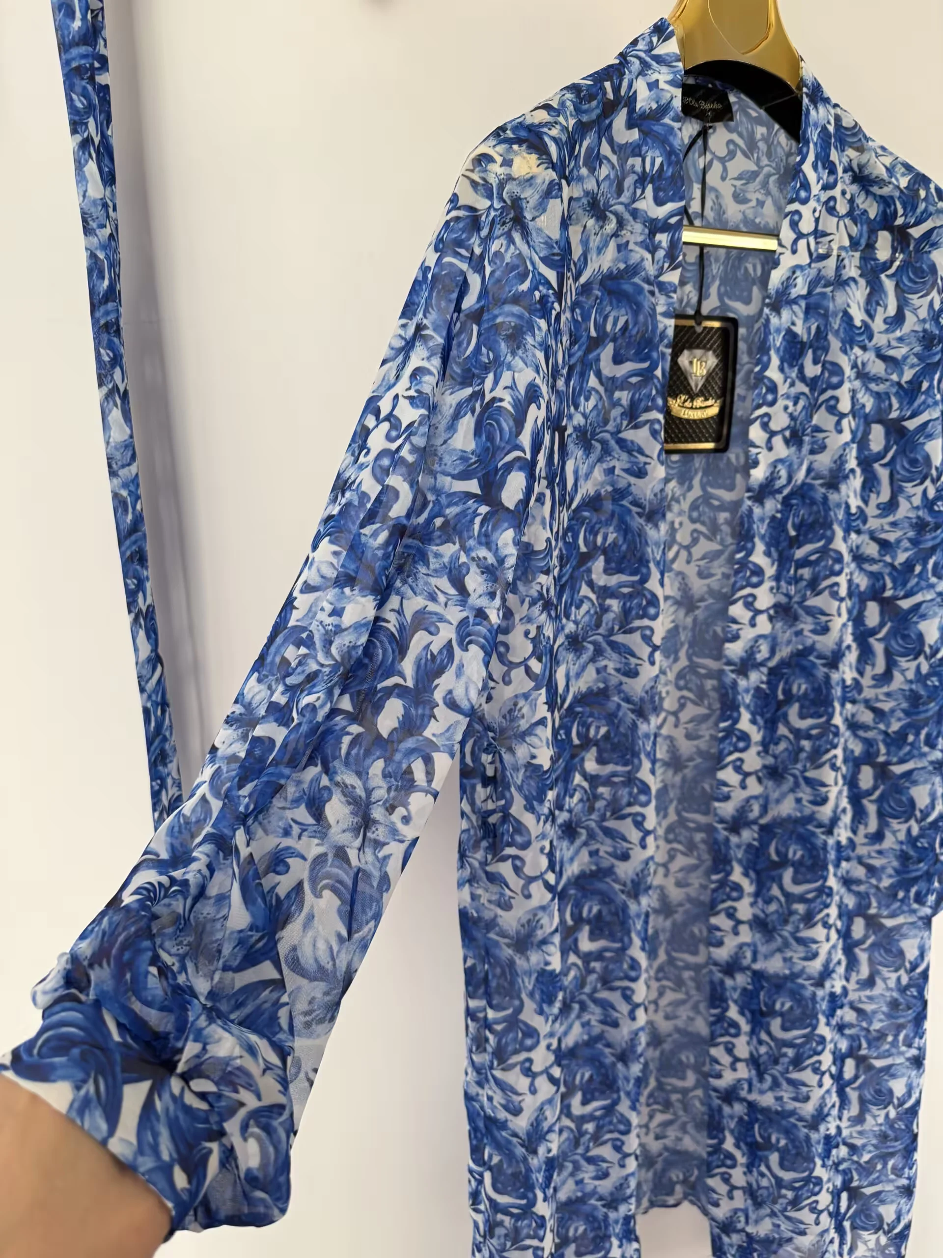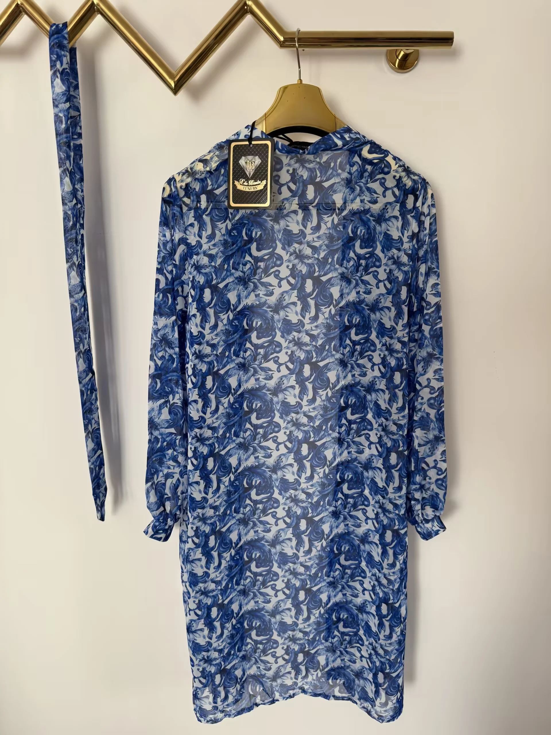 Narzutka plażowa Lola Bianka tunika letnia z paskiem na strój kąpielowy cieniutka przewiewna, dodatkowo wiązana paskiem, rękawek długi rozmiar uniwersalny pasuje na SML dł. od…