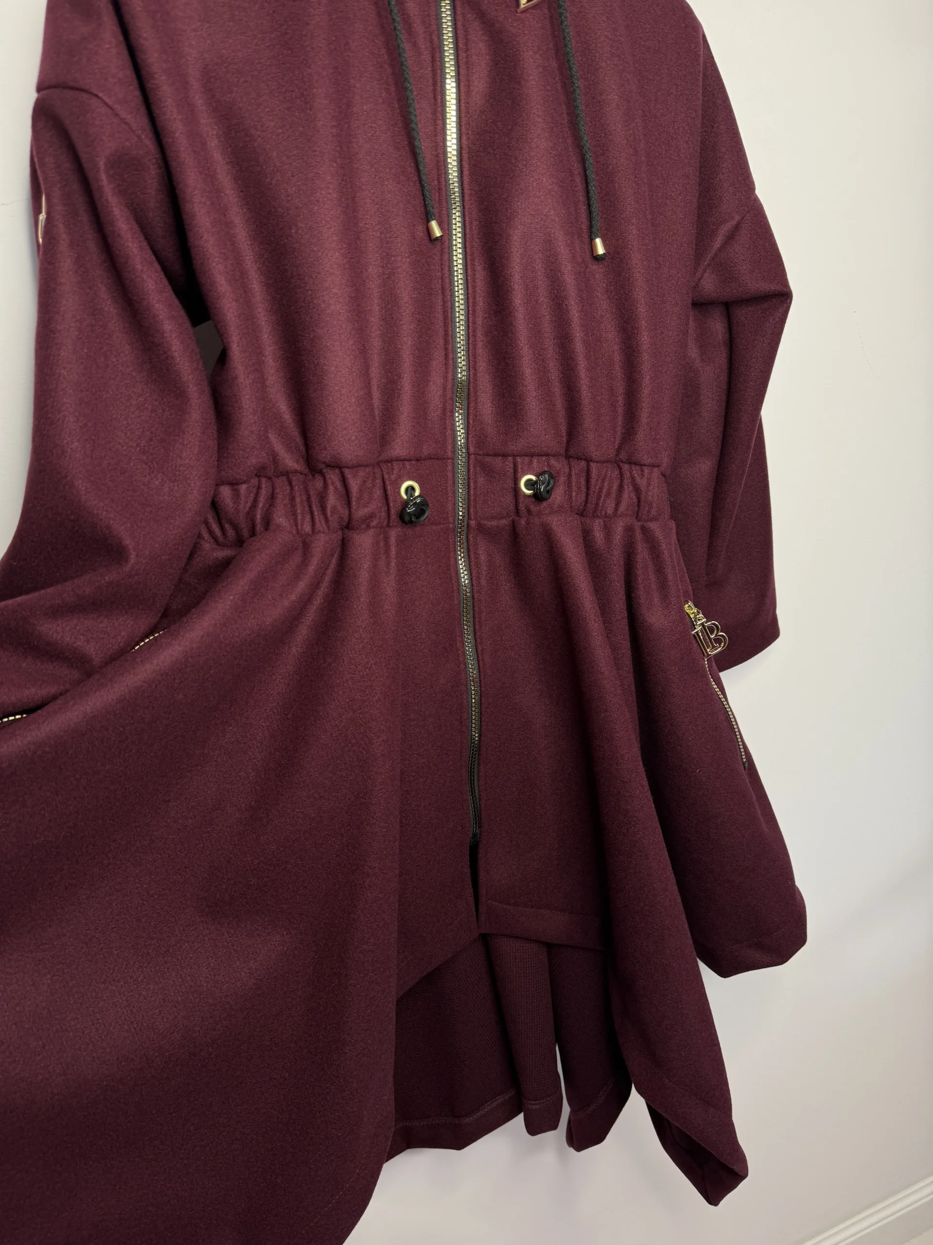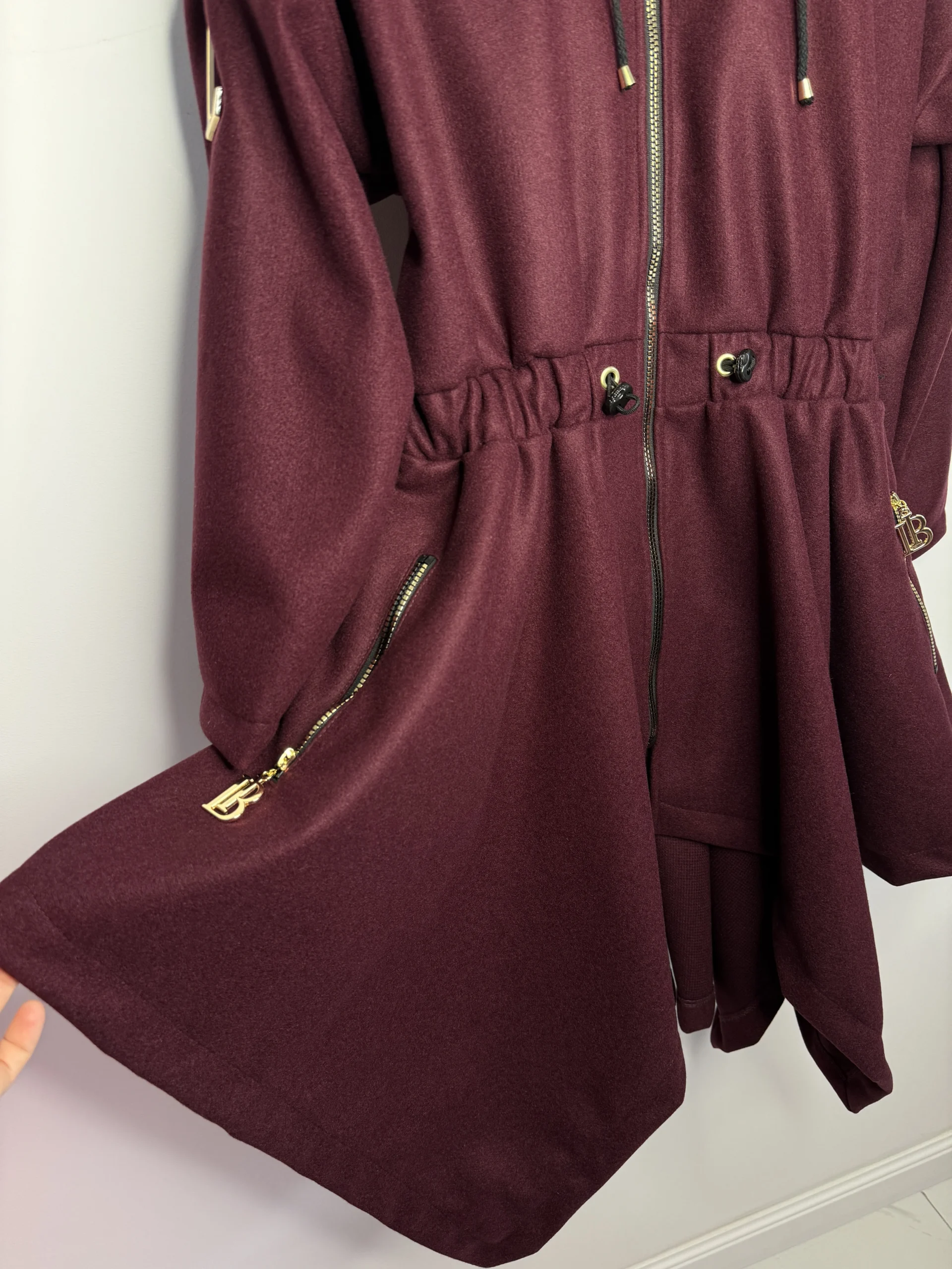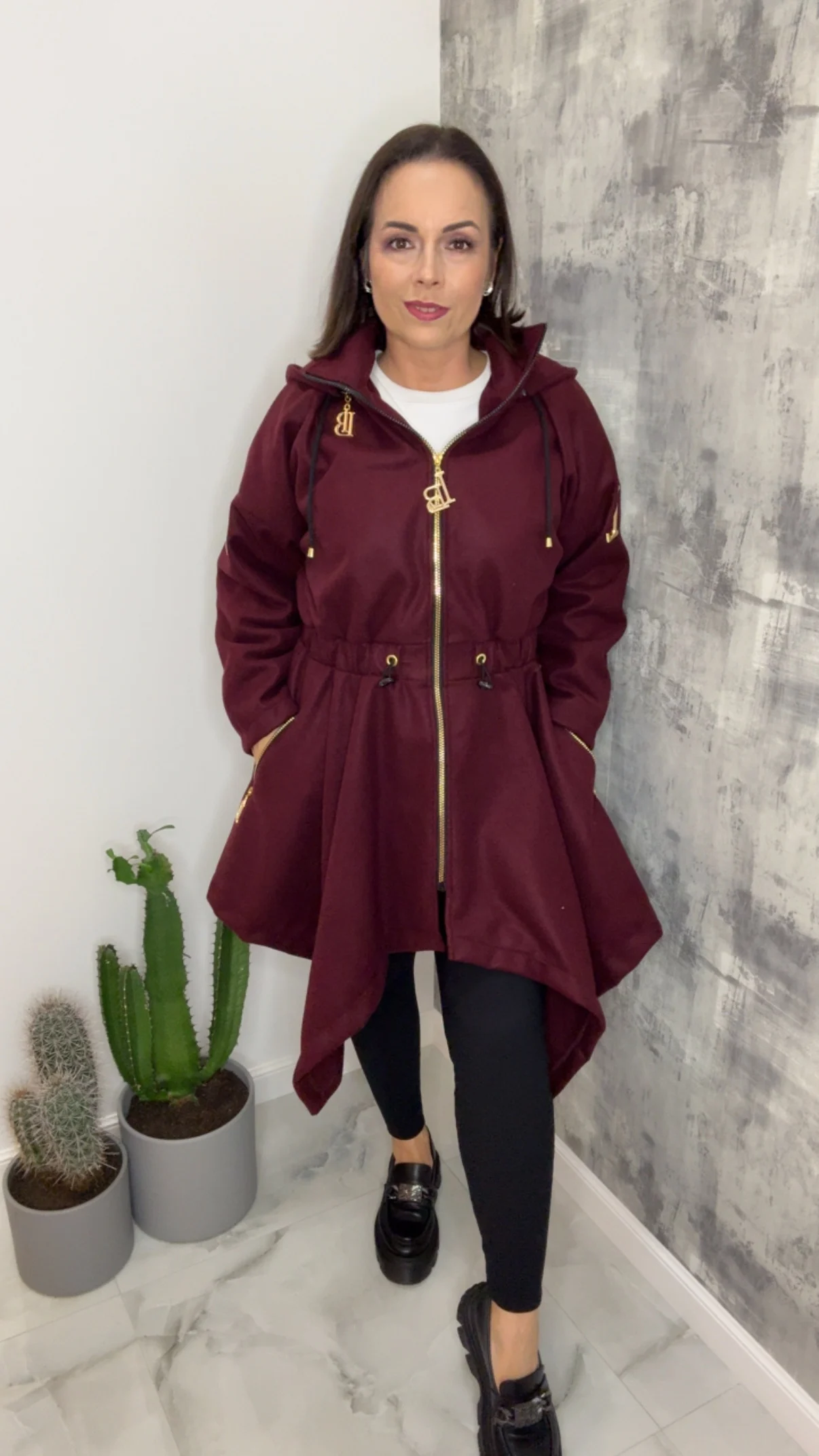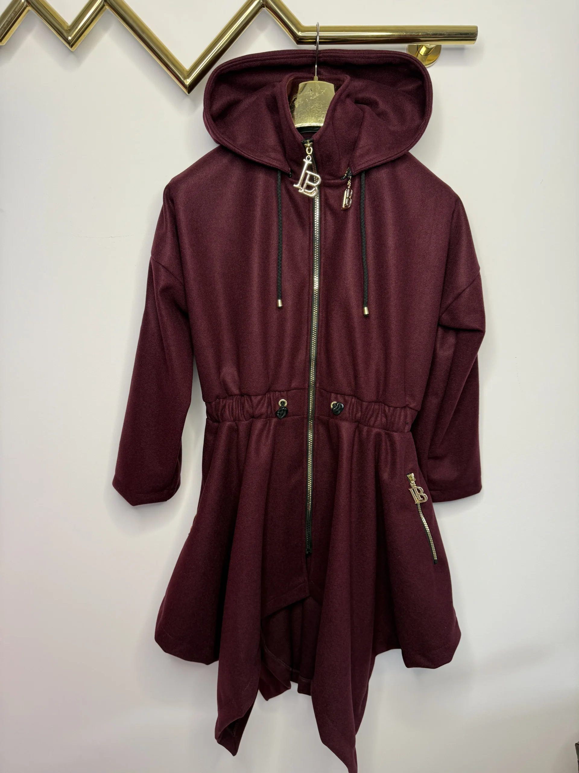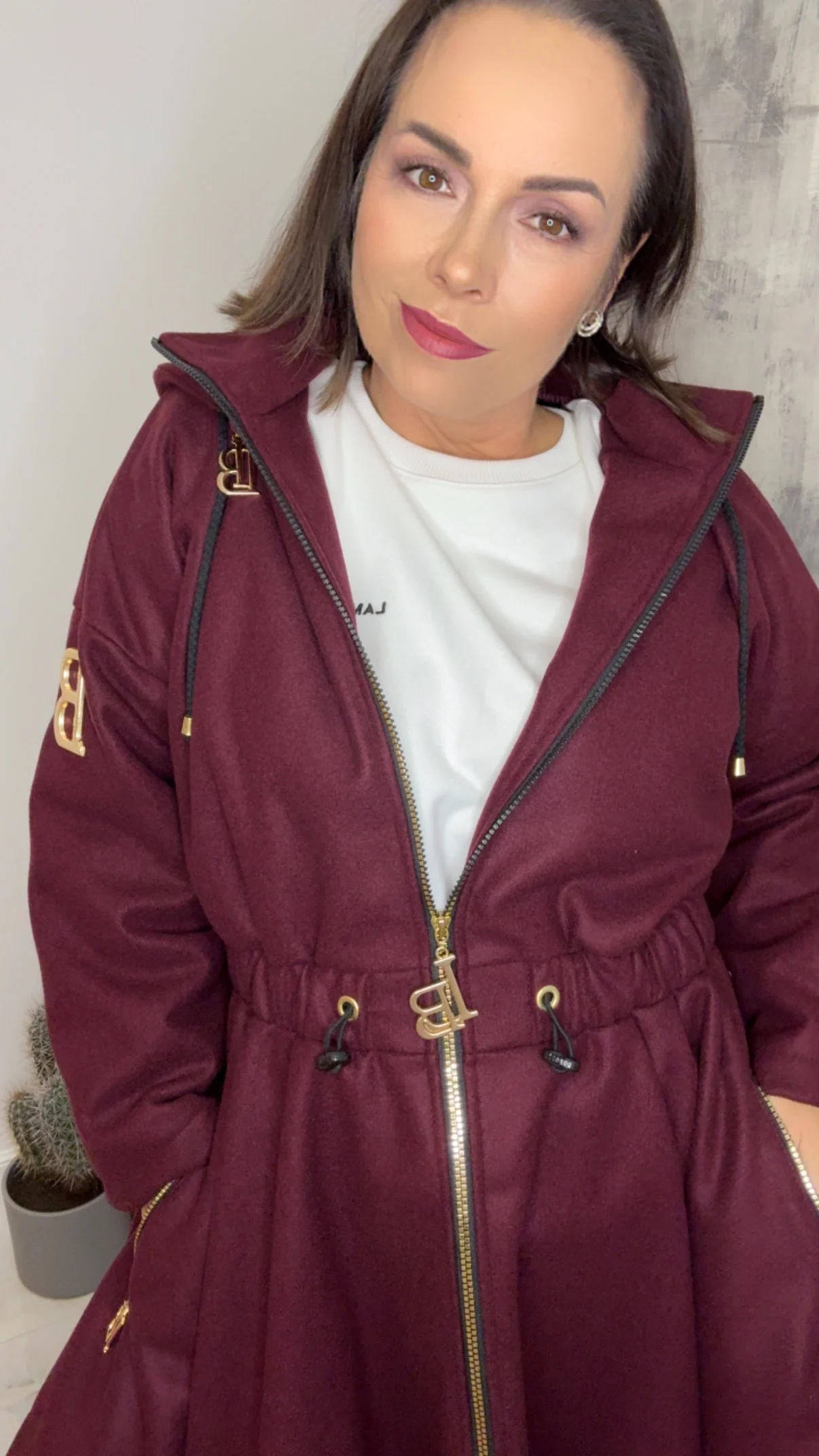 Płaszcz bordowy Lola Bianka przepiękny i wygodny model w rozmiarze uniwersalnym zapinany na zamek w pasie troczki do regulacji dodatkowo odpinany kaptur, kieszenie po bokach zapinane na zamek. Płaszcz Lola Bianka bordowy z kapturem to idealne połączenie elegancji i codziennego komfortu. Model ten został zaprojektowany z myślą o kobietach, które lubią wyglądać stylowo, a jednocześnie czuć się swobodnie. Dzięki praktycznym detalom i kobiecemu fasonowi, to płaszcz, który sprawdzi się zarówno w miejskich stylizacjach, jak i podczas weekendowych wyjazdów.