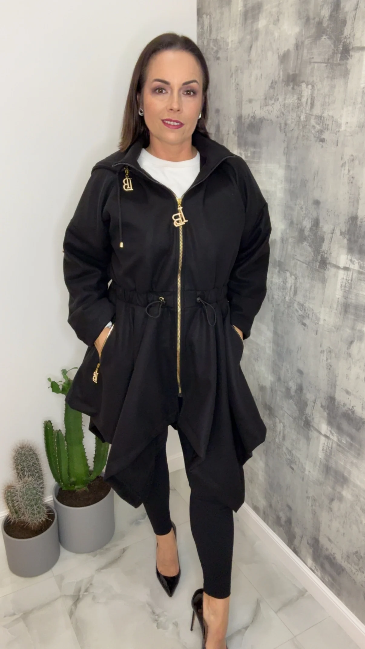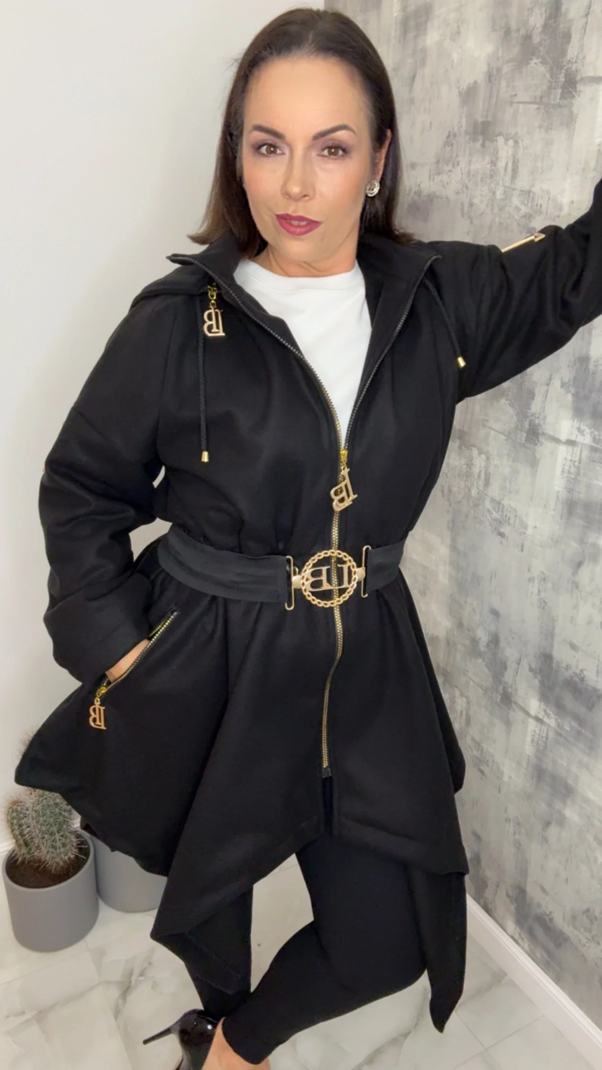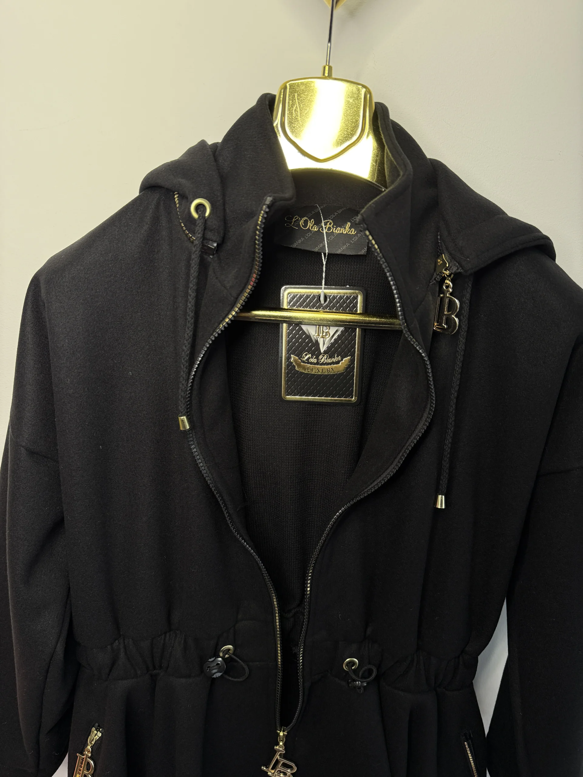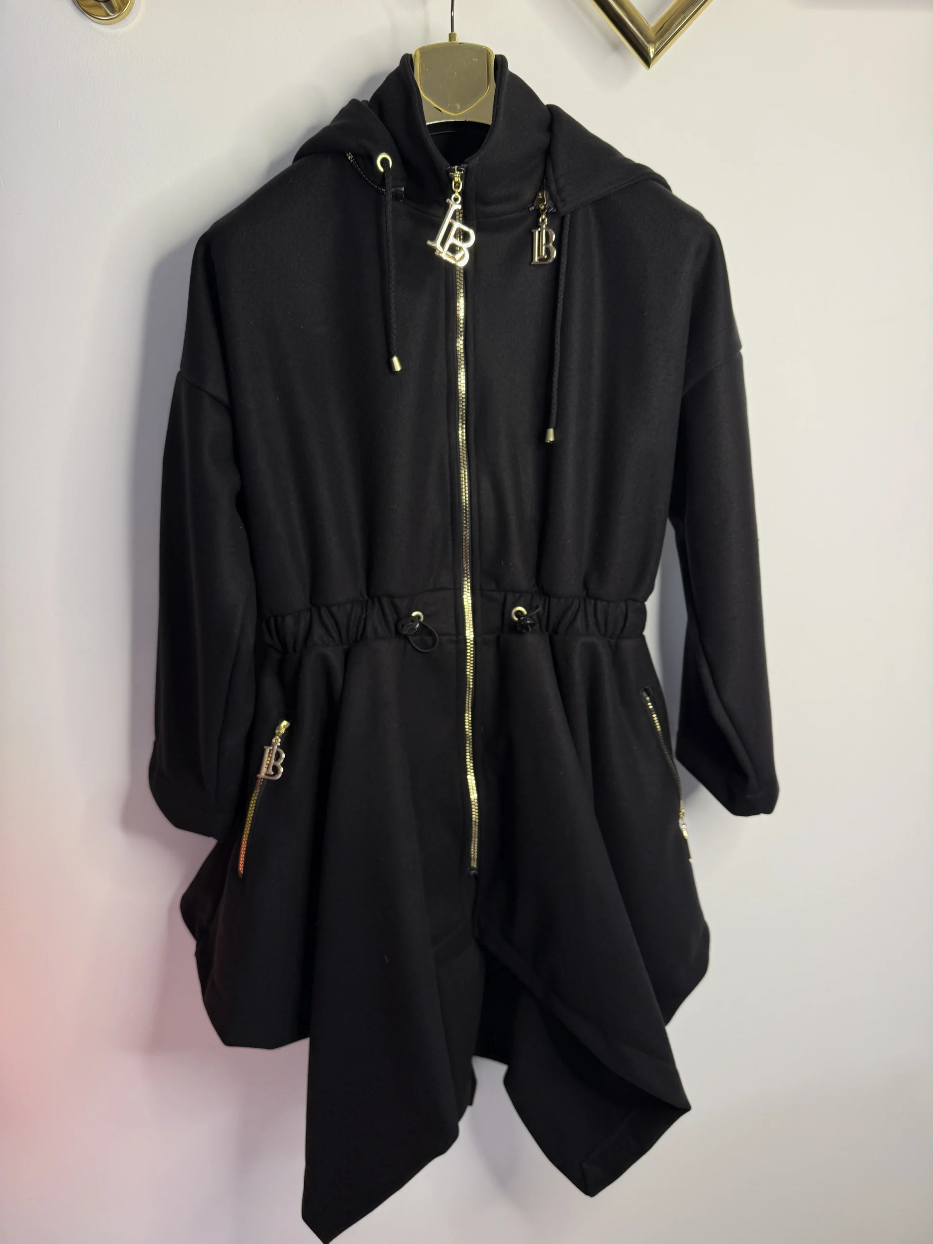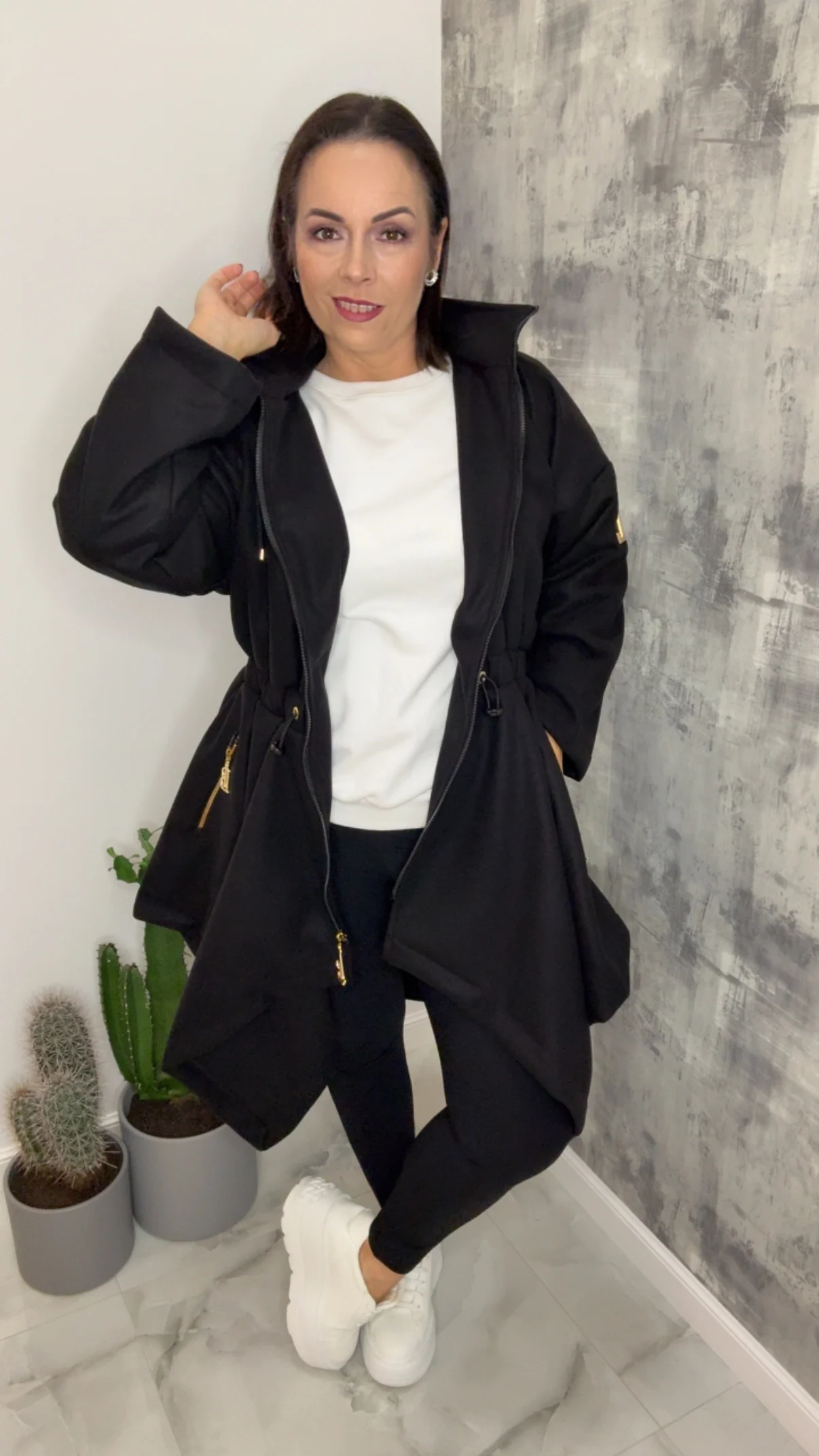 Płaszcz Lola Bianka czarny z kapturem przepiękny i wygodny model w rozmiarze uniwersalnym zapinany na zamek w pasie troczki do regulacji dodatkowo odpinany kaptur, kieszenie po bokach zapinane na zamek. Płaszcz Lola Bianka czarny z kapturem to idealne połączenie elegancji i codziennego komfortu. Model ten został zaprojektowany z myślą o kobietach, które lubią wyglądać stylowo, a jednocześnie czuć się swobodnie. Płaszcz posiada uniwersalny krój z troczkami w pasie, które pozwalają idealnie dopasować go do sylwetki i podkreślić talię.