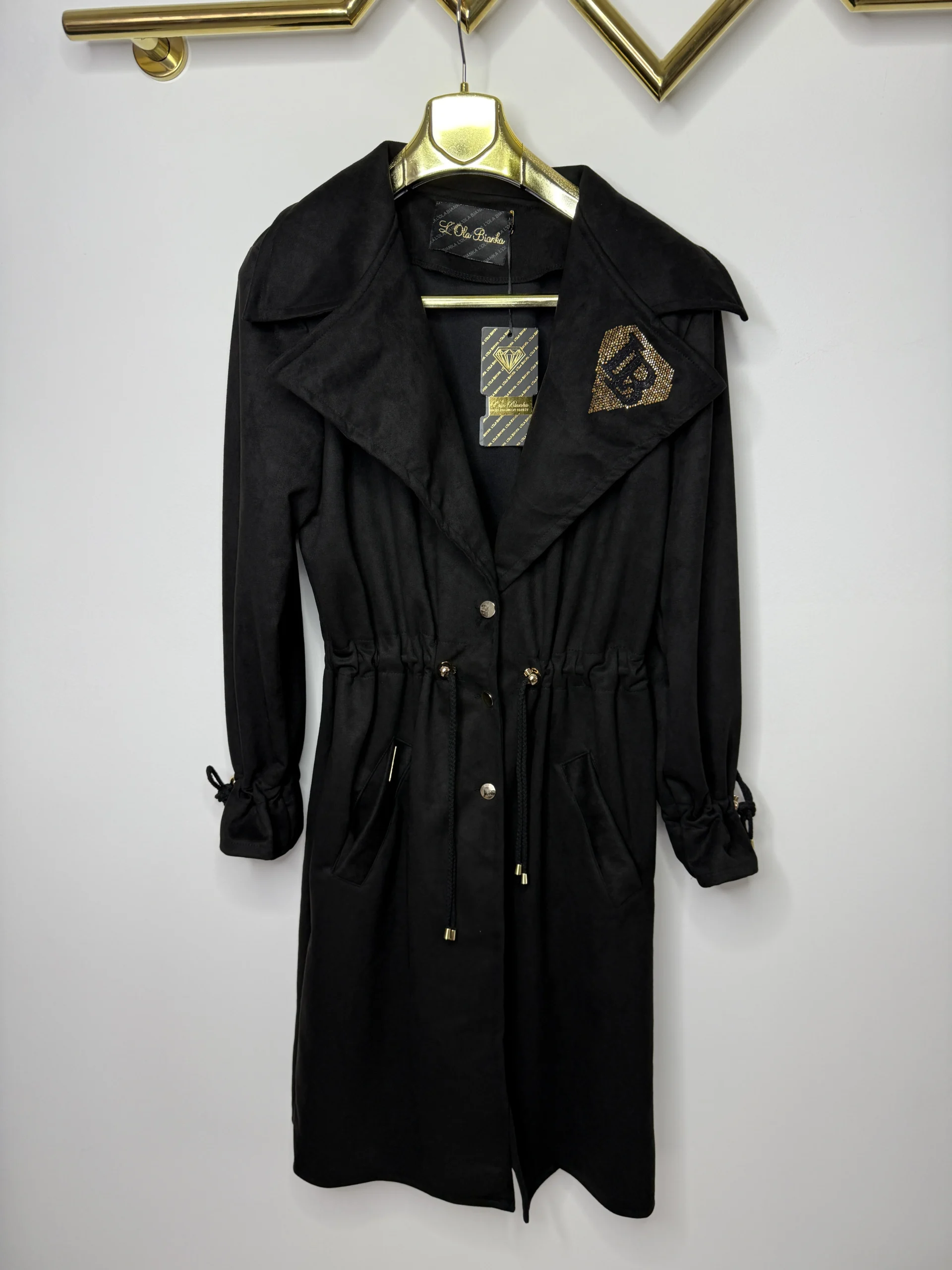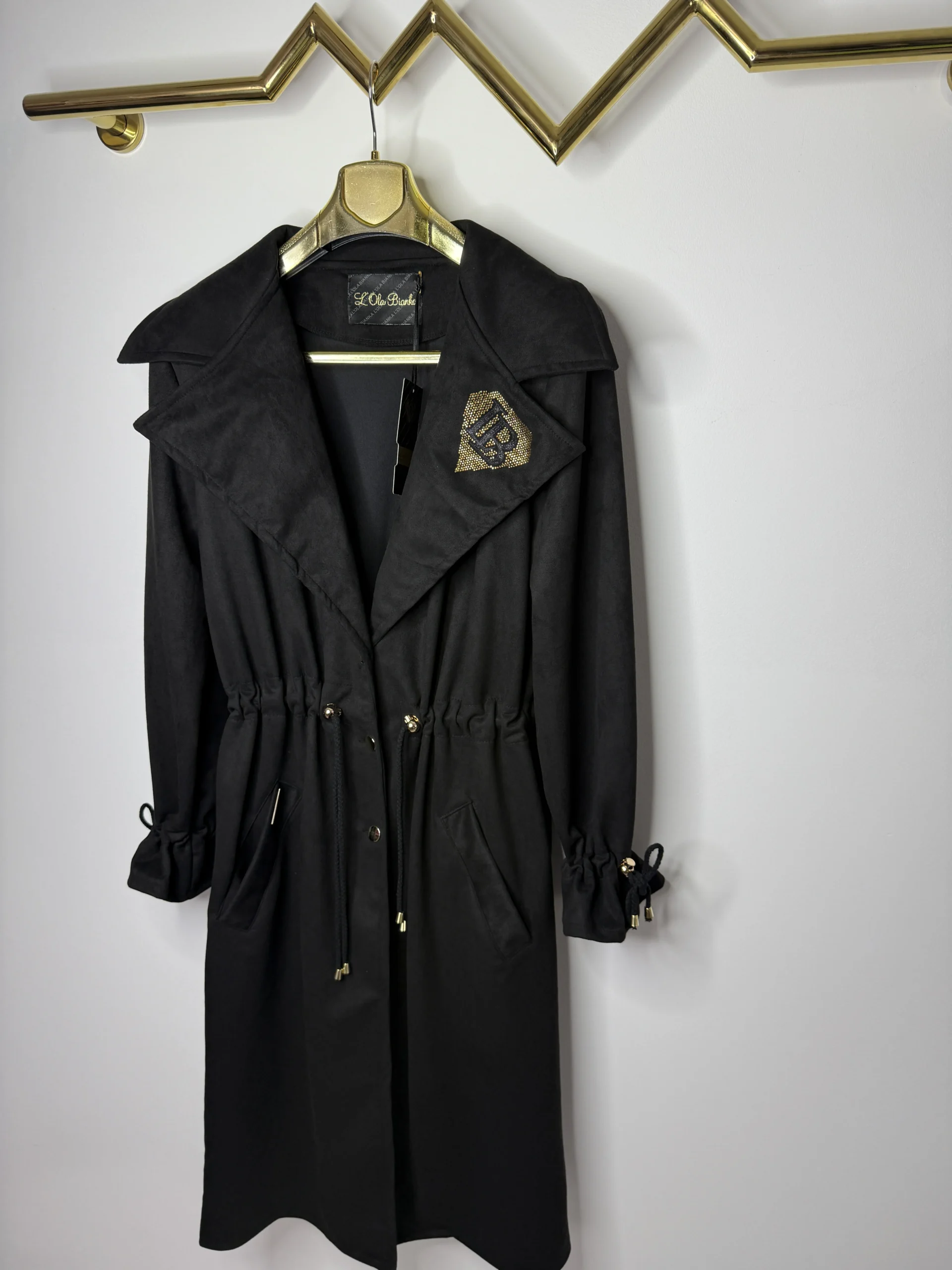 Płaszcz damski LOLA BIANKA w kolorze czarnym to propozycja dla kobiet, które cenią elegancję w nowoczesnym wydaniu. Model wykonany z miękkiego materiału zamszowego wygląda luksusowo i sprawia, że każda stylizacja nabiera wyjątkowego charakteru.