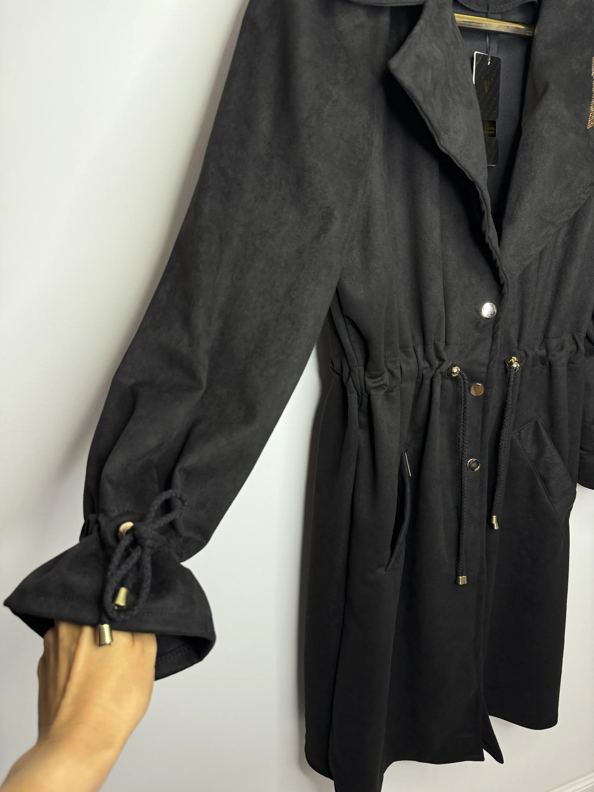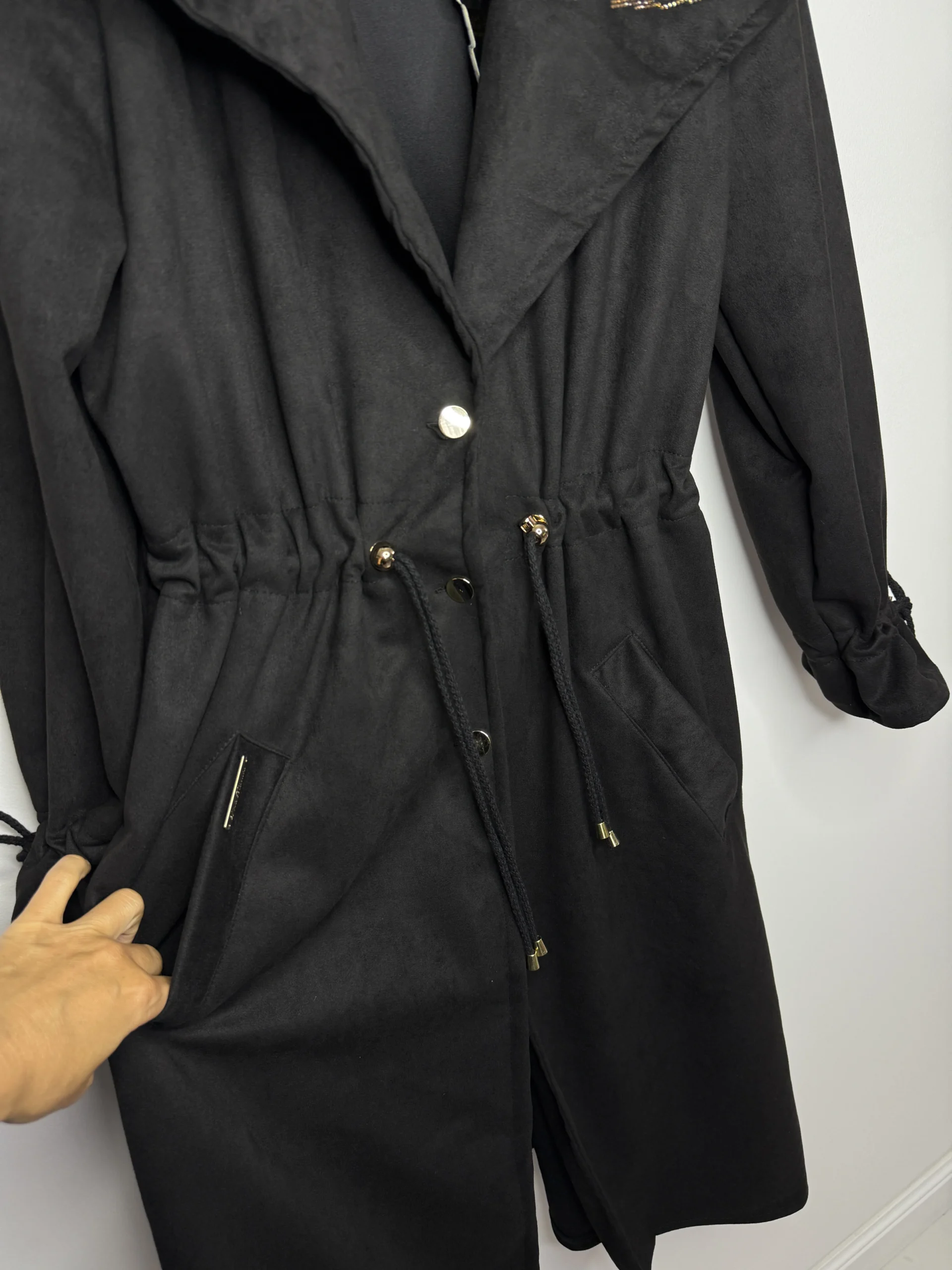 Płaszcz zamszowy Lola Bianka czarny w rozmiarze uni pasuje na M, L, przepiękny, bardzo wygodny i elegancki