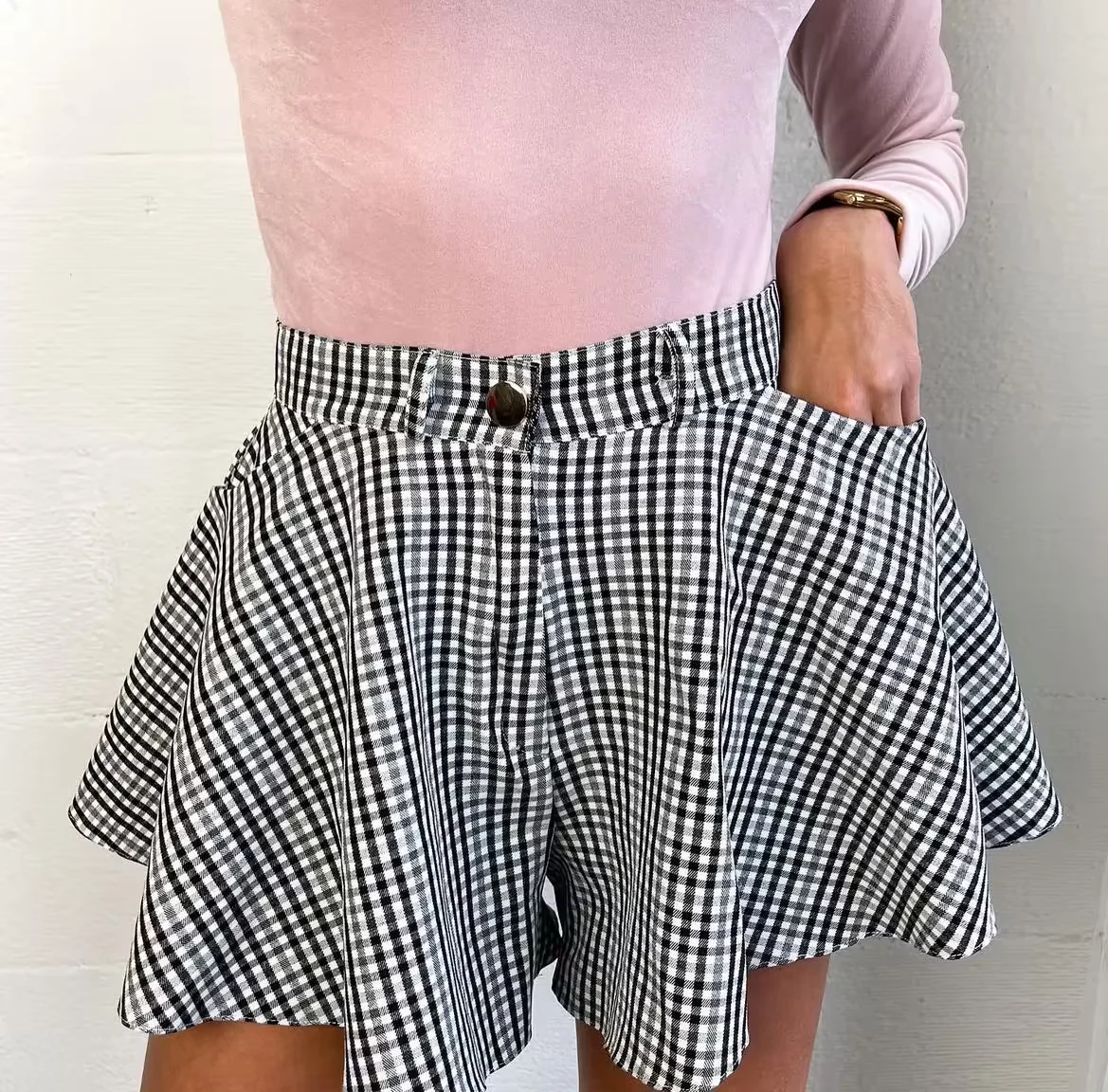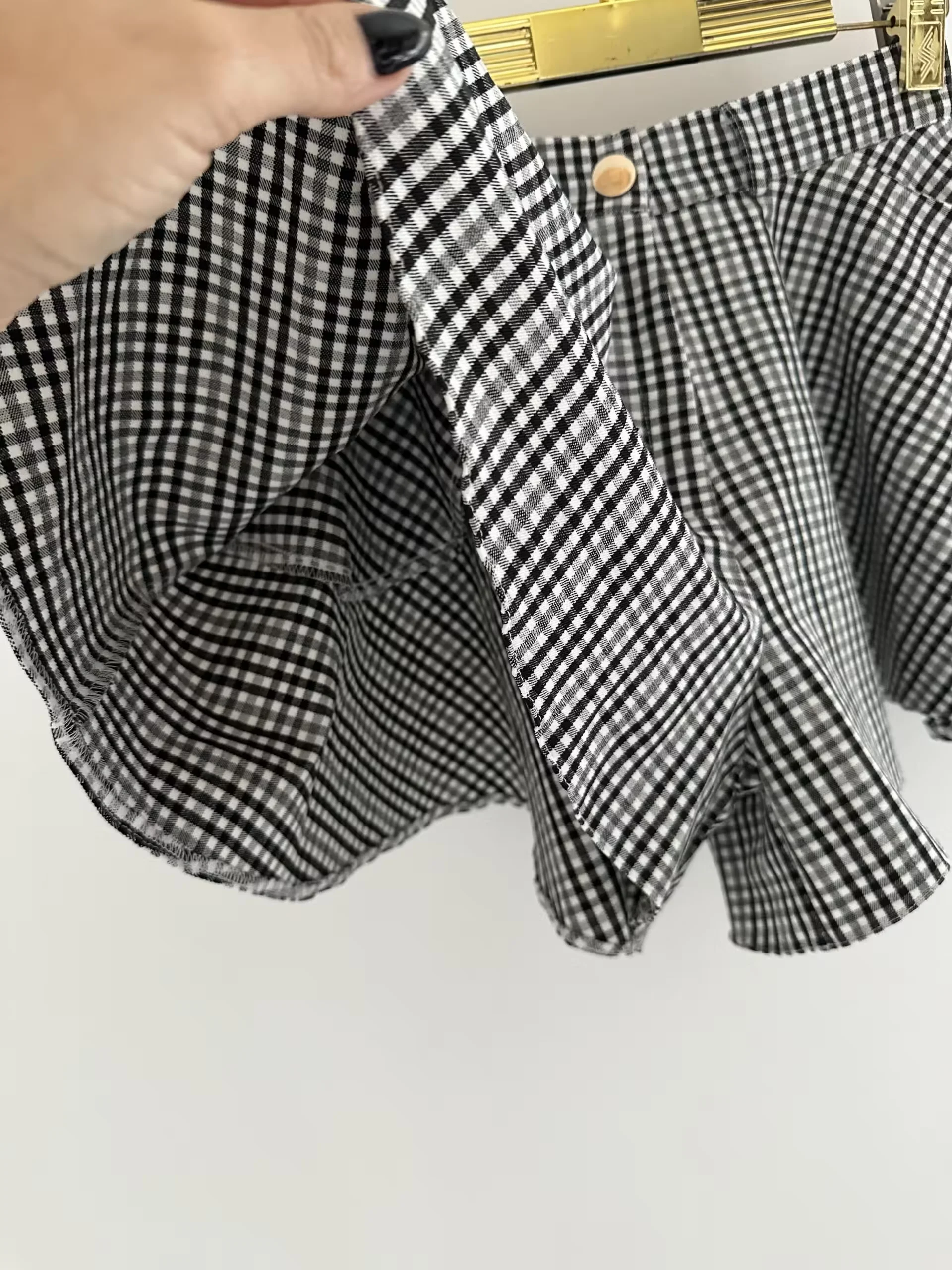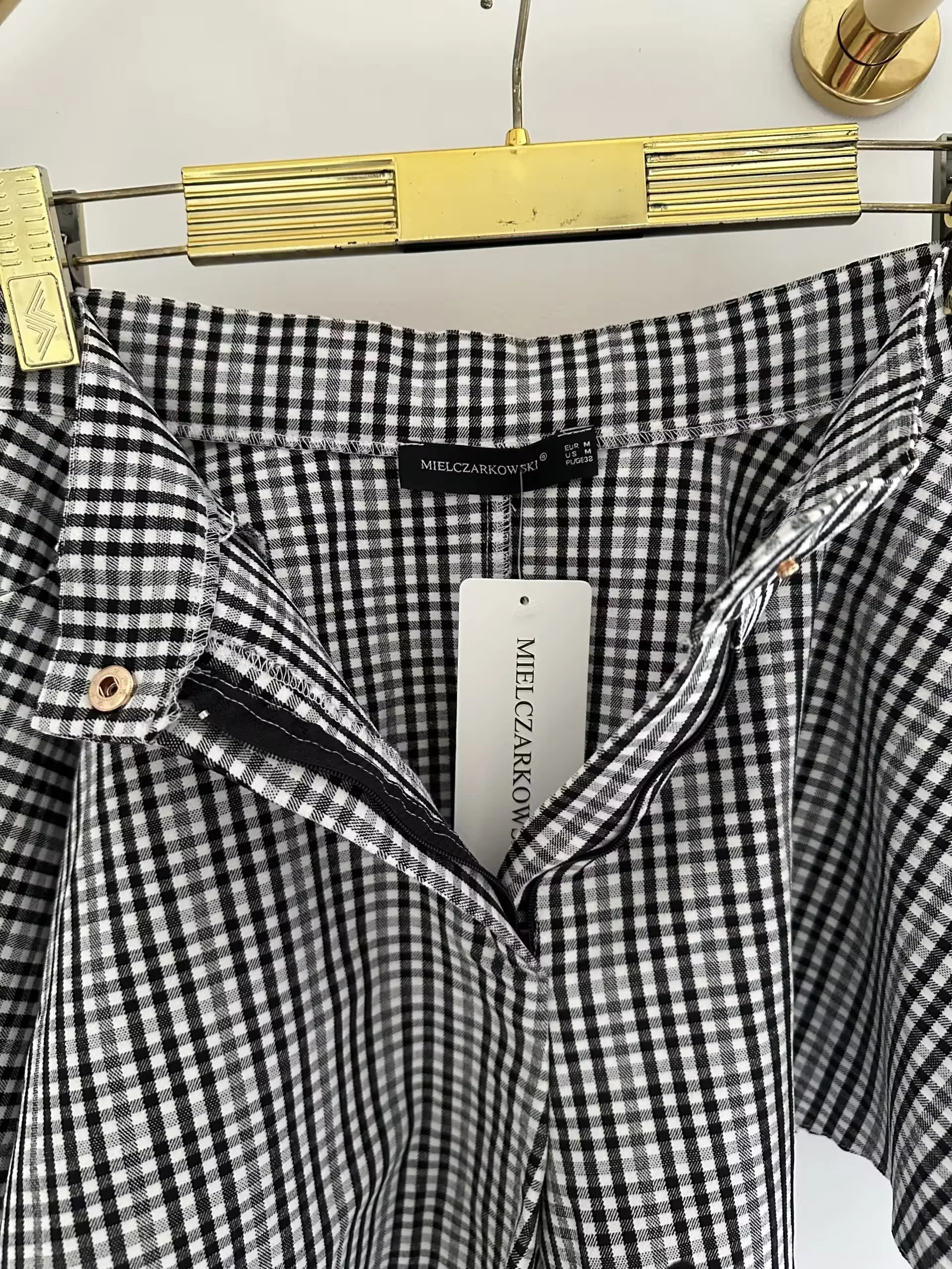 Spodenki Mielczarkowski spódnico spodenki w kratkę zapinane na zameczek i zatrzask, po bokach kieszonki Przepiękny elegancki model zarówno do sneakersów jak i do szpilek ROZMIAR…