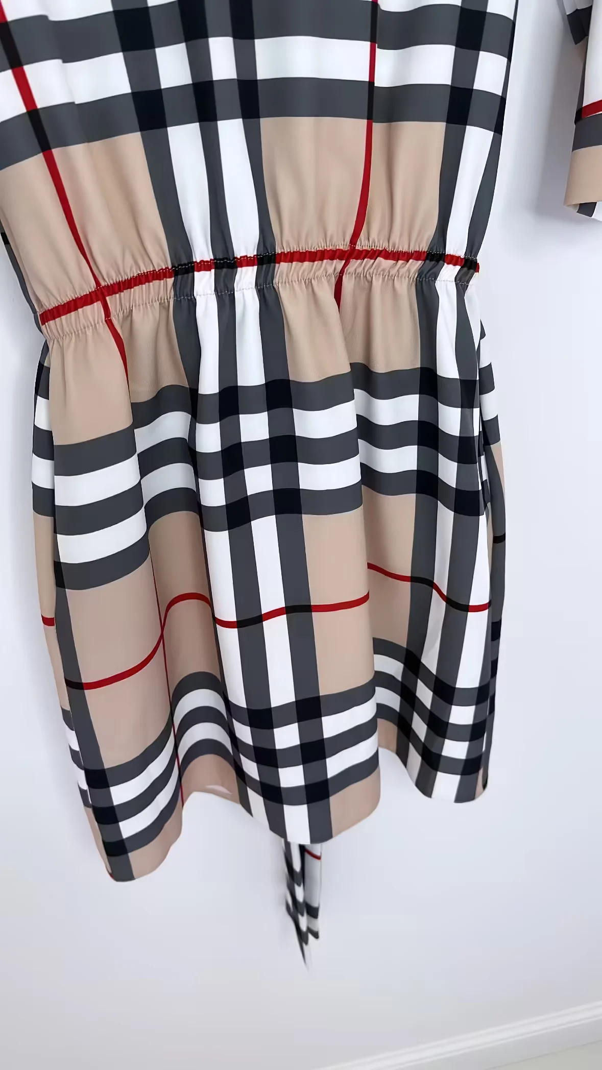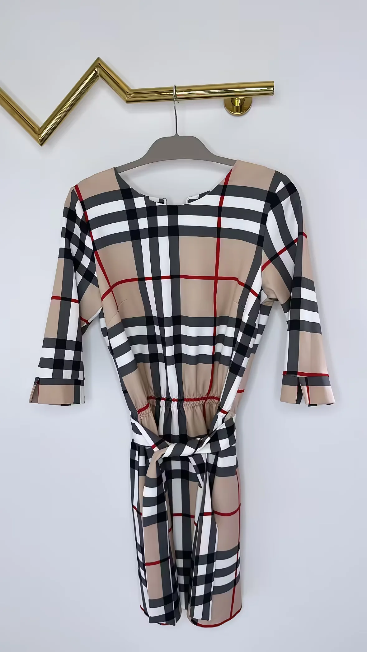 zapinana na zamek, rękawek 3/4, w pasie gumka, pasek połączony z sukienką, po bokach kieszonki