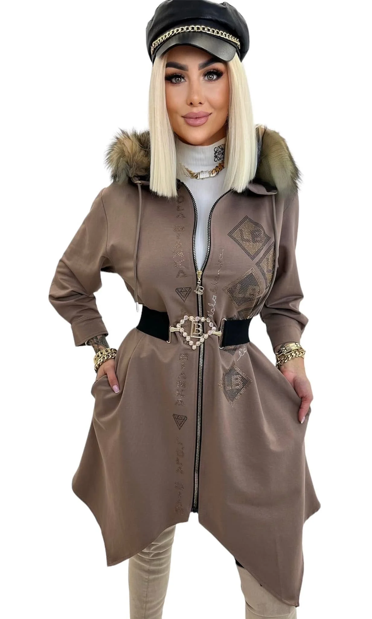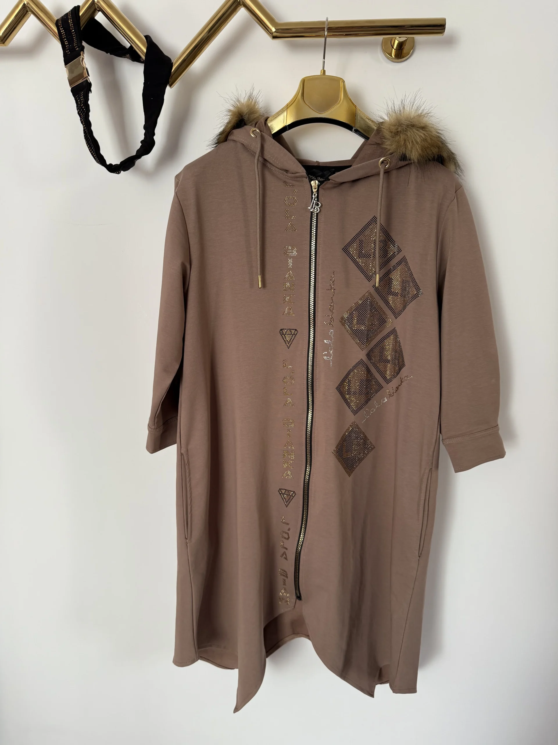 Po całości rozpinana na zameczek, kapturek z futerkiem nie odpinanym
