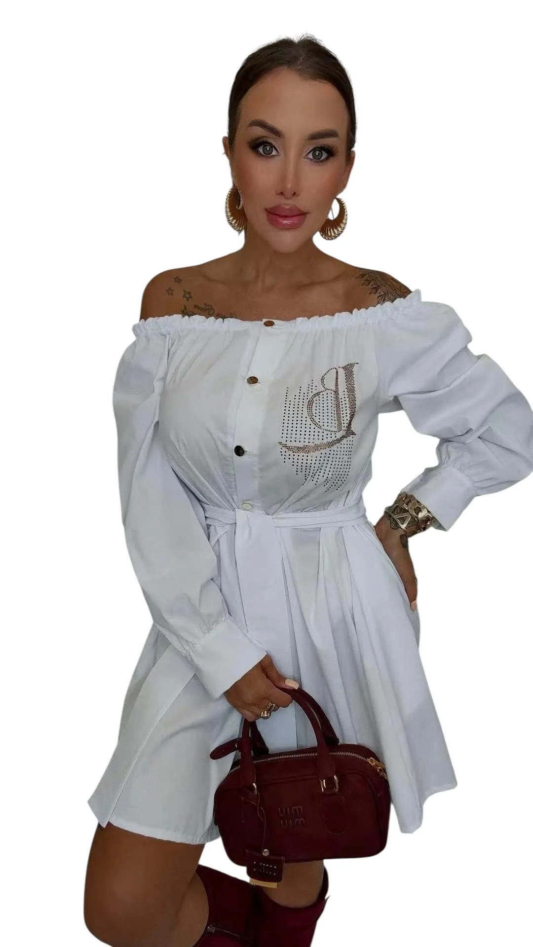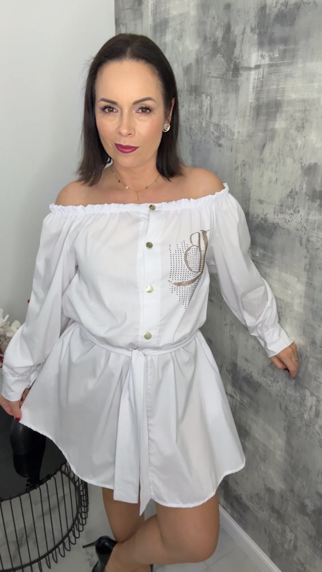 Sukienka Lola Bianka biała koszulowa z paskiem