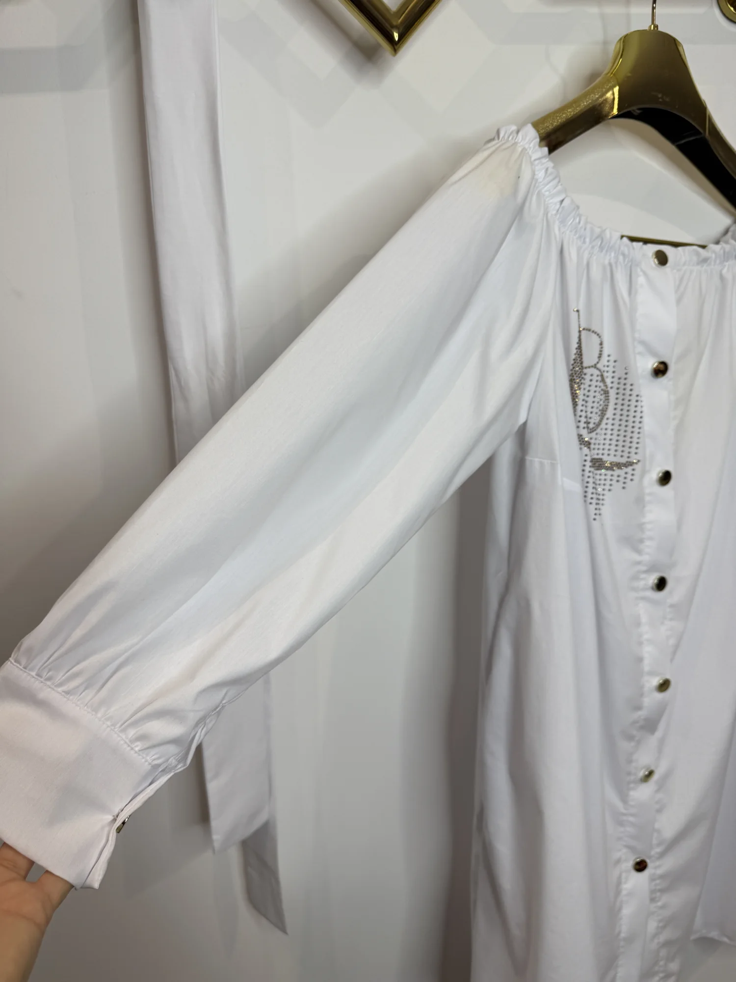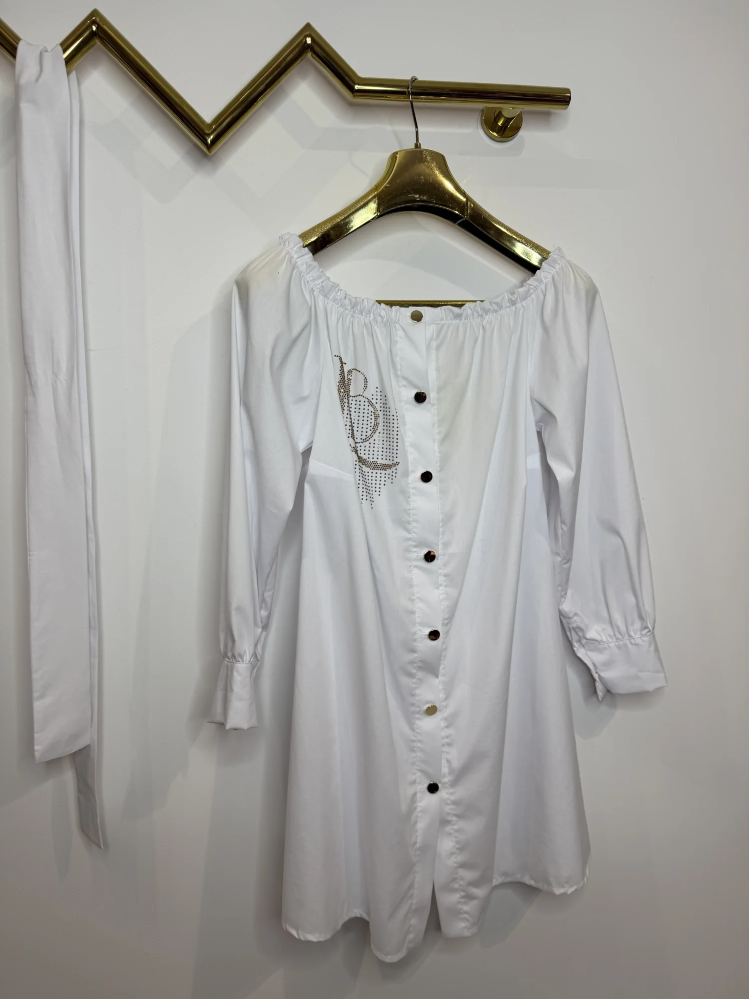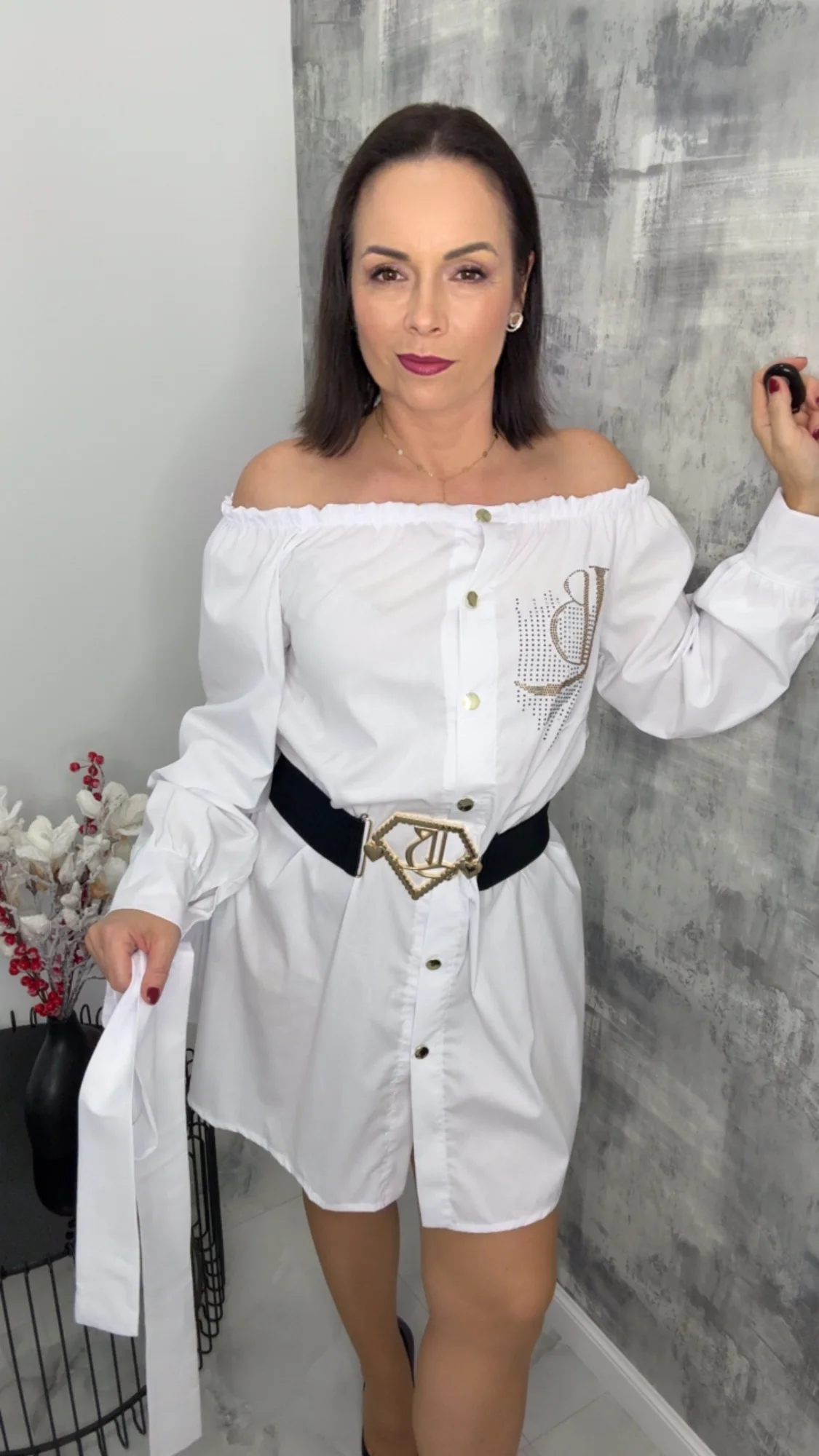 Sukienka Lola Bianka biała koszulowa z paskiem SALE