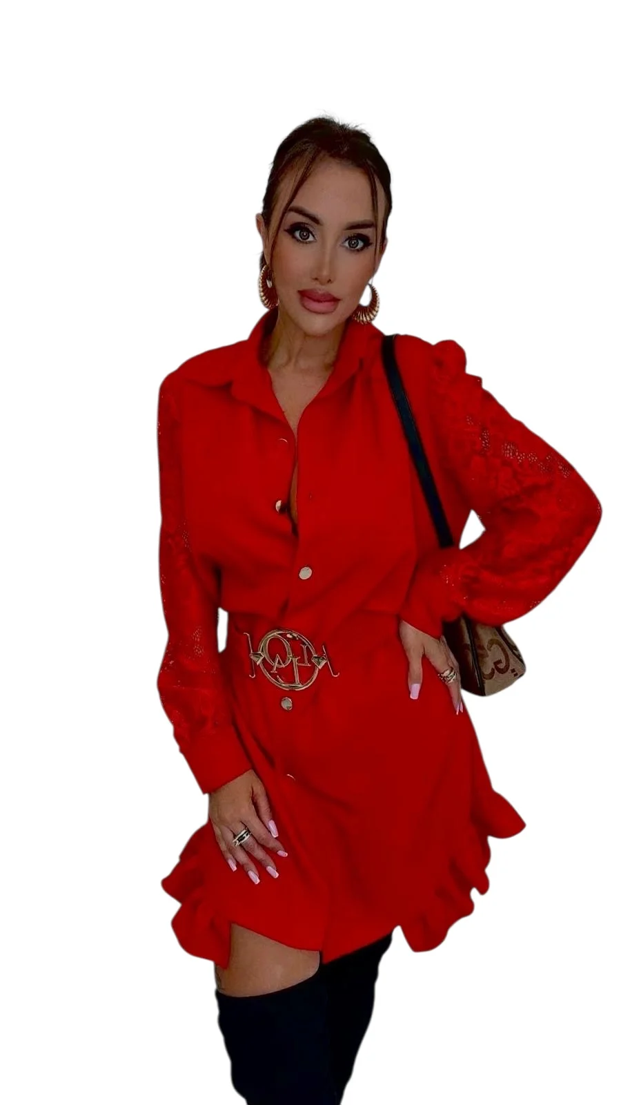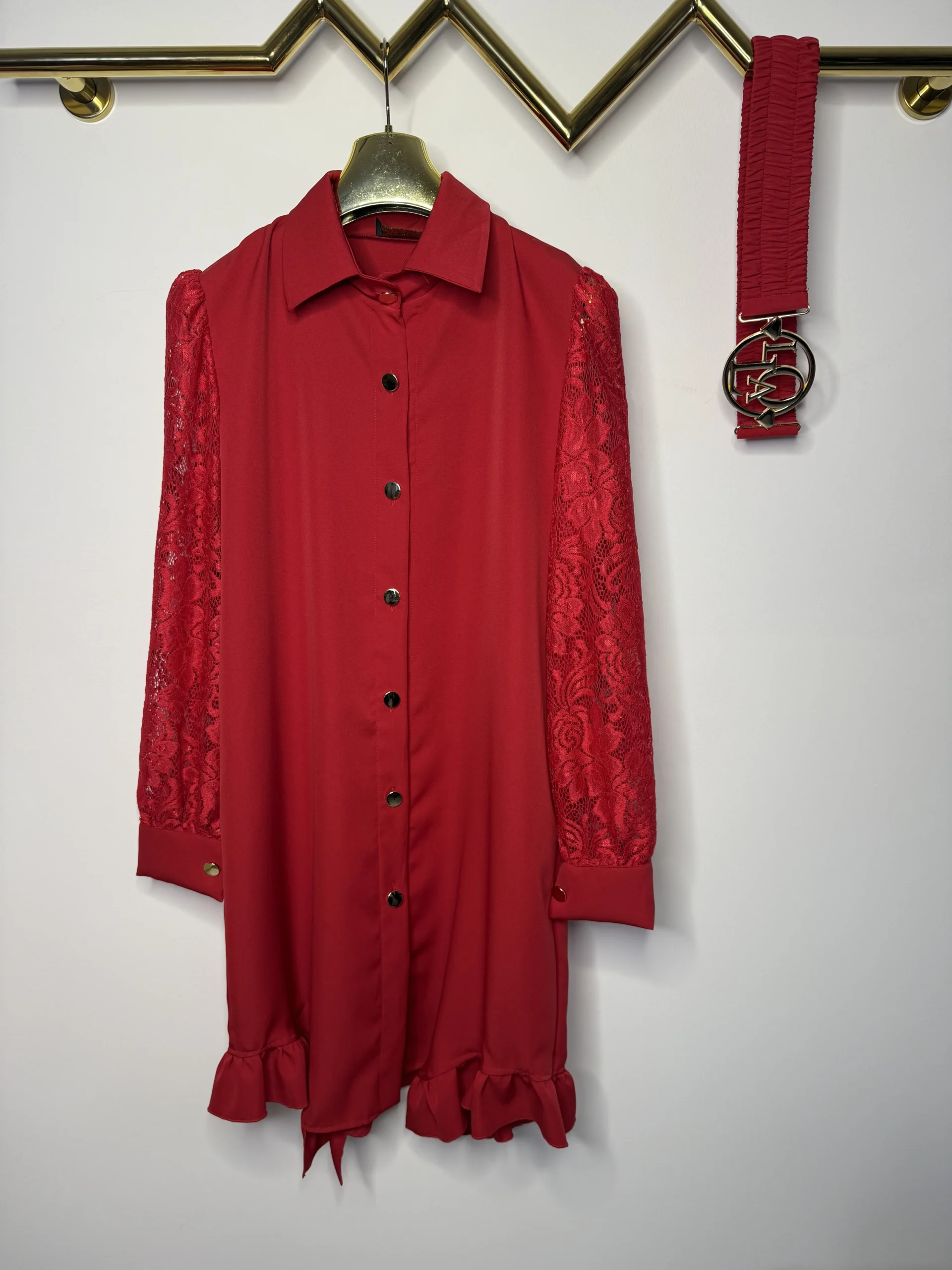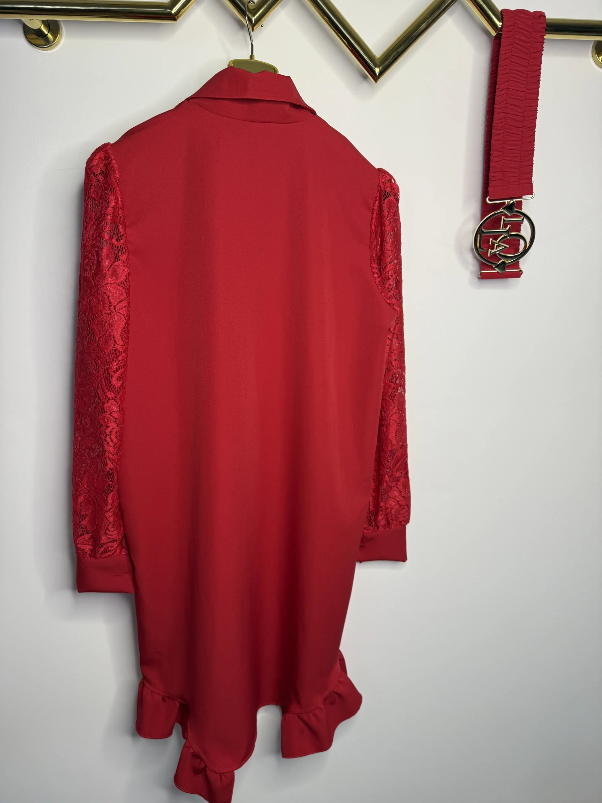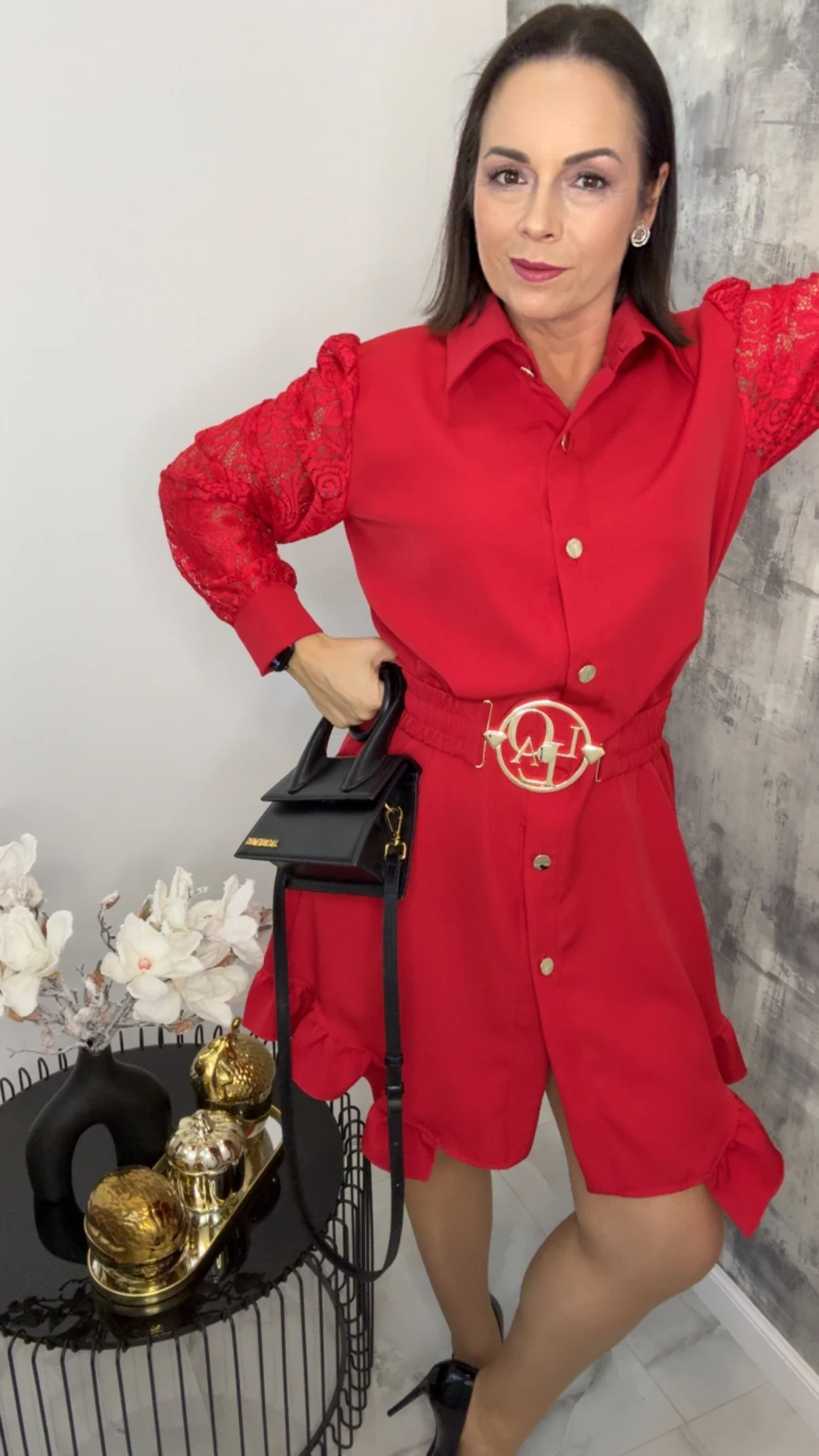 Sukienka Lola Bianka czerwona z koronką w rozmiarze uniwersalnym w zestawie z pięknym paskiem