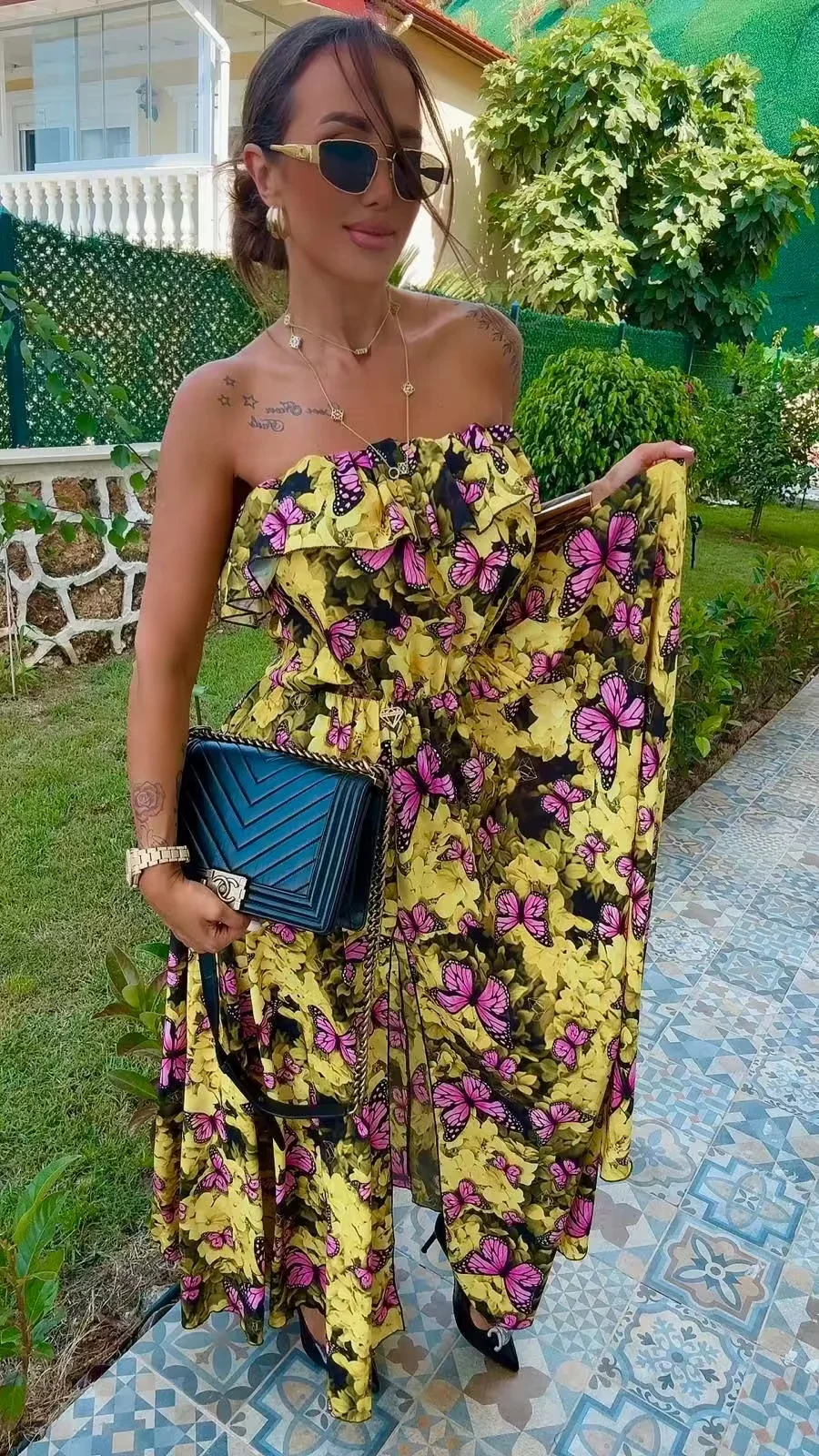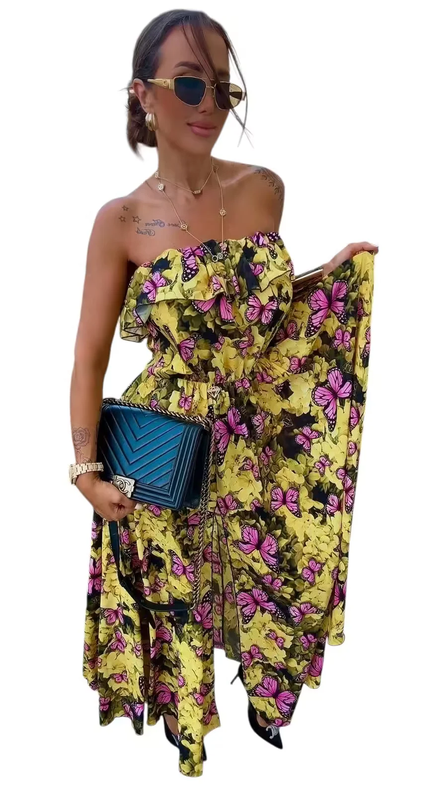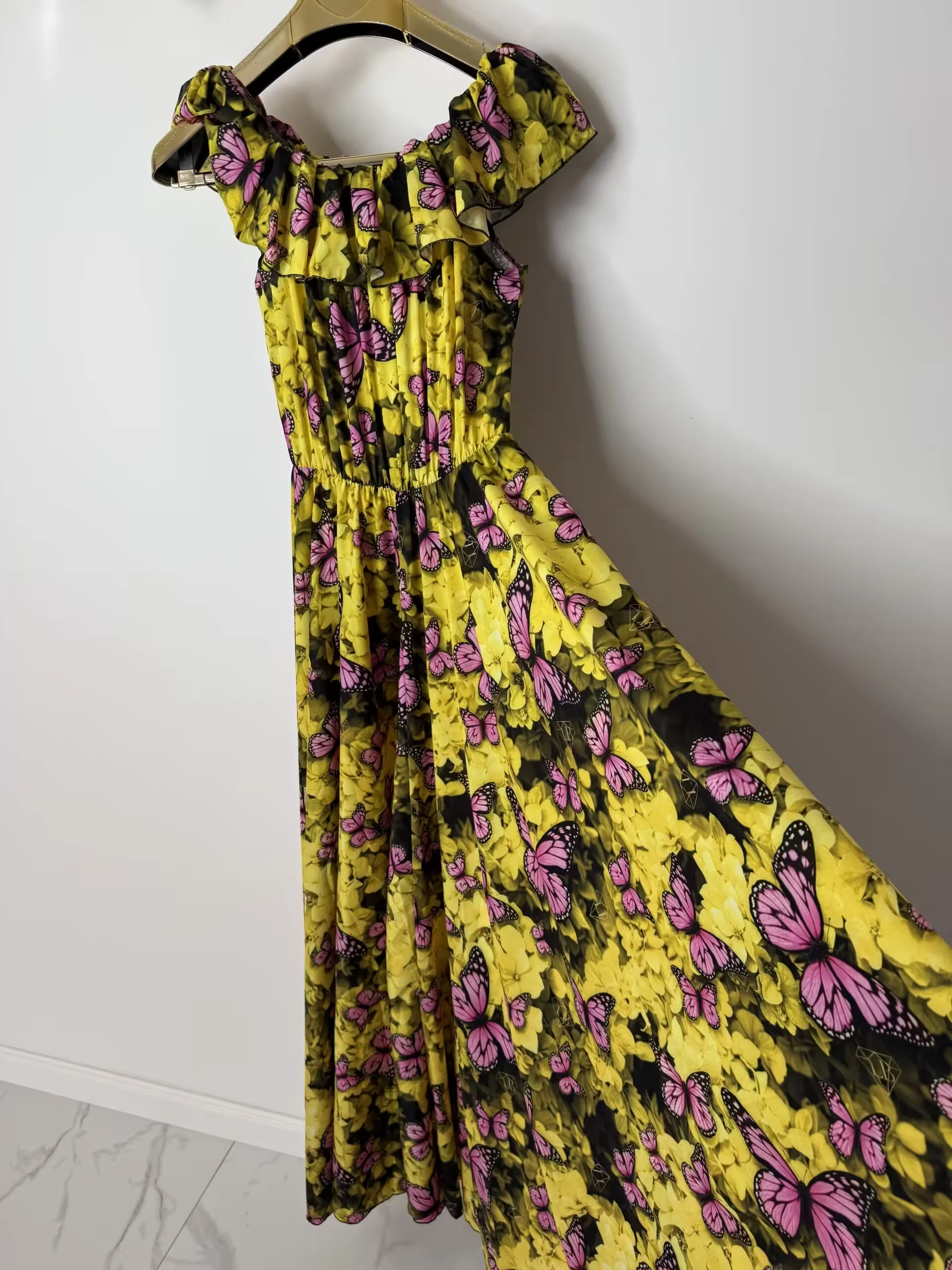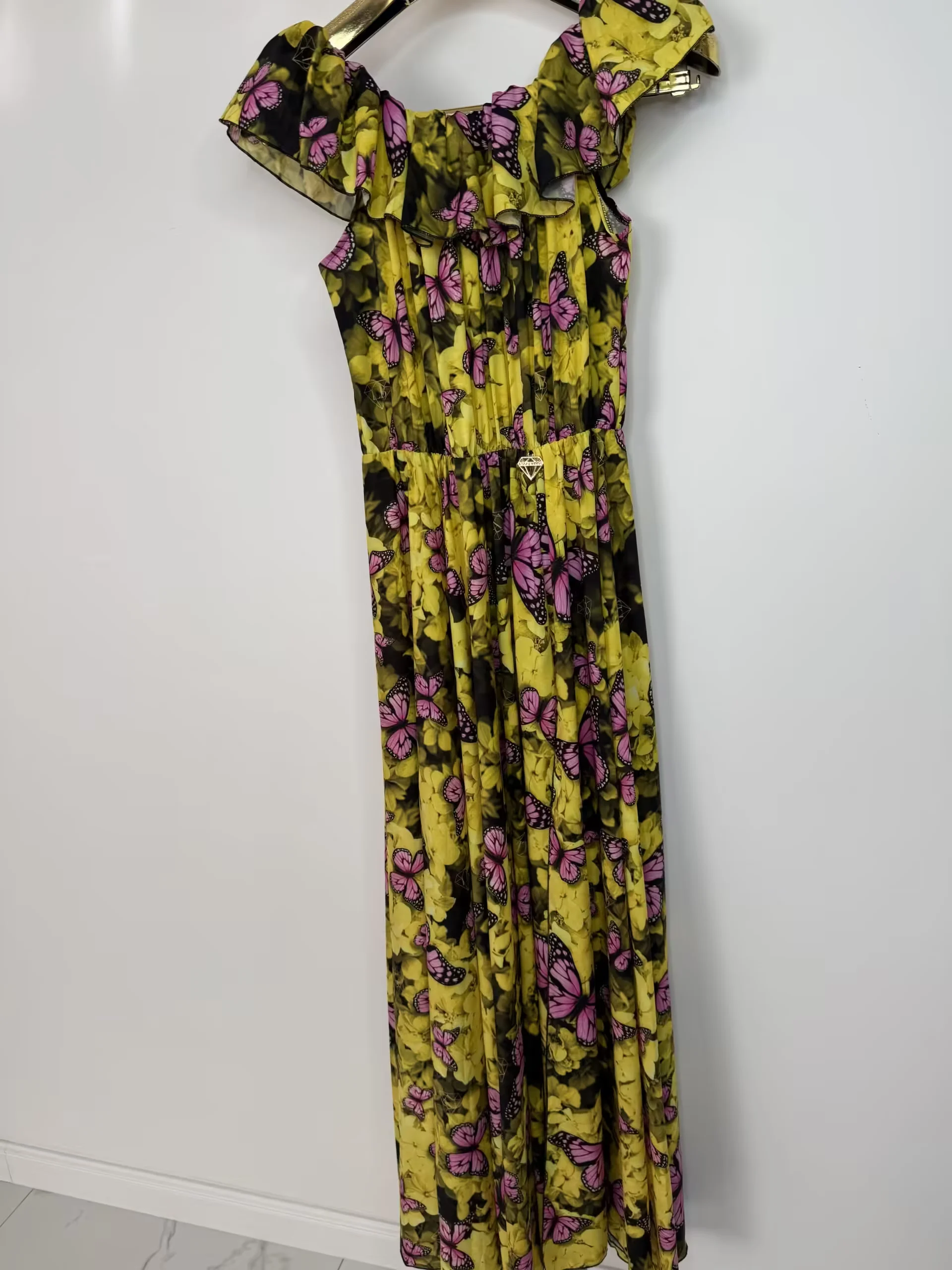Przepiękny model letniej długiej sukienki, cudny print, w pasie gumeczka