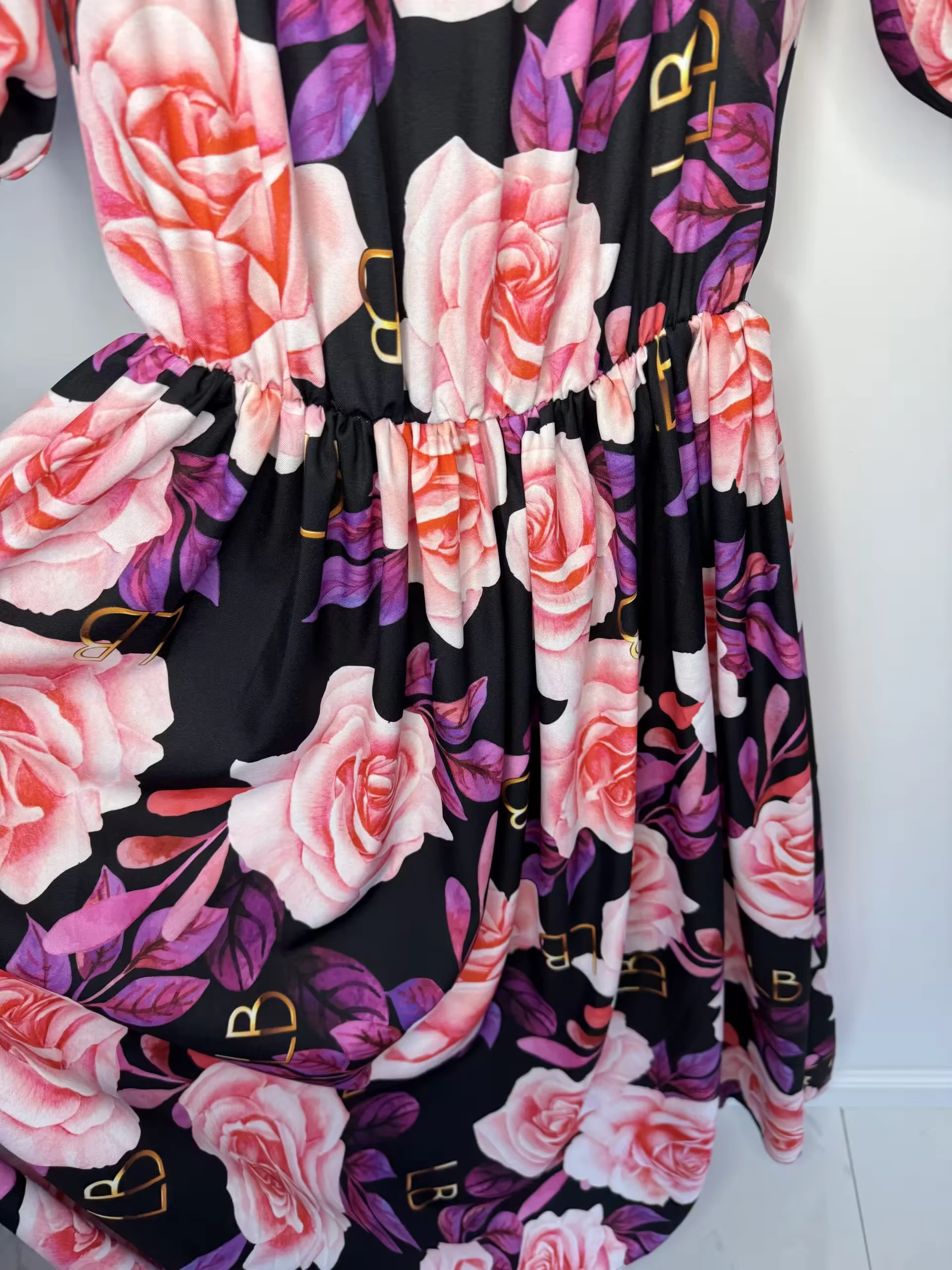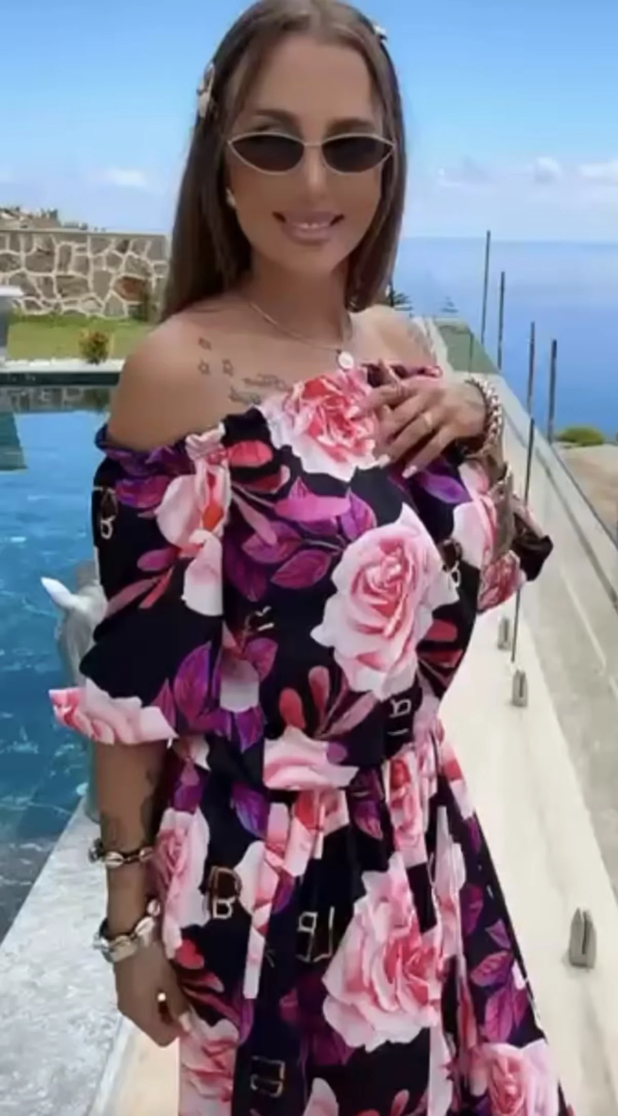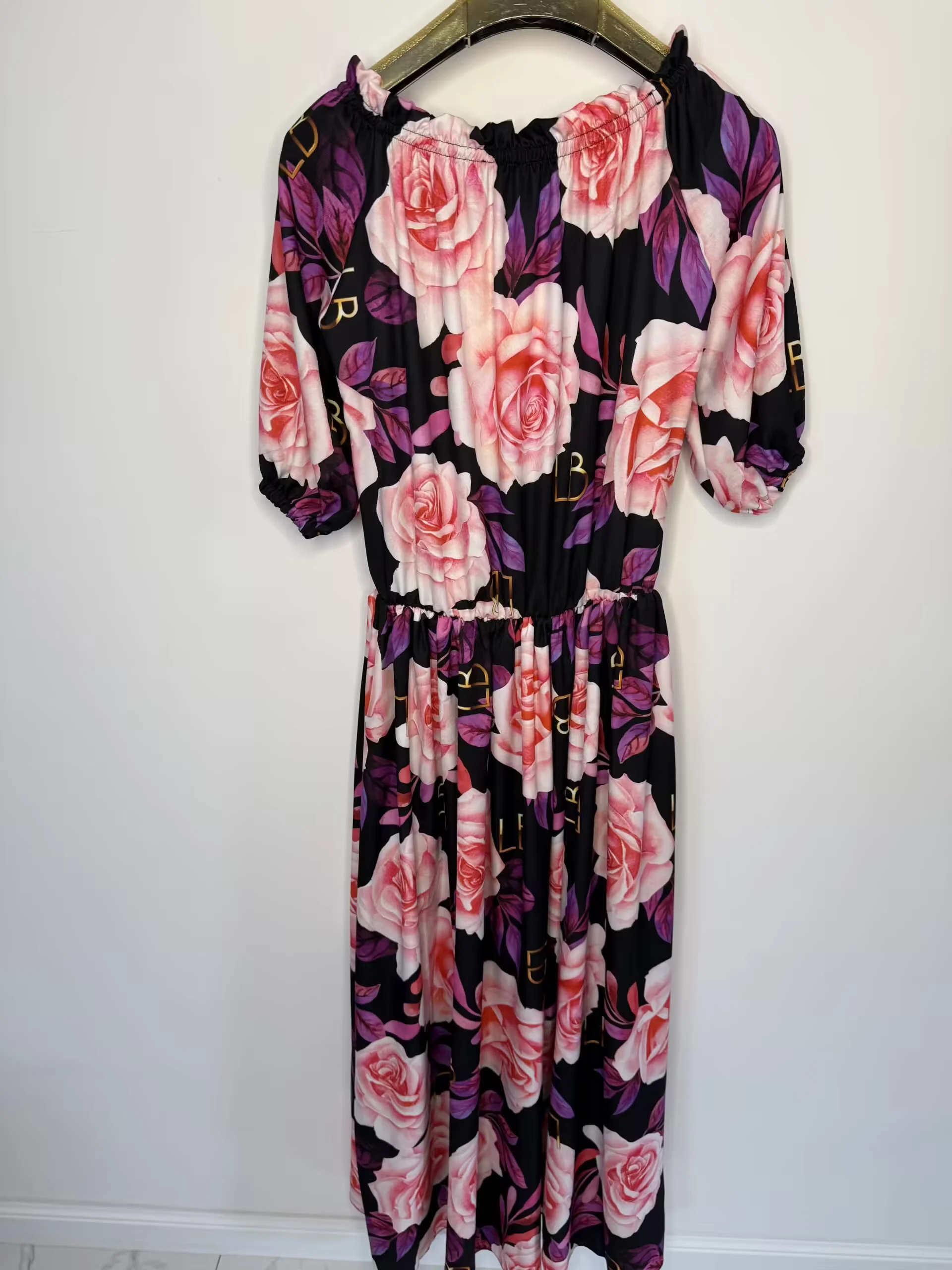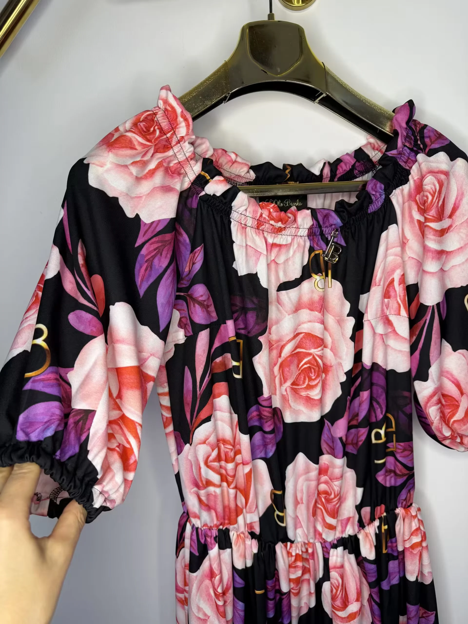 bardzo wygodny model długiej sukienki, piękny print, rekawek krótki, w pasie gumeczka