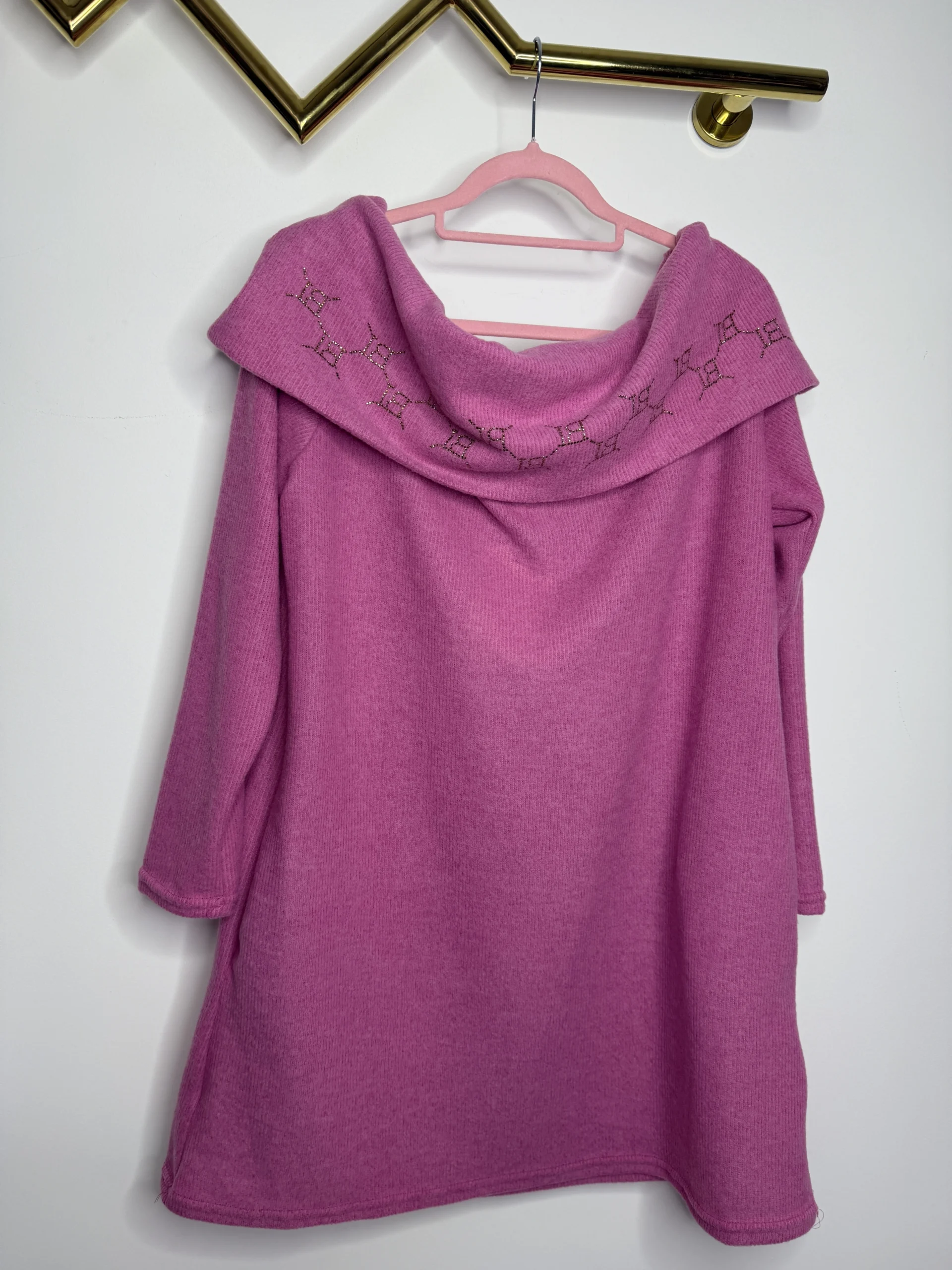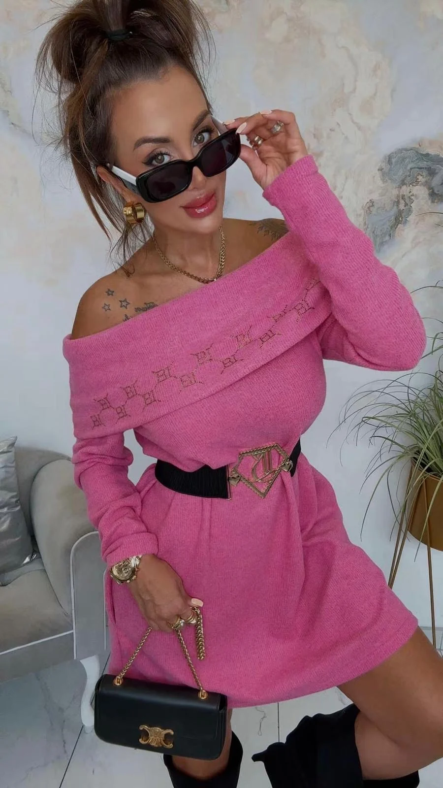 Sukienka Lola Bianka dzianinowa w różowym kolorze, w rozmiarze uniwersalnym, pasującym na M i L