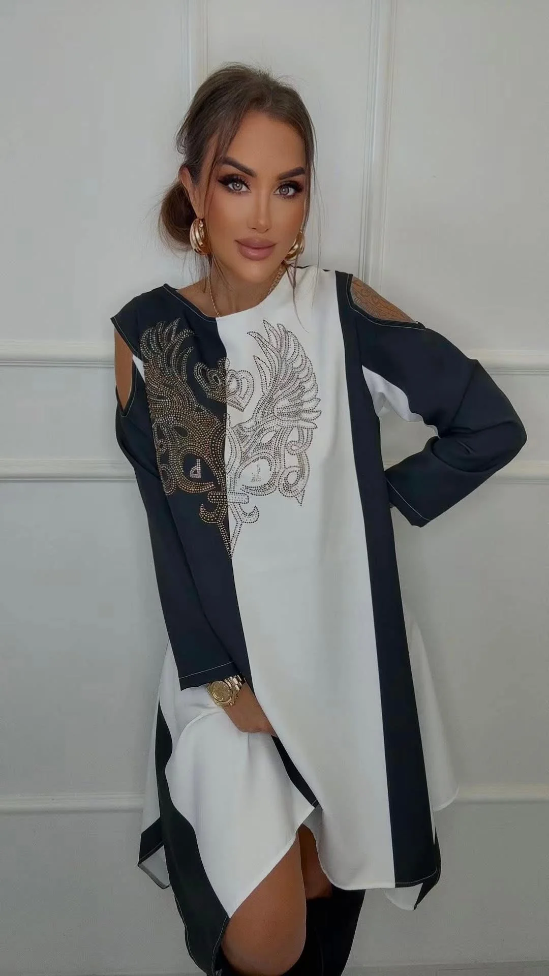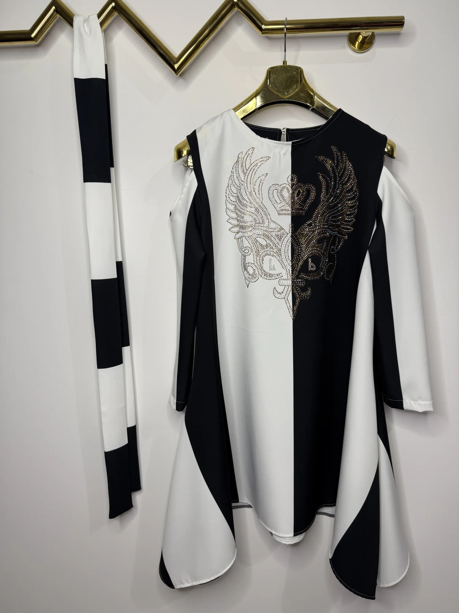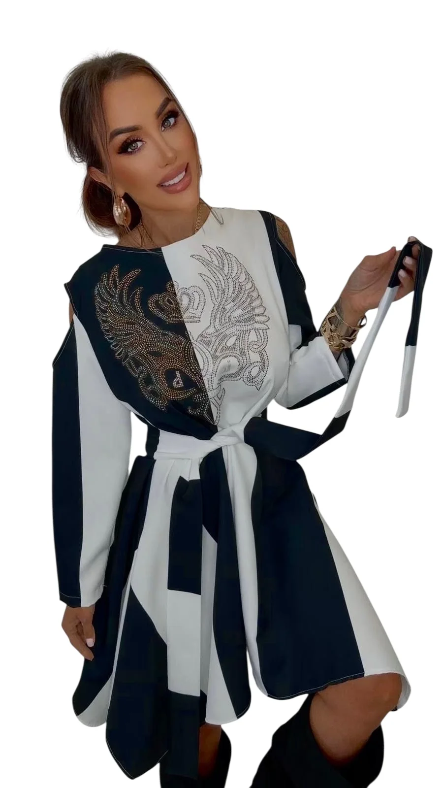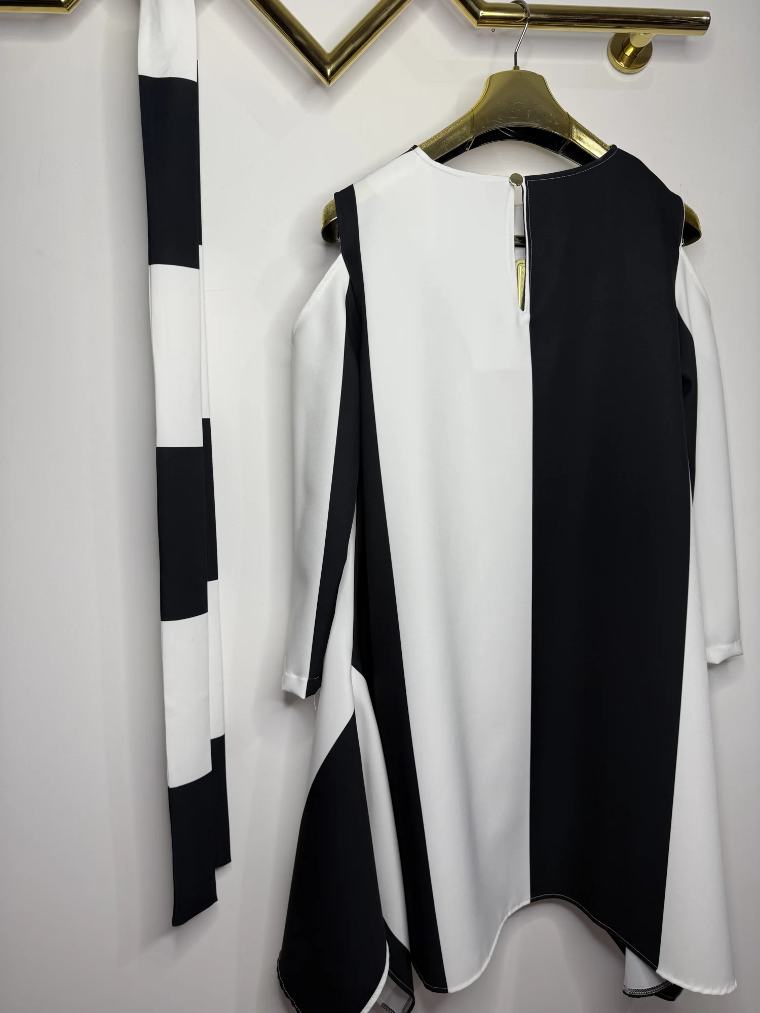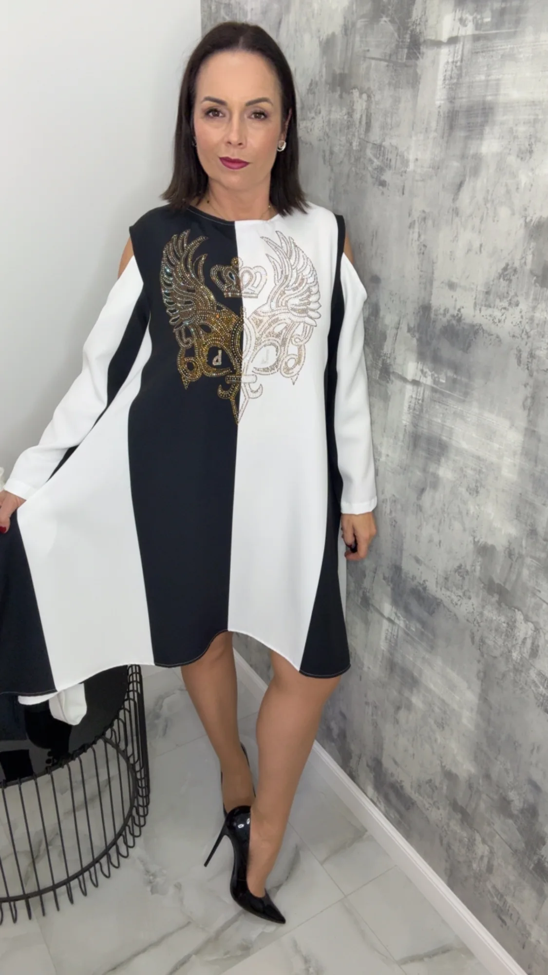 Sukienka Lola Bianka klasyczna wizytowa, czarno biała w rozmiarze uniwersalnym pasuje na M i L