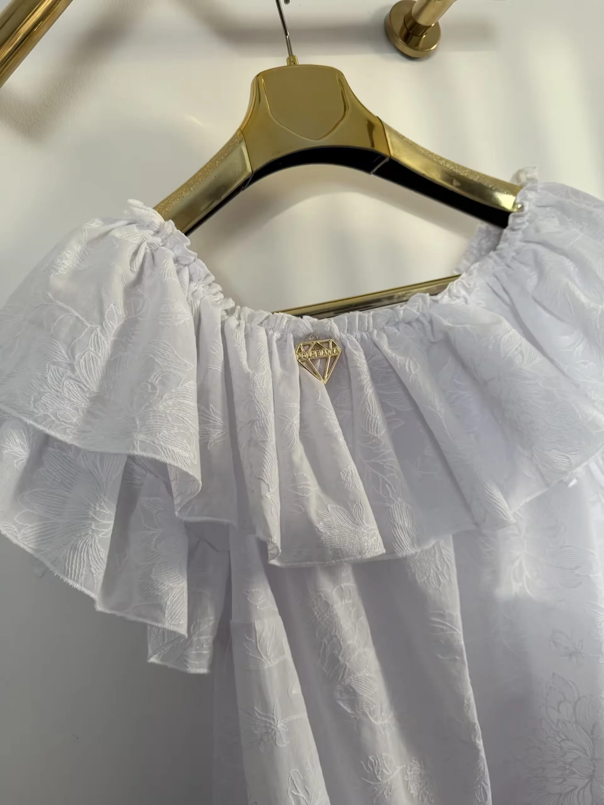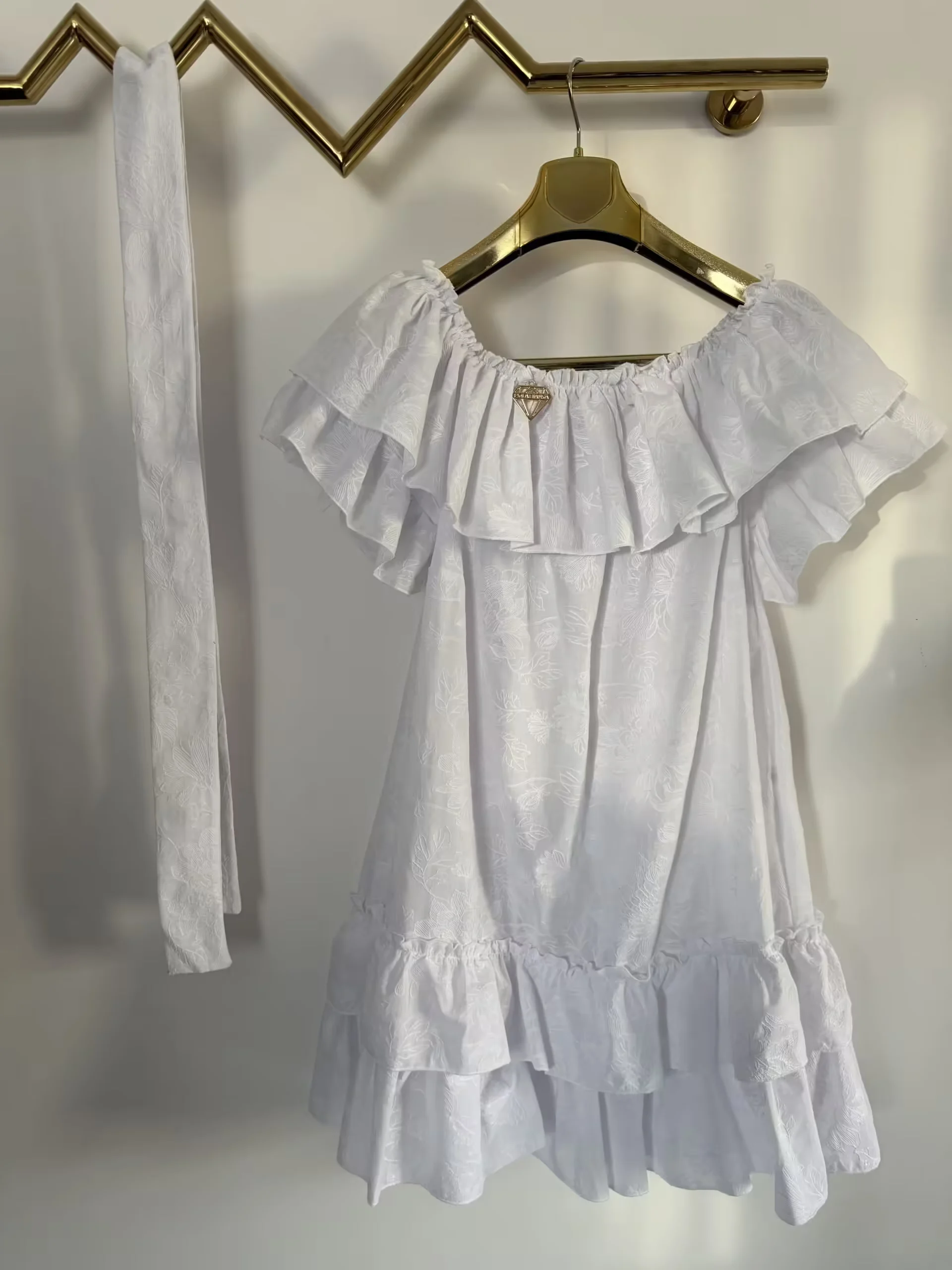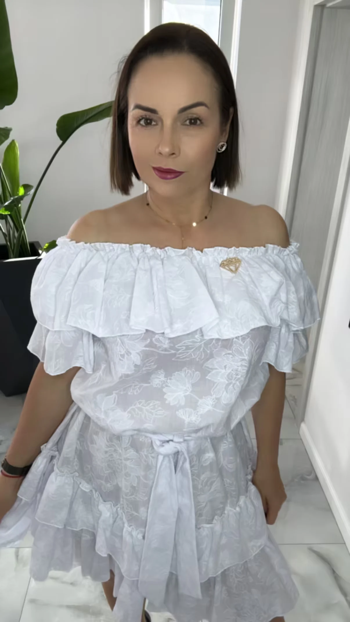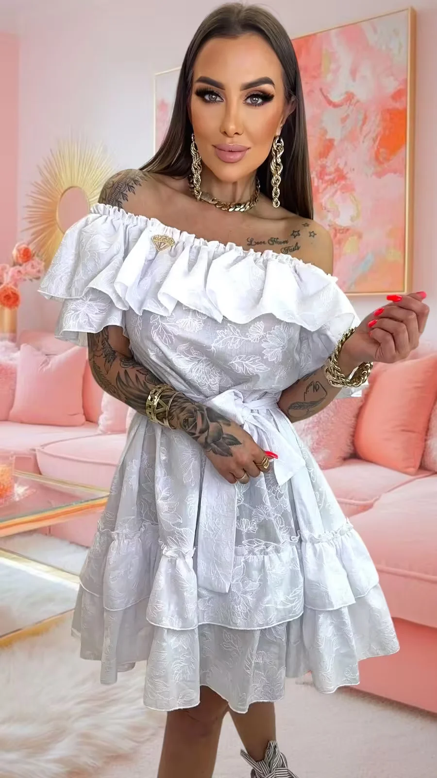 Sukienka Lola Bianka hiszpanka letnia biała z paskiem z materiału, materiał przewiewny idealny na gorące dni