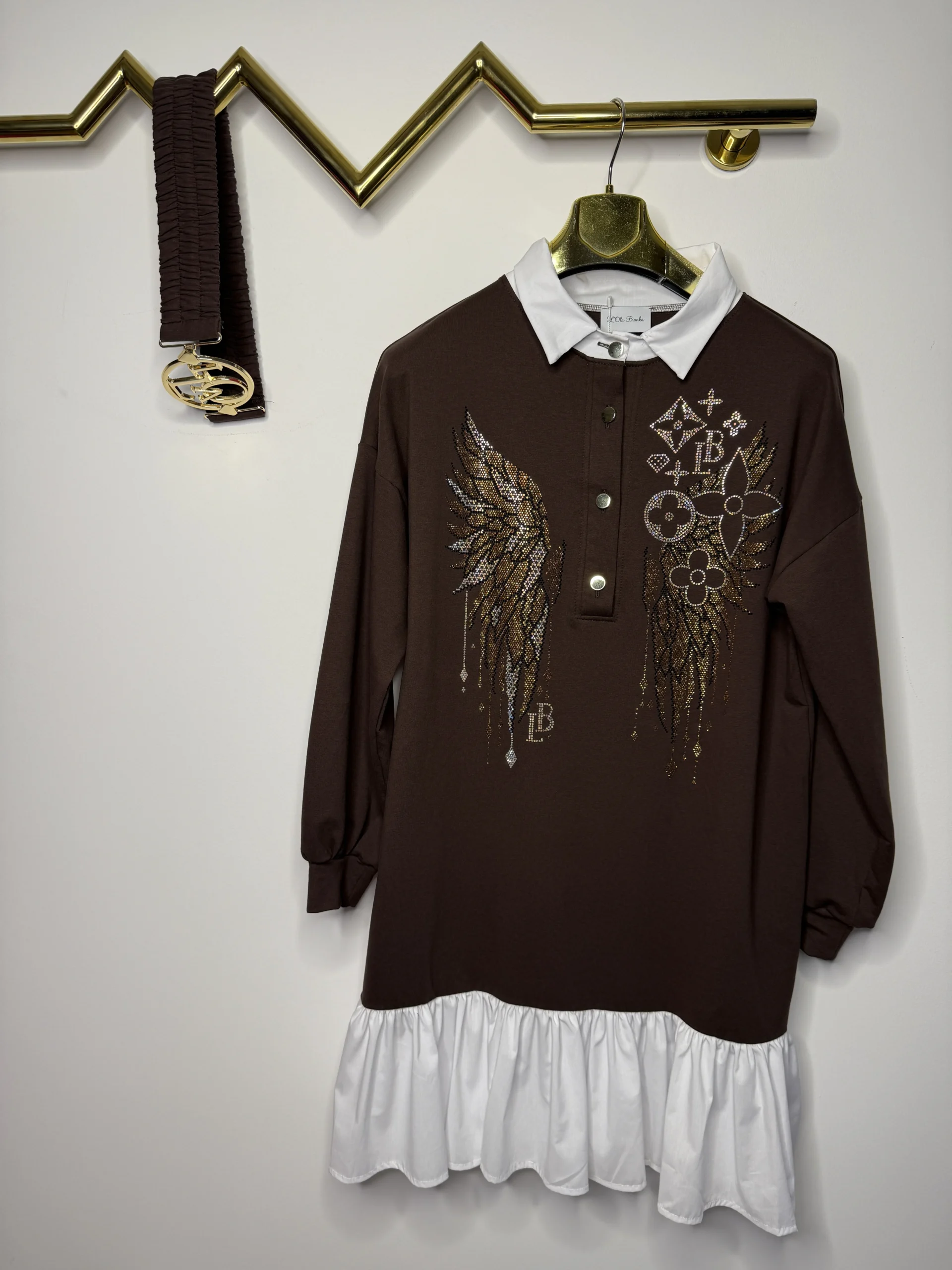 Sukienka Lola Bianka koszulowa brązowa w rozmiarze uniwersalnym pasującym na SML