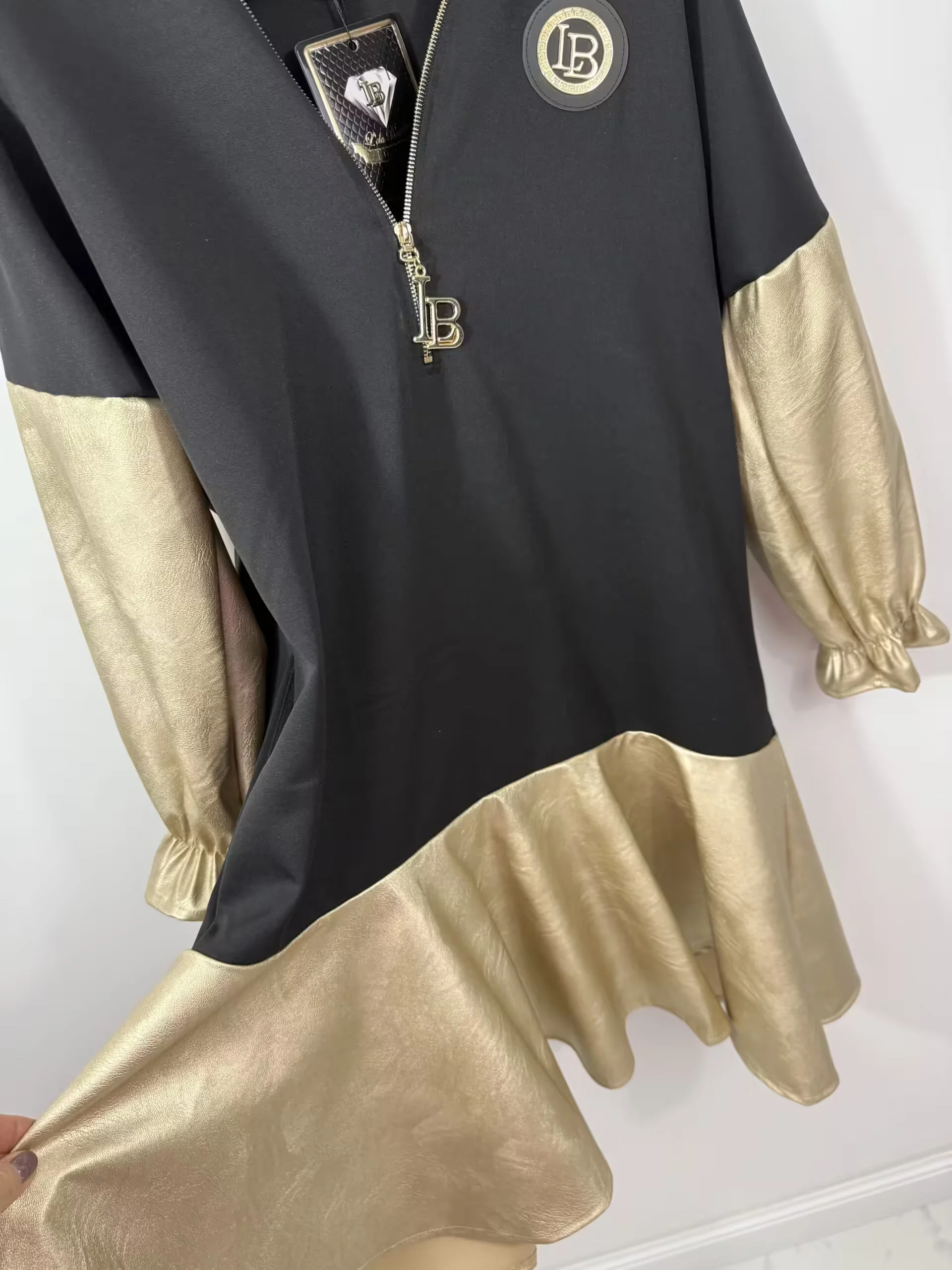 Sukienka Lola Bianka sukienka złota z ekoskórki