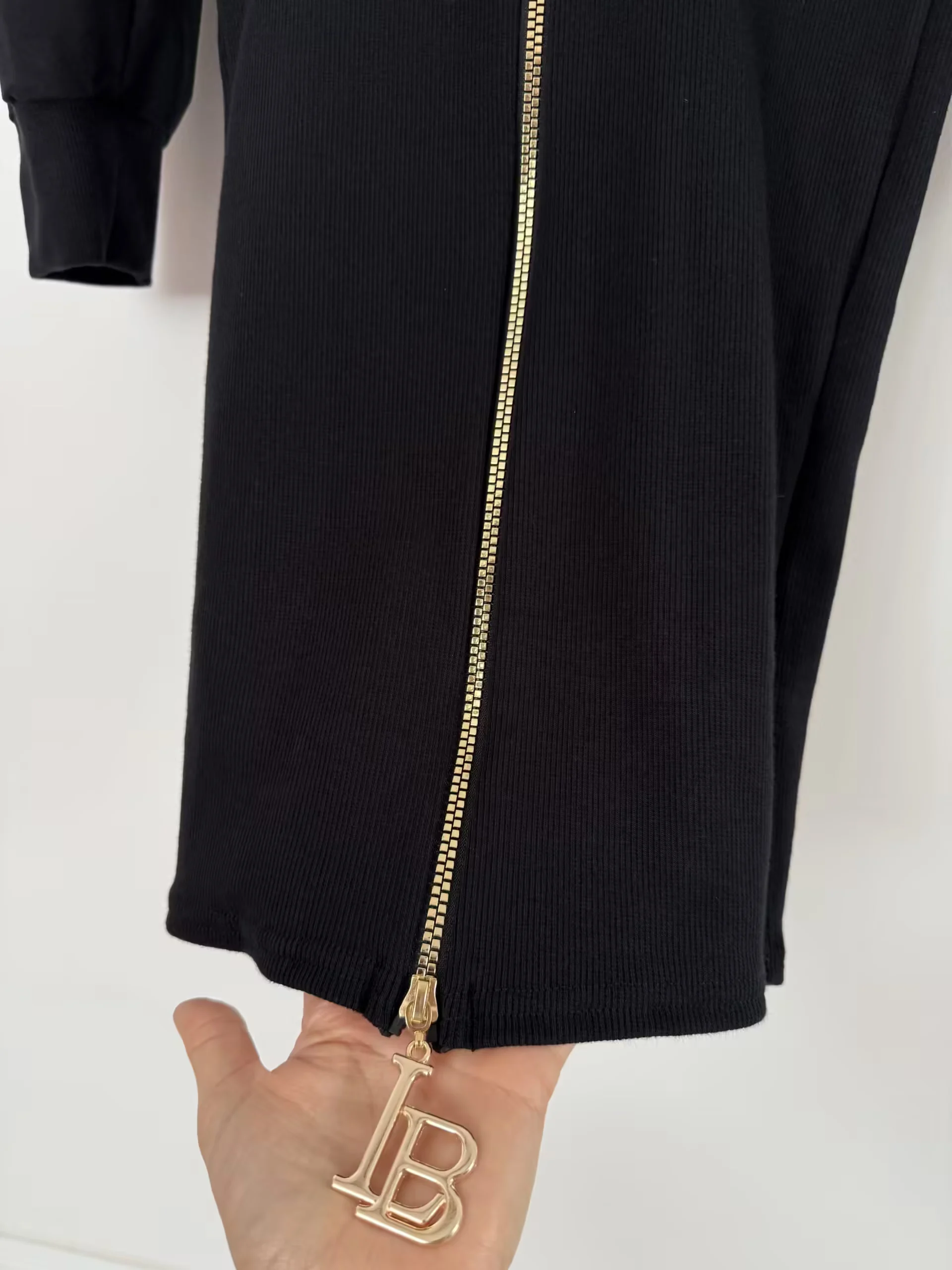 Sukienka Lola Bianka tunika dresowa czarna skrzydła w rozmiarze uniwersalnym pasuje na SML, na przodzie nadruk skrzydeł, dół rozpinany, rękawek długi
