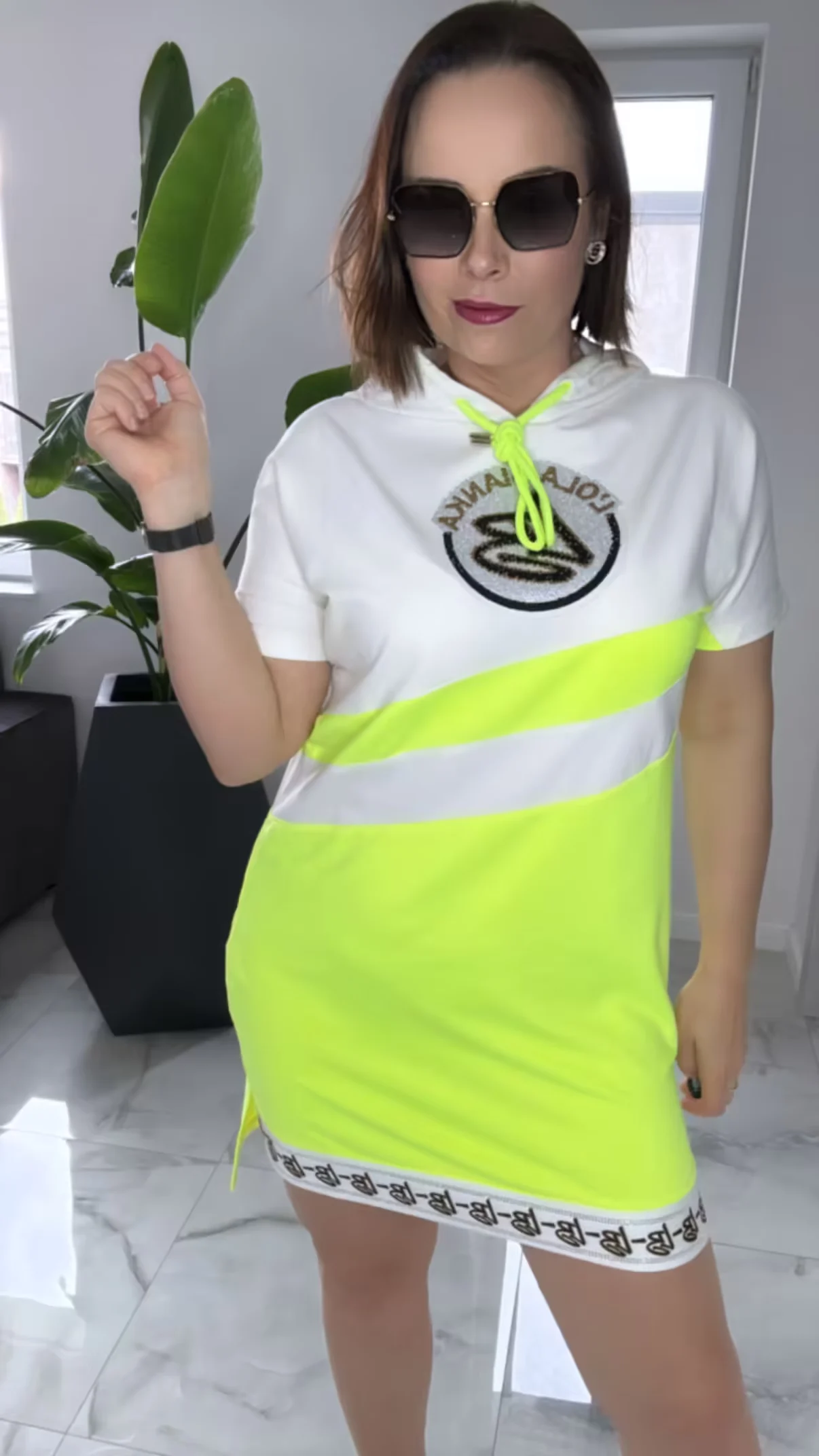 Sukienka Lola Bianka tunika letnia dresowa neonowa w śmietankowej bieli to nasza wygodna propozycja do trampek