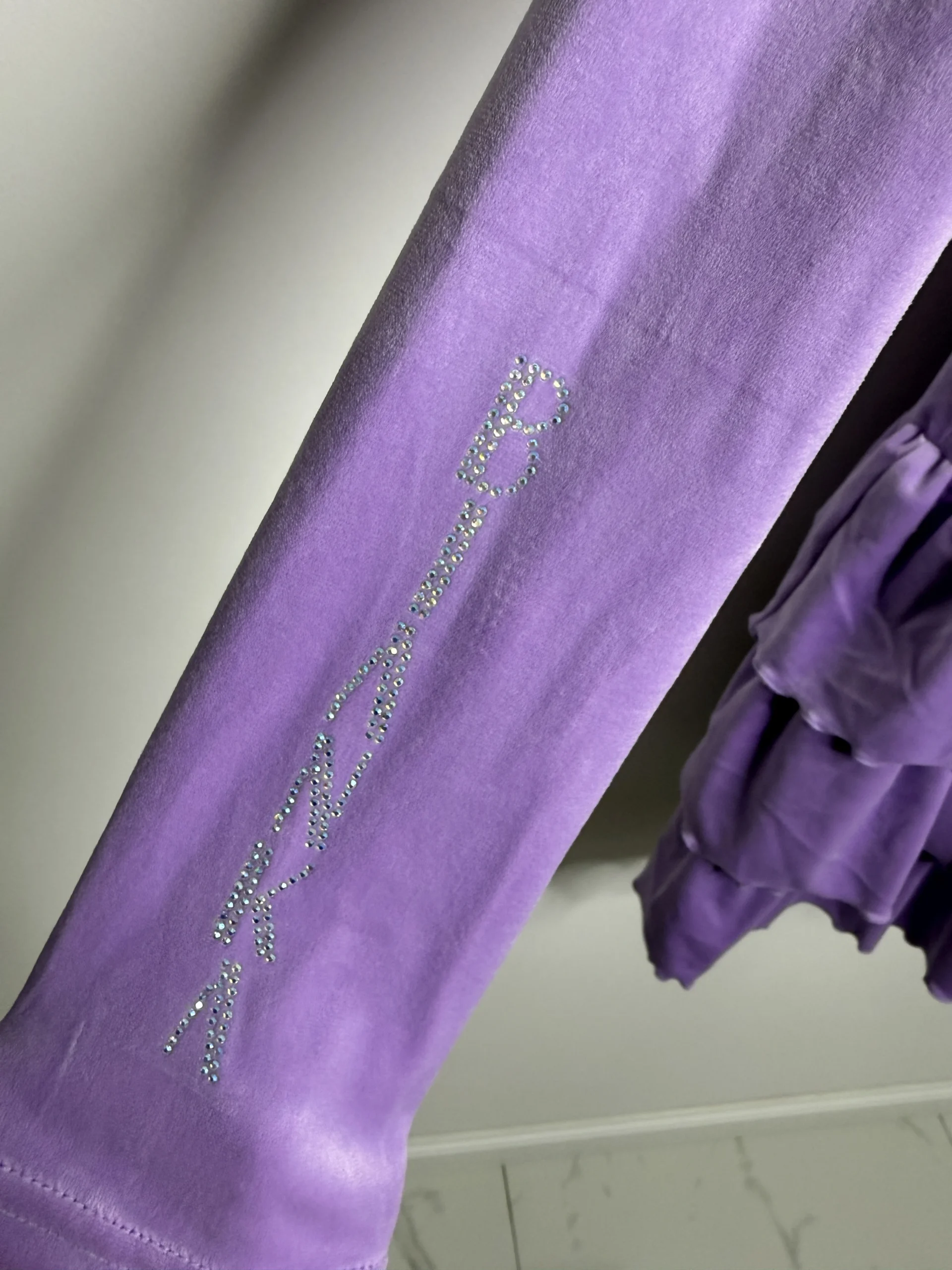 Delikatnie muśnięta logiem z cyrkonii, kolorek liliowo fioletowy subtelny i elegancki.