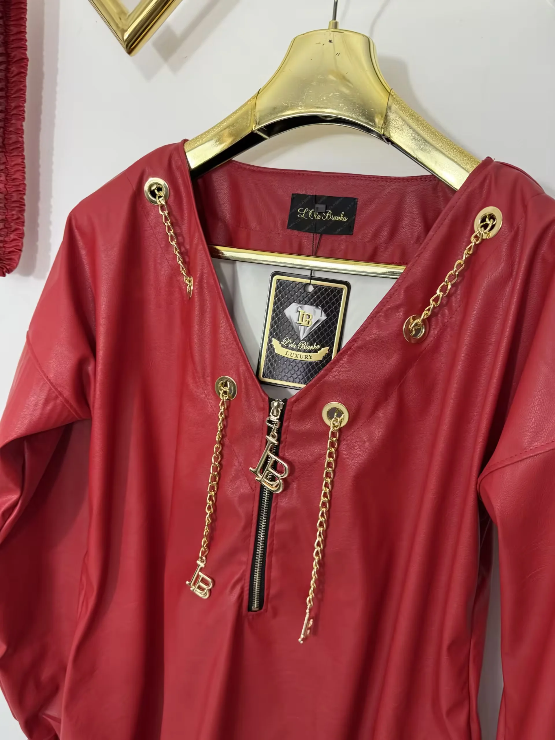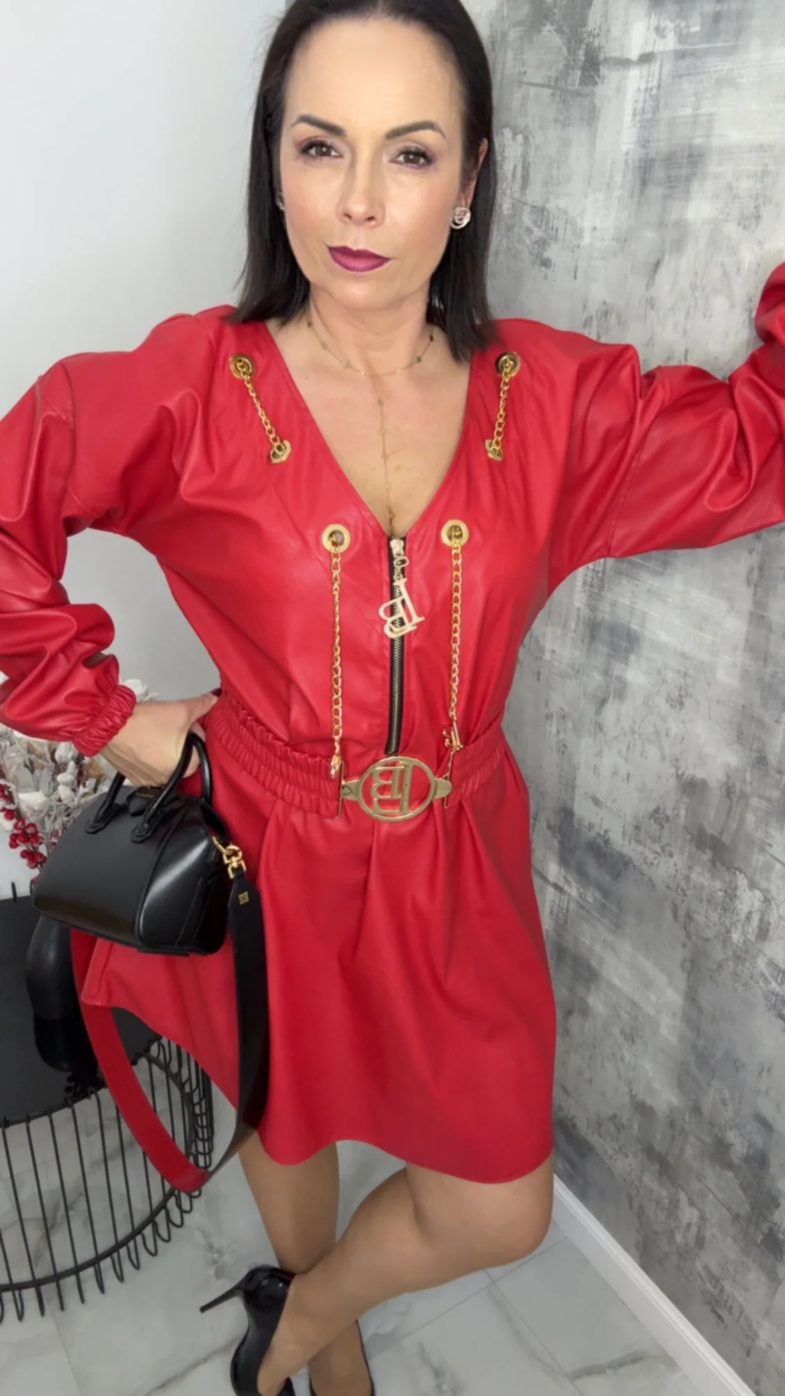 Sukienka Lola Blanka czerwona z ekoskórki SALE